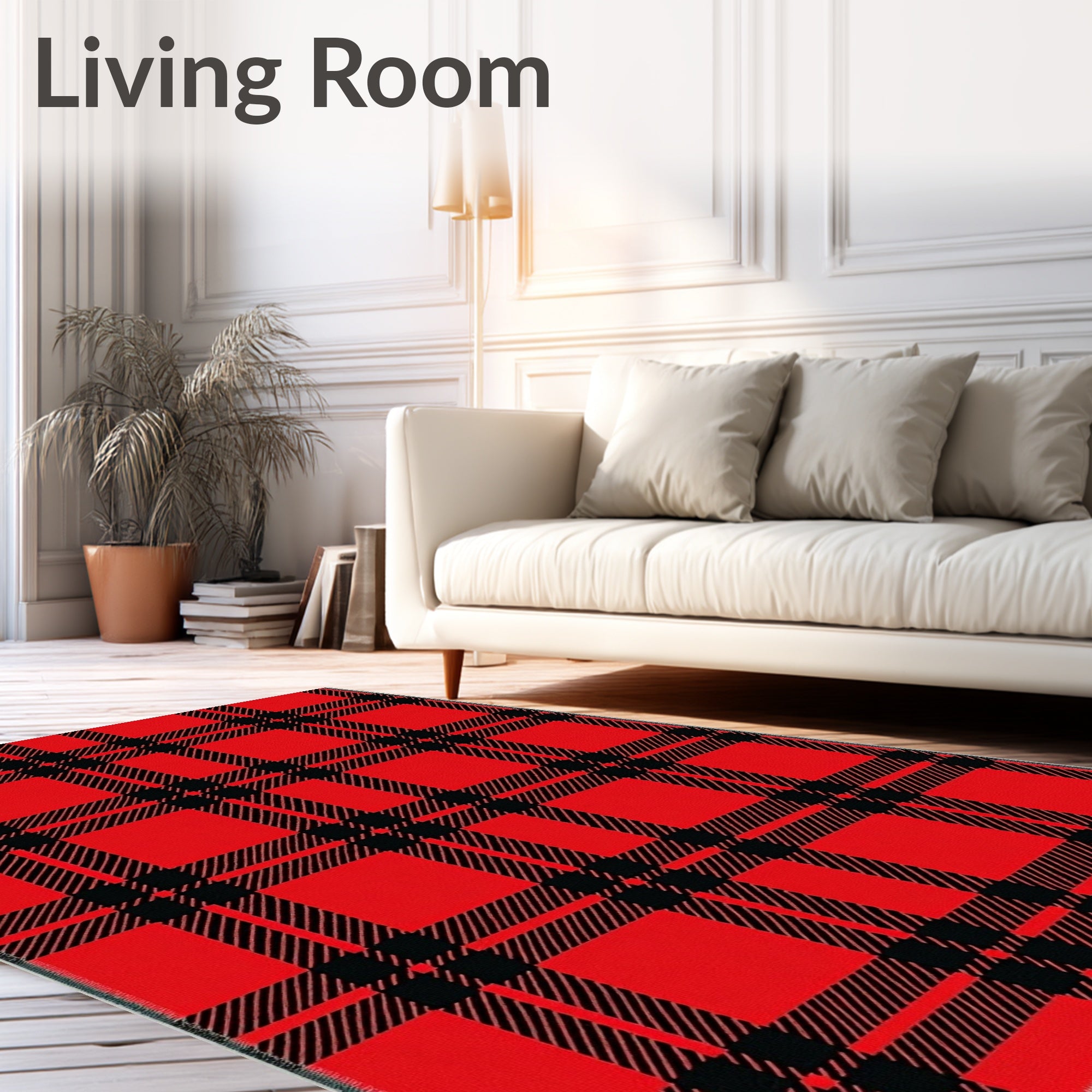 Ultra Soft Area Rug, Non Slip, Stain Resistant, Washable Area Rugs for Living Room, Bedroom, Rustic Farmhouse Yuletide Entrance Welcoming Decoration(Red) Overview: