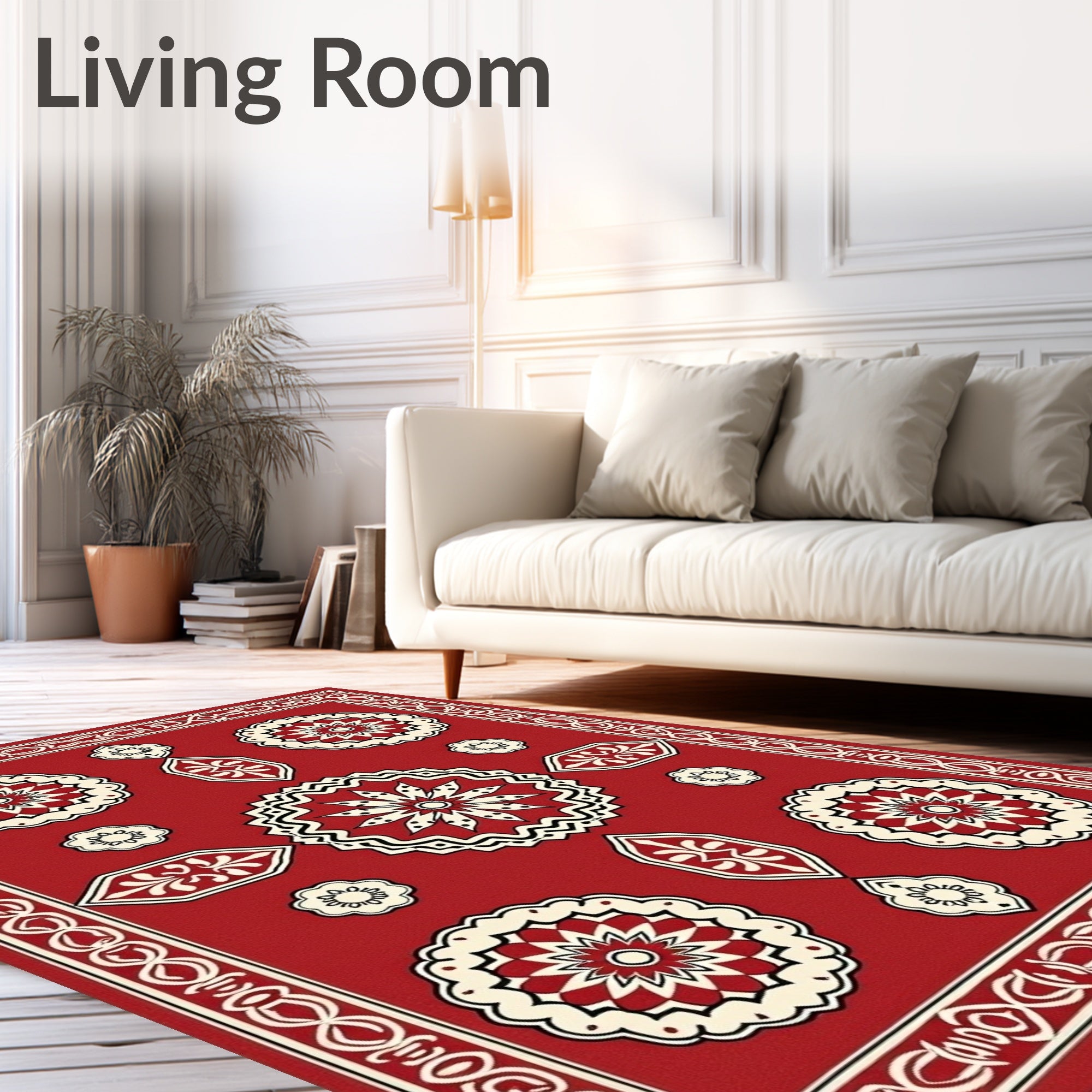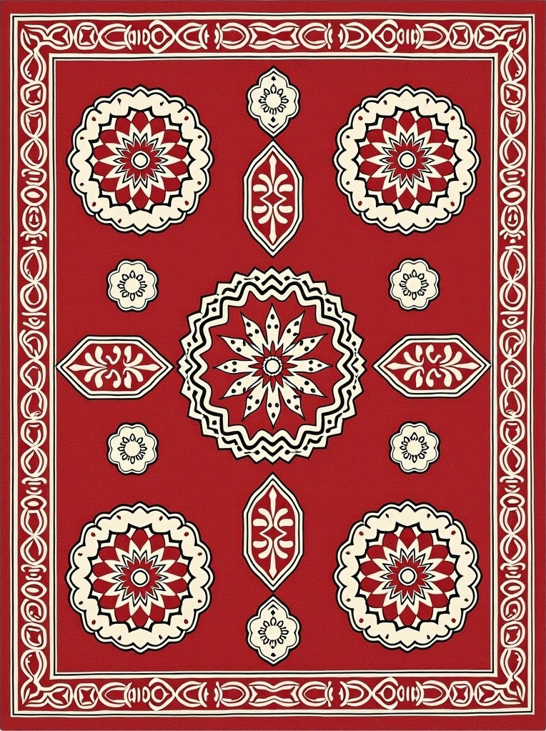Rustic Floral Medallion Design With Interlocking Shapes(Red)