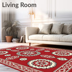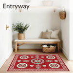 Flatwoven High Traffic Area Rug, Rustic Floral Medallion Design With Interlocking Shapes, Non Slip, Stain Resistant, Washable Area Rugs for Living Room, Bedroom (Red) Overview: