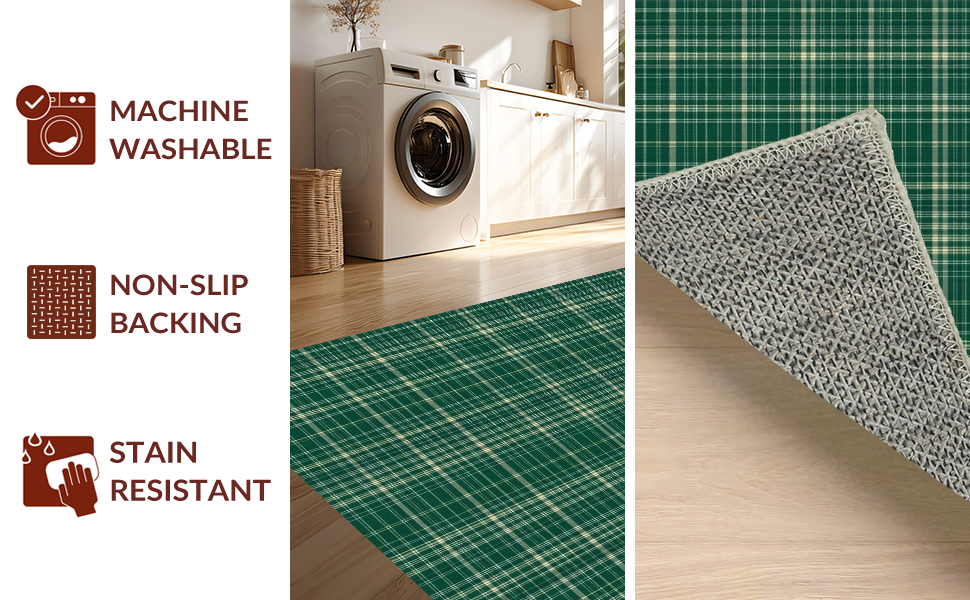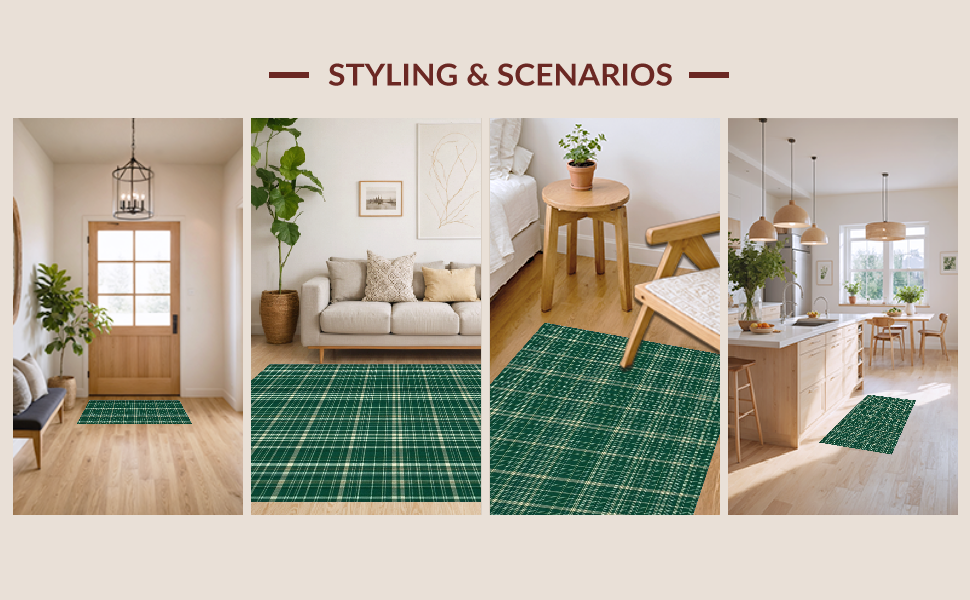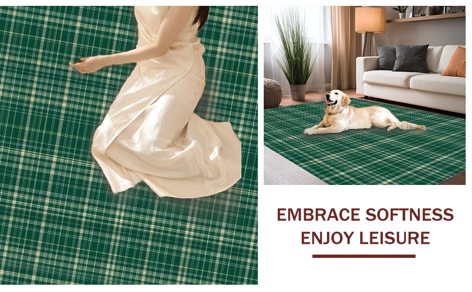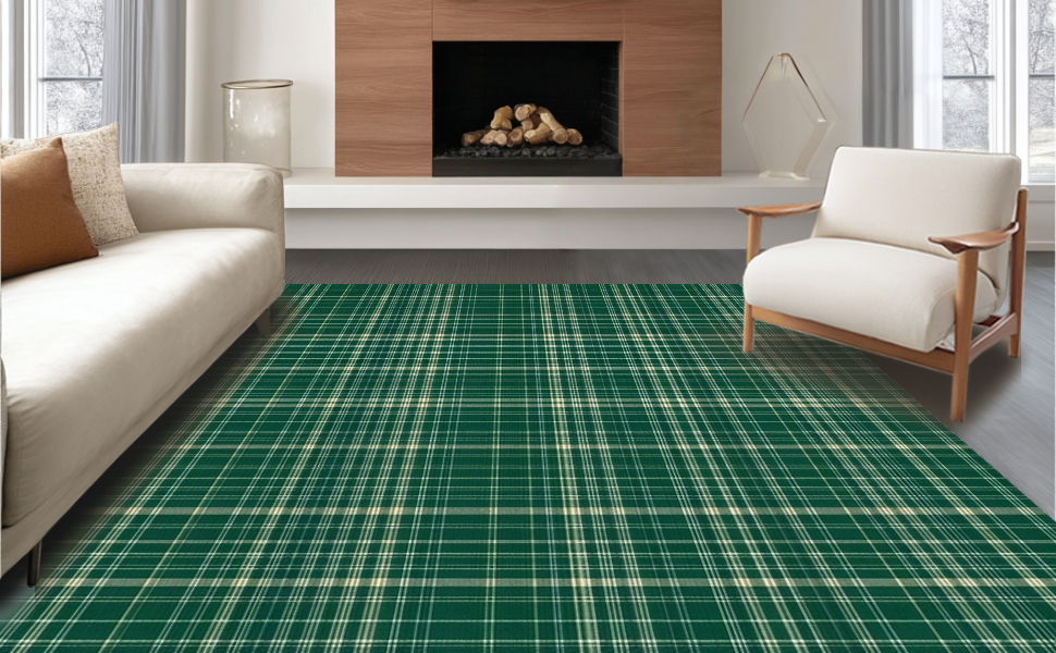 Ultra Soft Area Rug, Non Slip, Stain Resistant, Washable Area Rugs for Living Room, Bedroom, Rustic Green Tartan Elegance(Green) Overview: