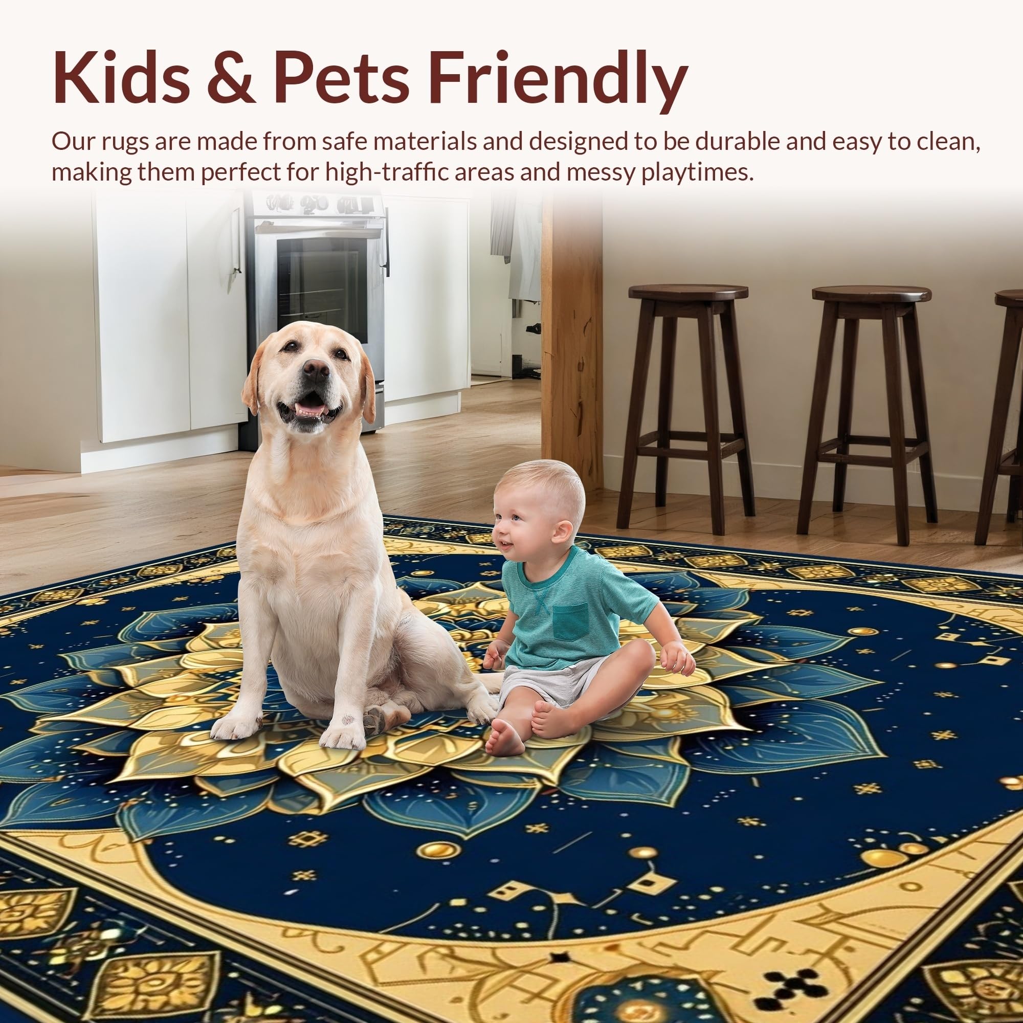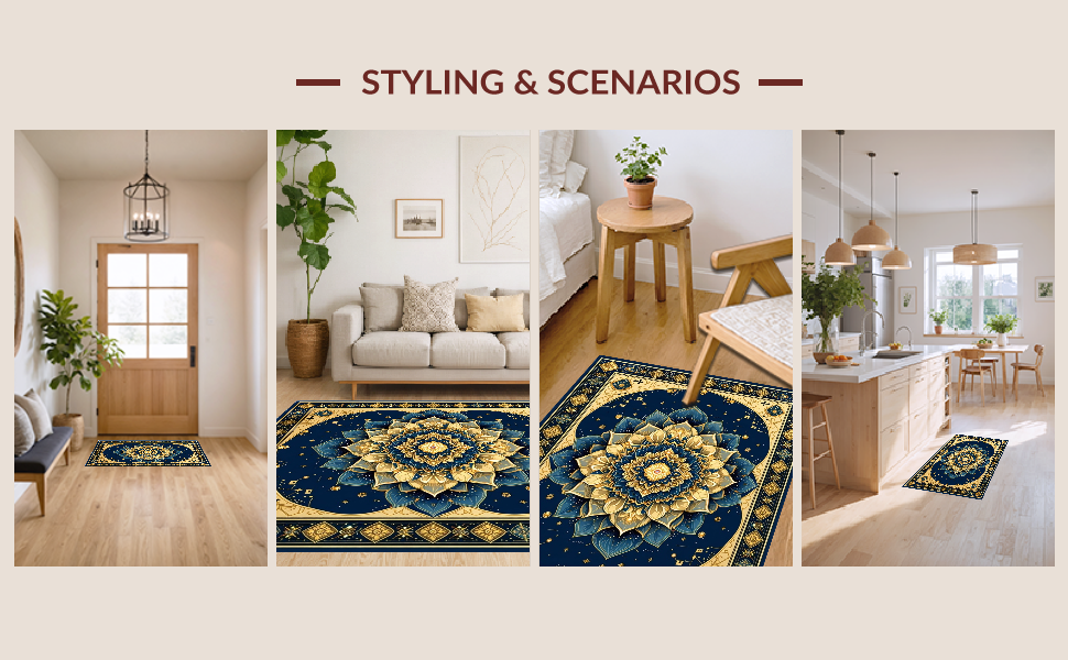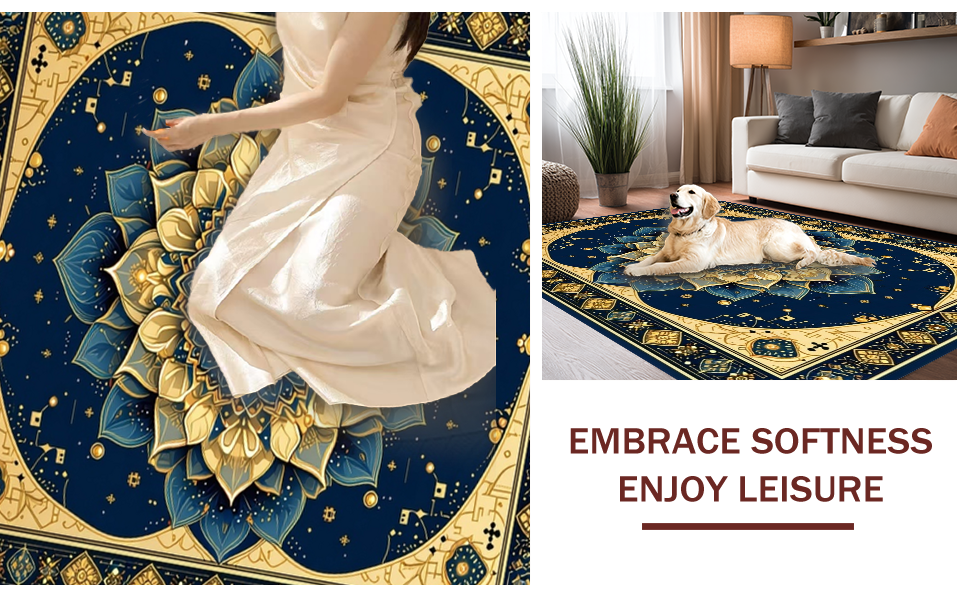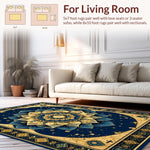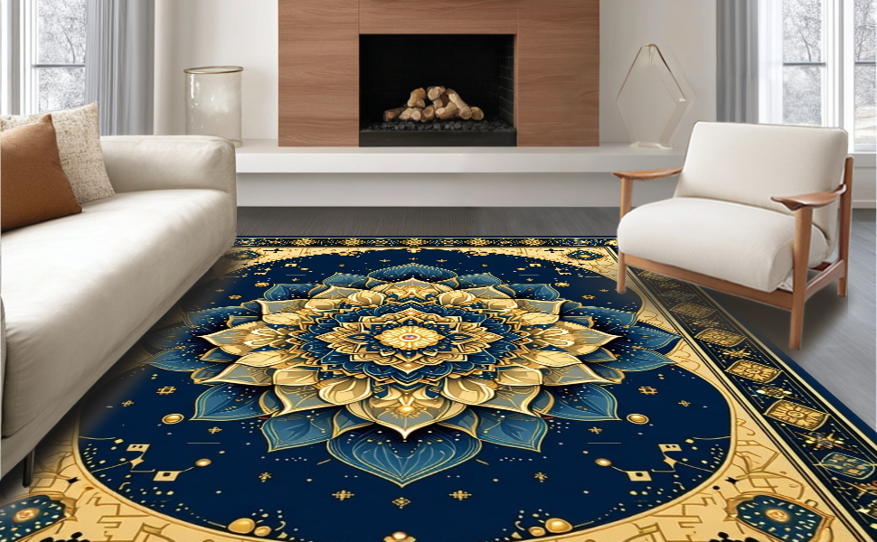 Ultra Soft Area Rug, Non Slip, Stain Resistant, Washable Area Rugs for Living Room, Bedroom, Rustic Indian Inspired Pattern(Blue) Overview: