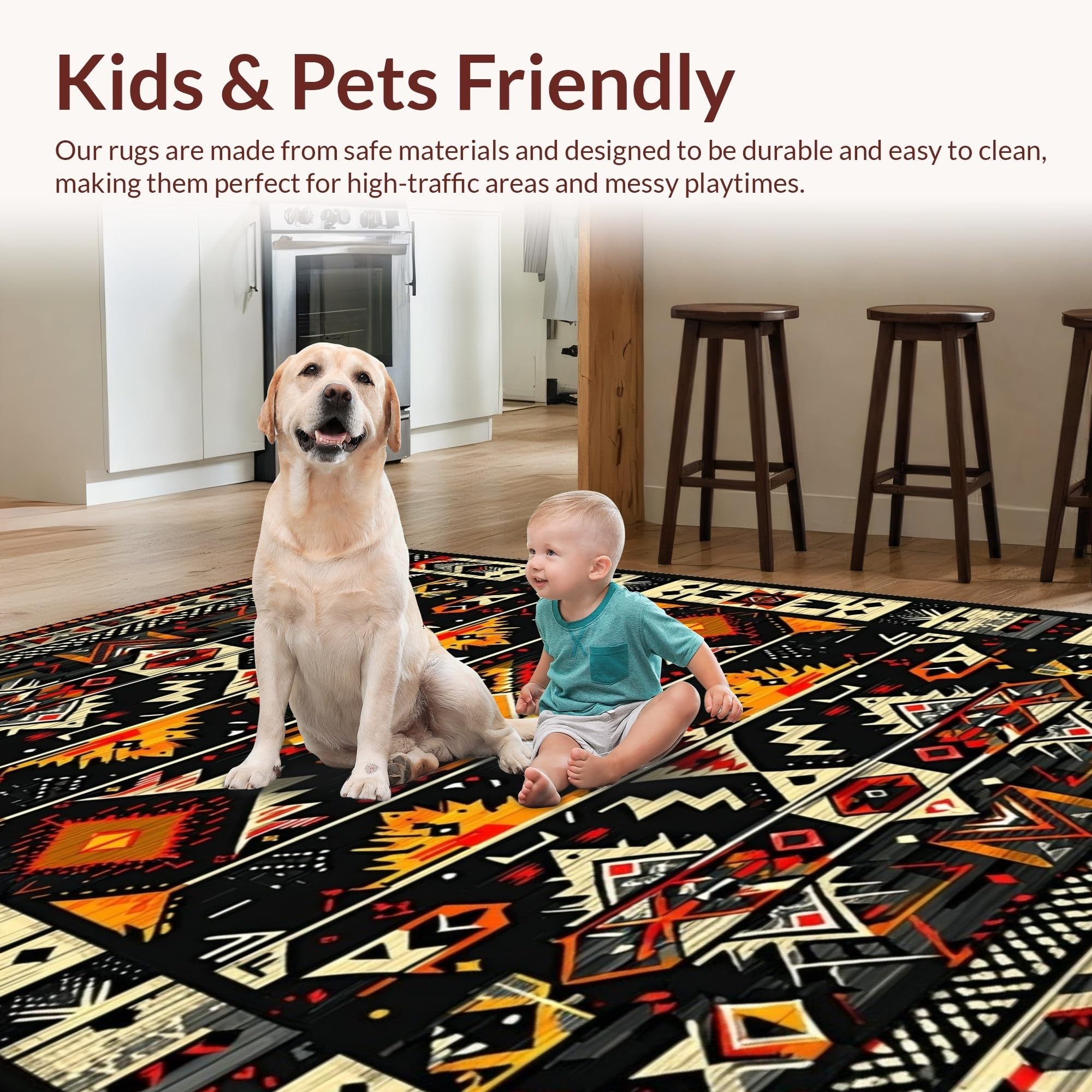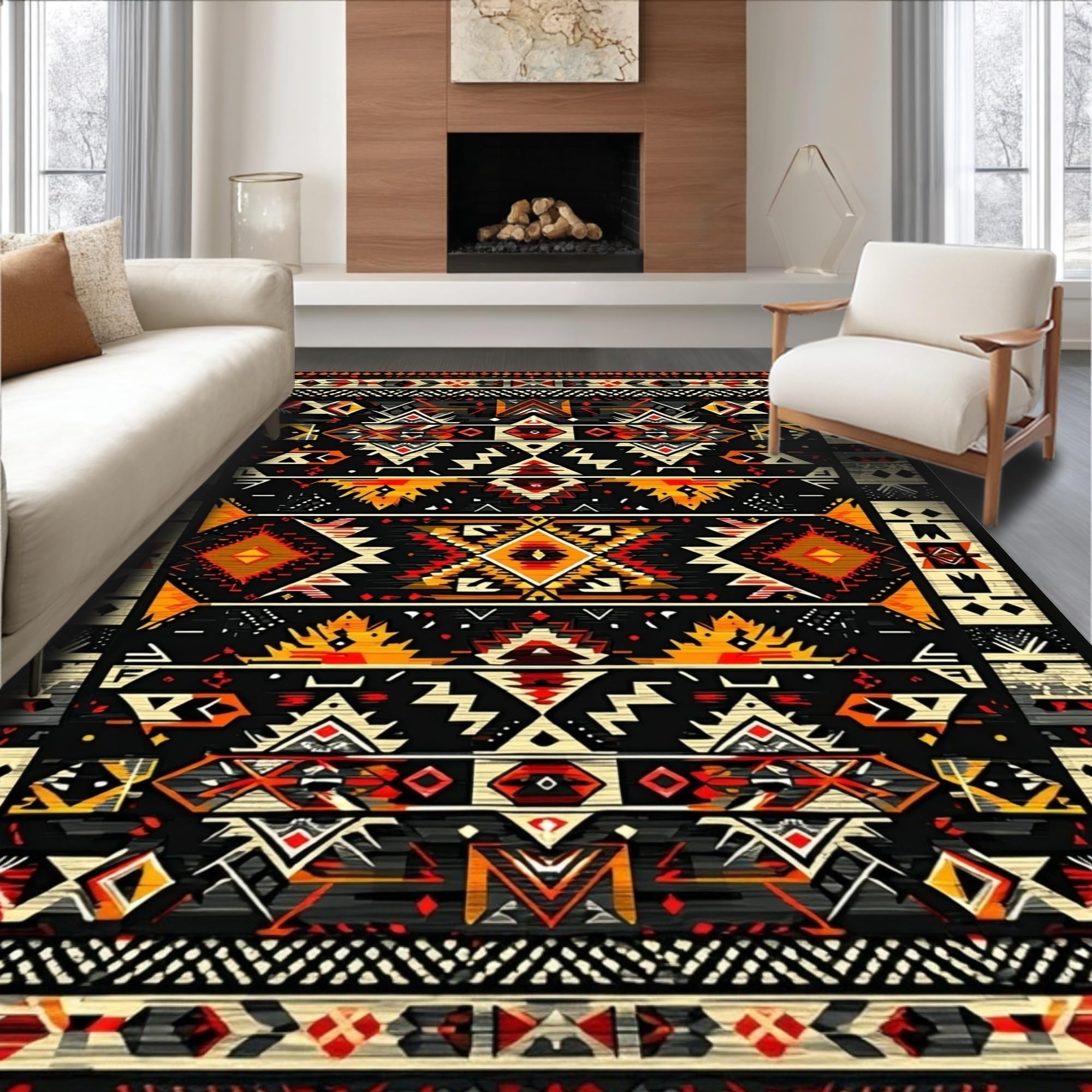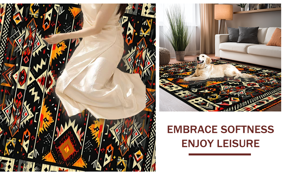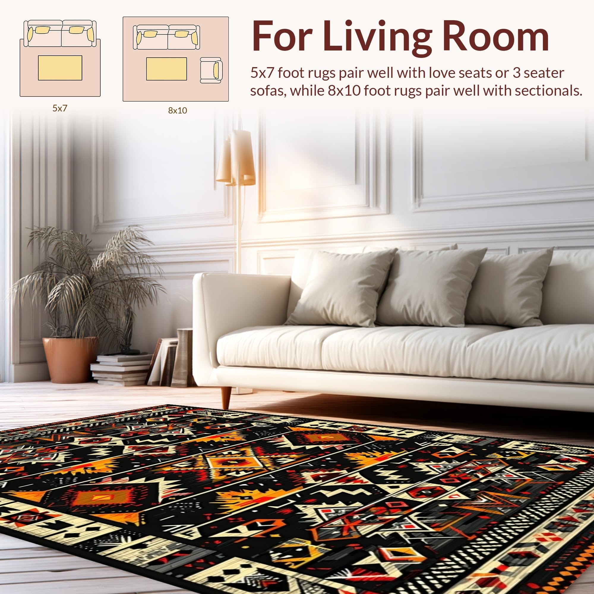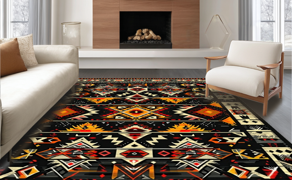 Ultra Soft Area Rug, Non Slip, Stain Resistant, Washable Area Rugs for Living Room, Bedroom, Rustic Modern Diamond Arrangement(Black) Overview:
