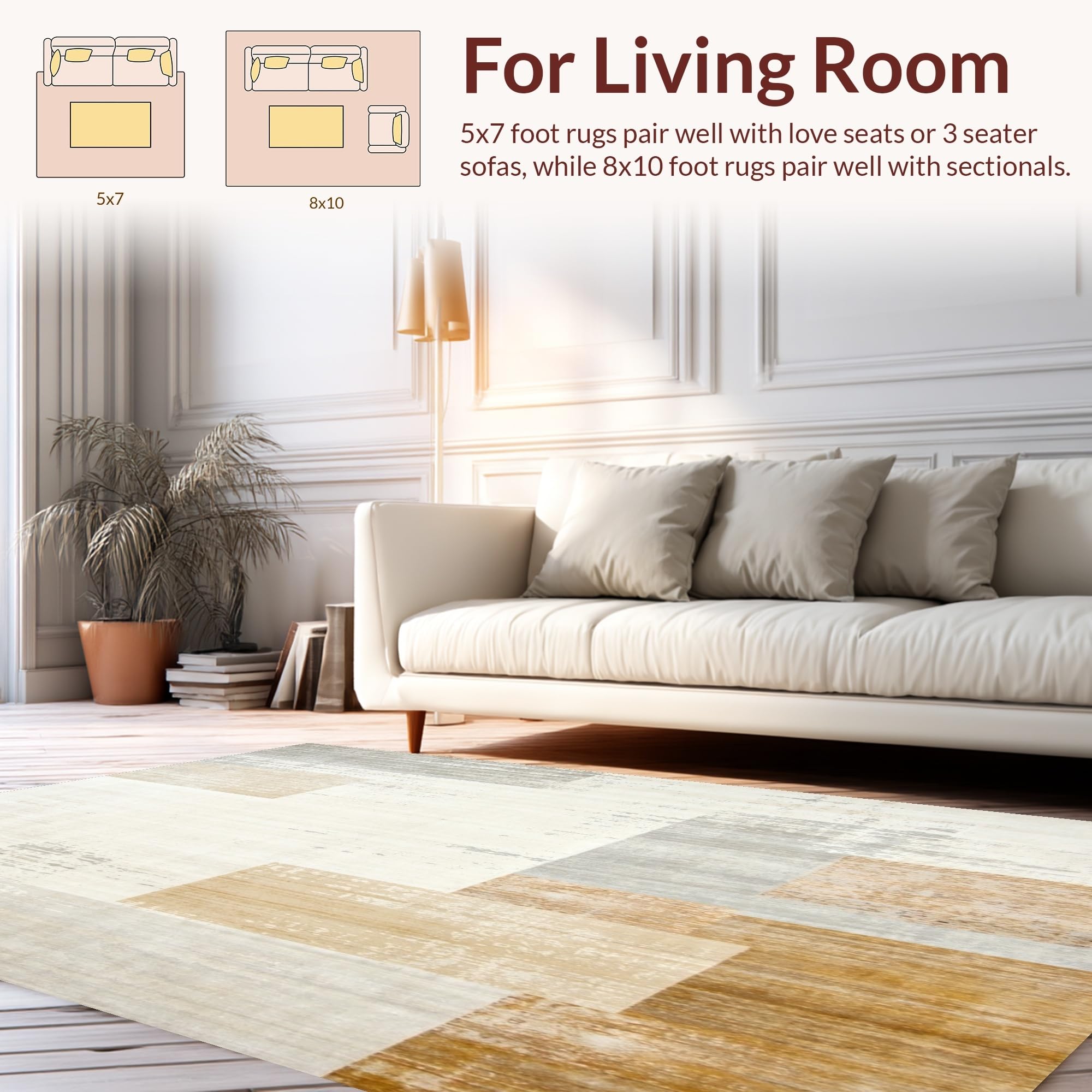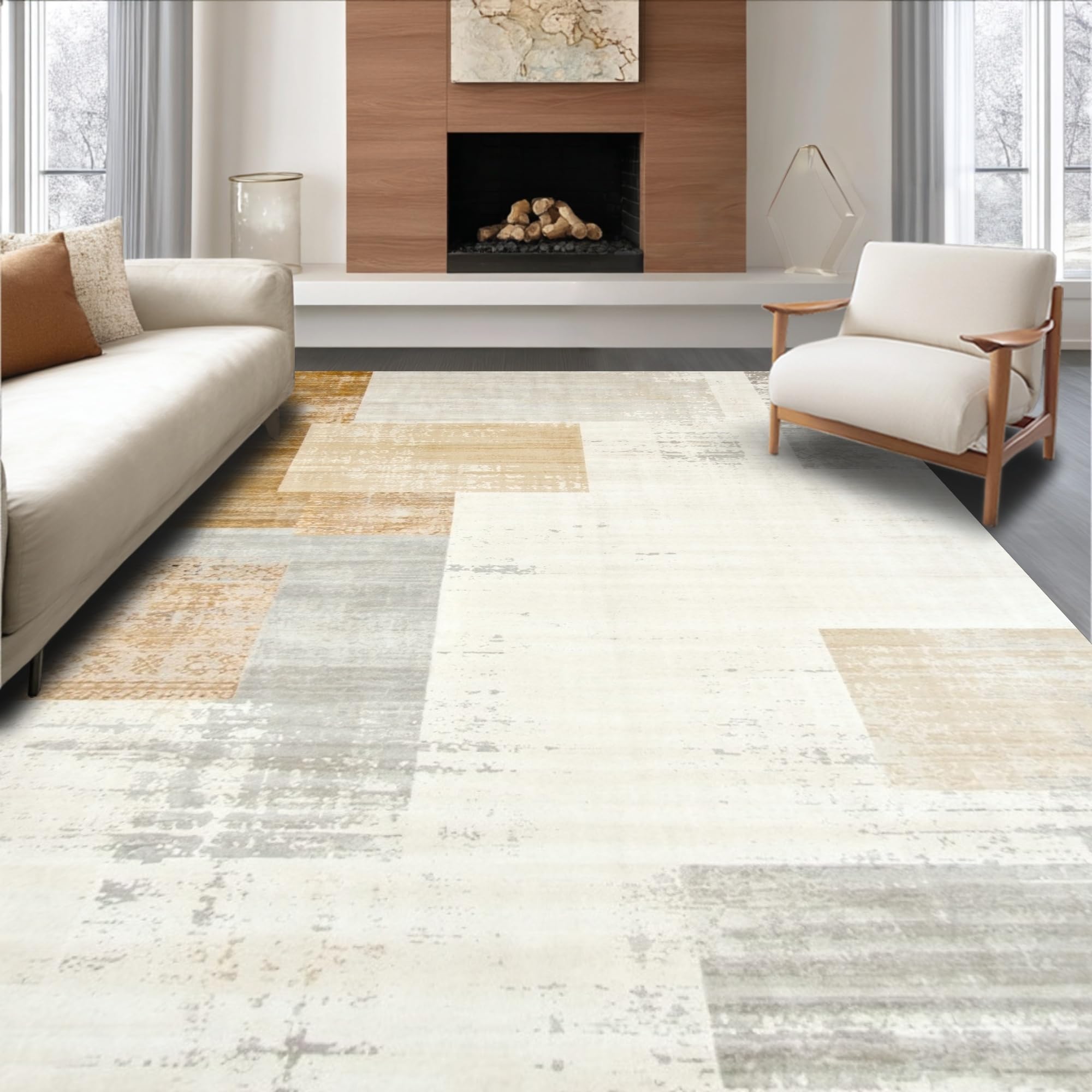 Ultra Soft Area Rug, Non Slip, Stain Resistant, Washable Area Rugs for Living Room, Bedroom, Rustic Modern Shaped Pet Friendly Abstract Beige Cream(Beige) Overview: