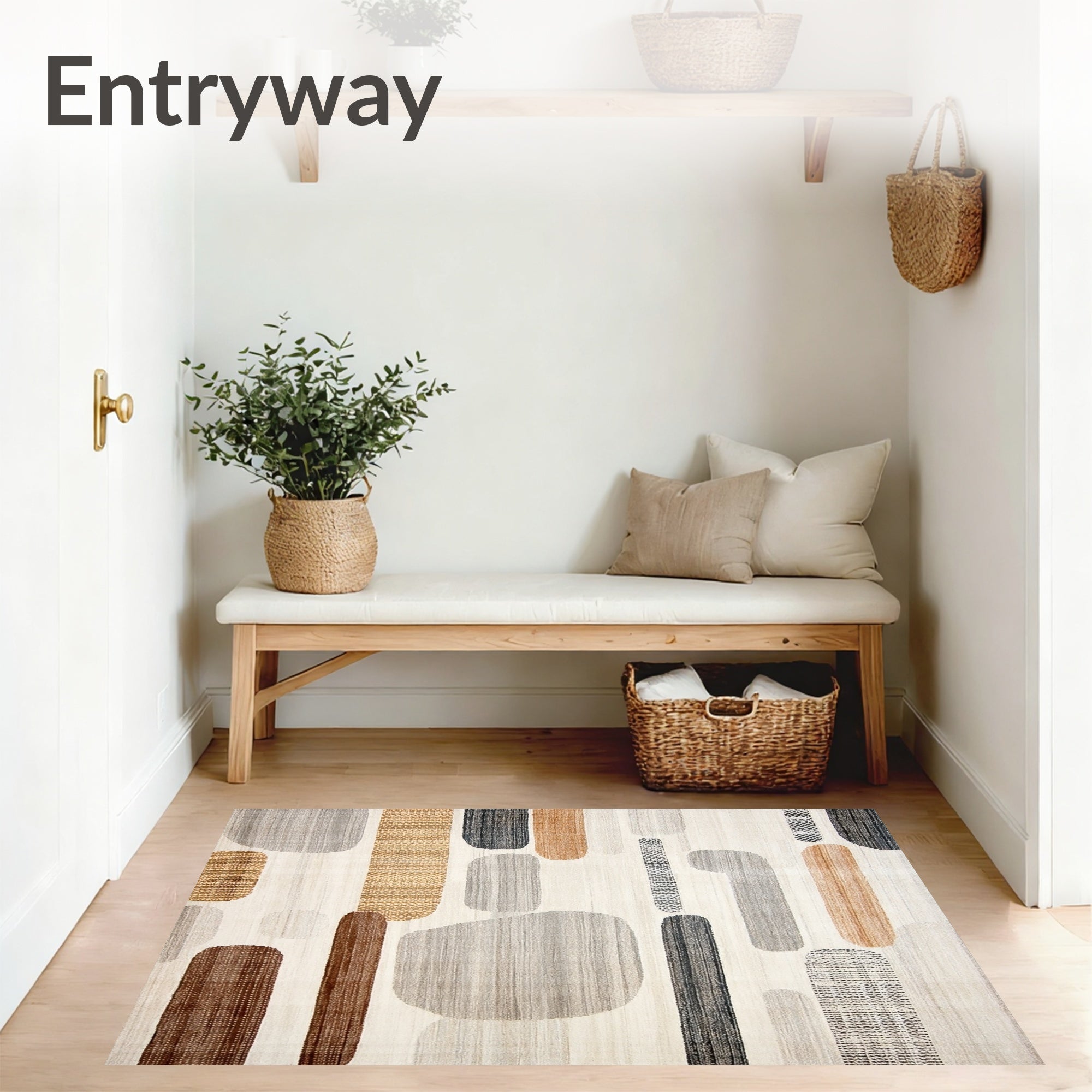Ultra Soft Area Rug, Non Slip, Stain Resistant, Washable Area Rugs for Living Room, Bedroom, Rustic Neutral Area Earthy Hues(Beige) Overview: