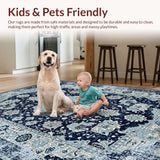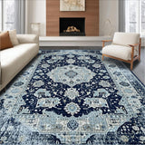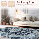 Ultra Soft Area Rug, Non Slip, Stain Resistant, Washable Area Rugs for Living Room, Bedroom, Rustic Ogee Pattern in Blue Hues(Blue) Overview: