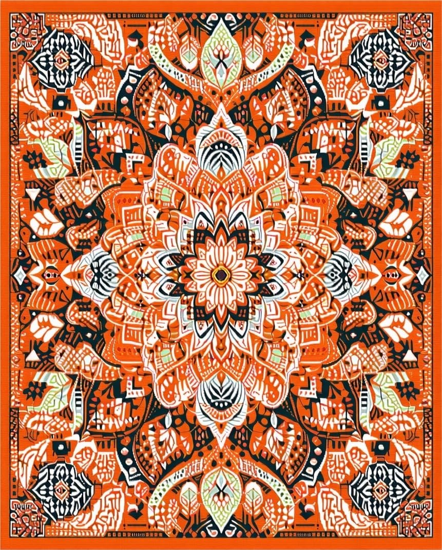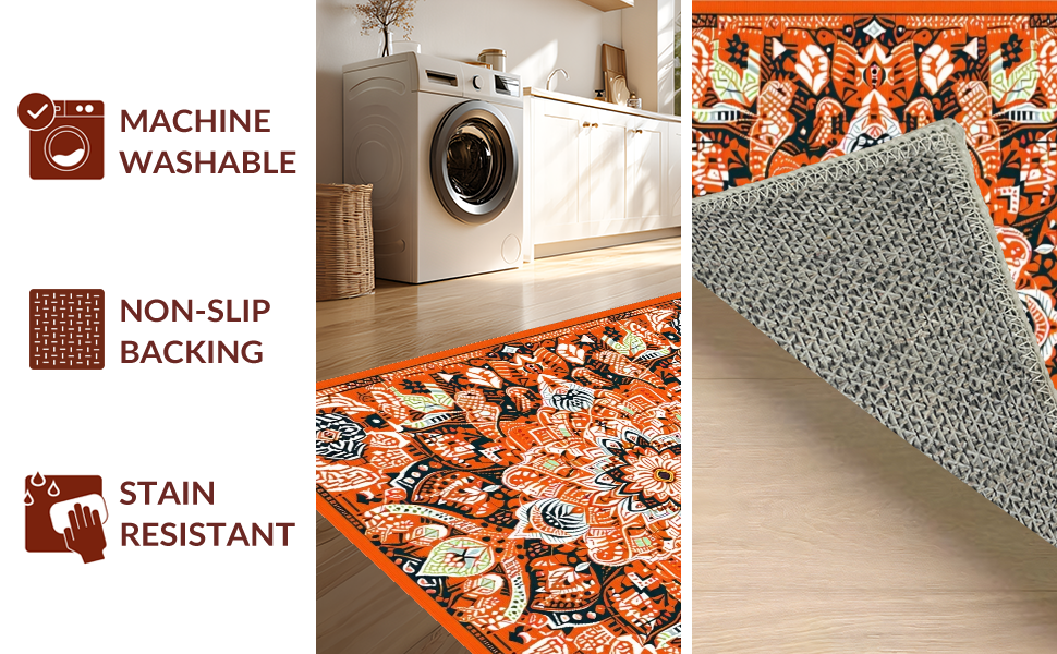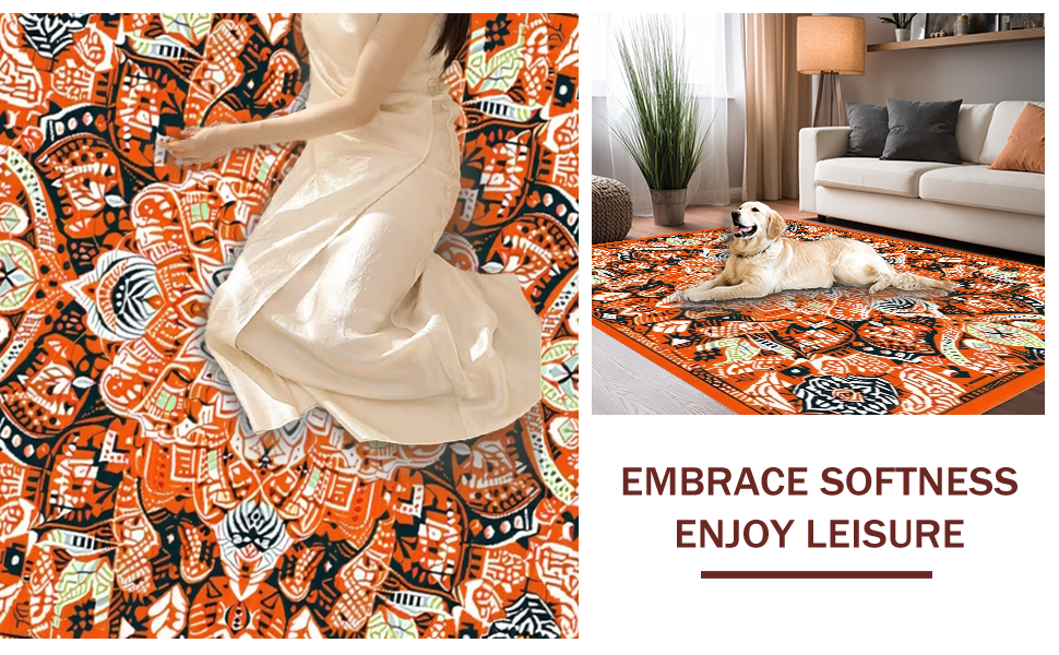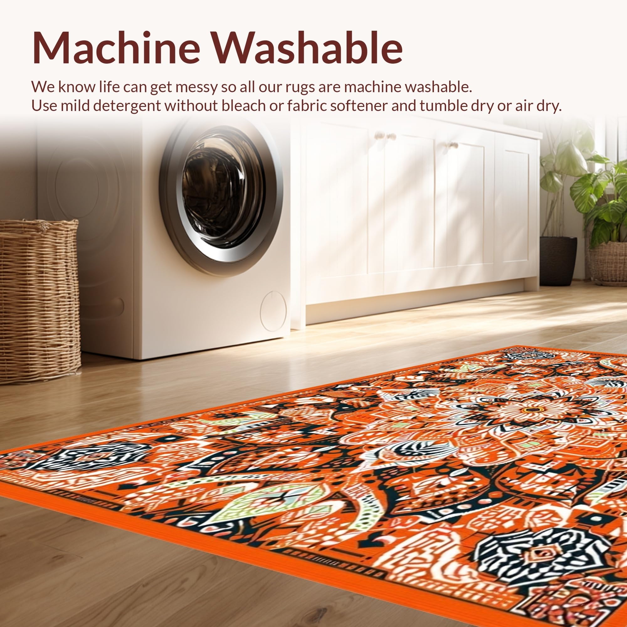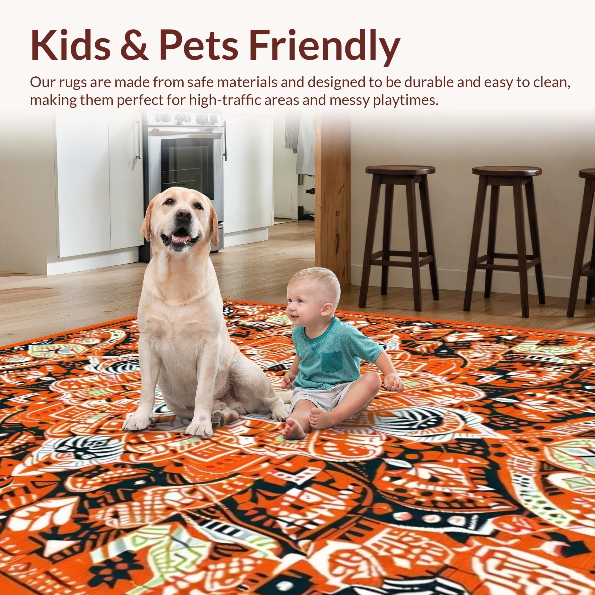 Ultra Soft Area Rug, Non Slip, Stain Resistant, Washable Area Rugs for Living Room, Bedroom, Rustic Orange Circular Flourish(Orange) Overview:
