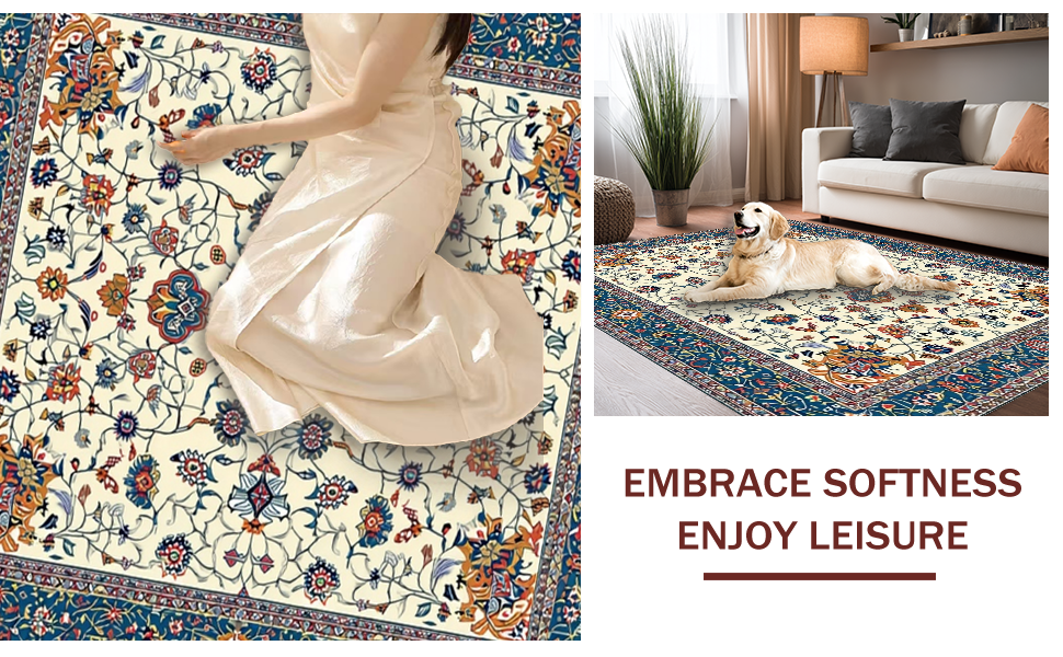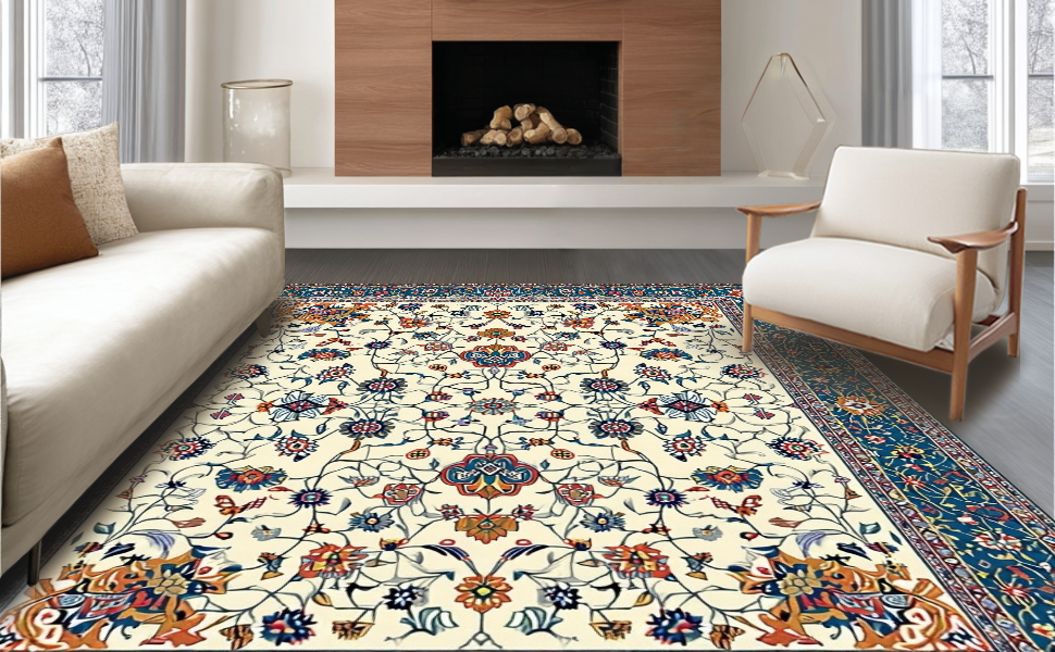 Ultra Soft Area Rug, Non Slip, Stain Resistant, Washable Area Rugs for Living Room, Bedroom, Rustic Orange Garden Inspiration(Ivory) Overview: