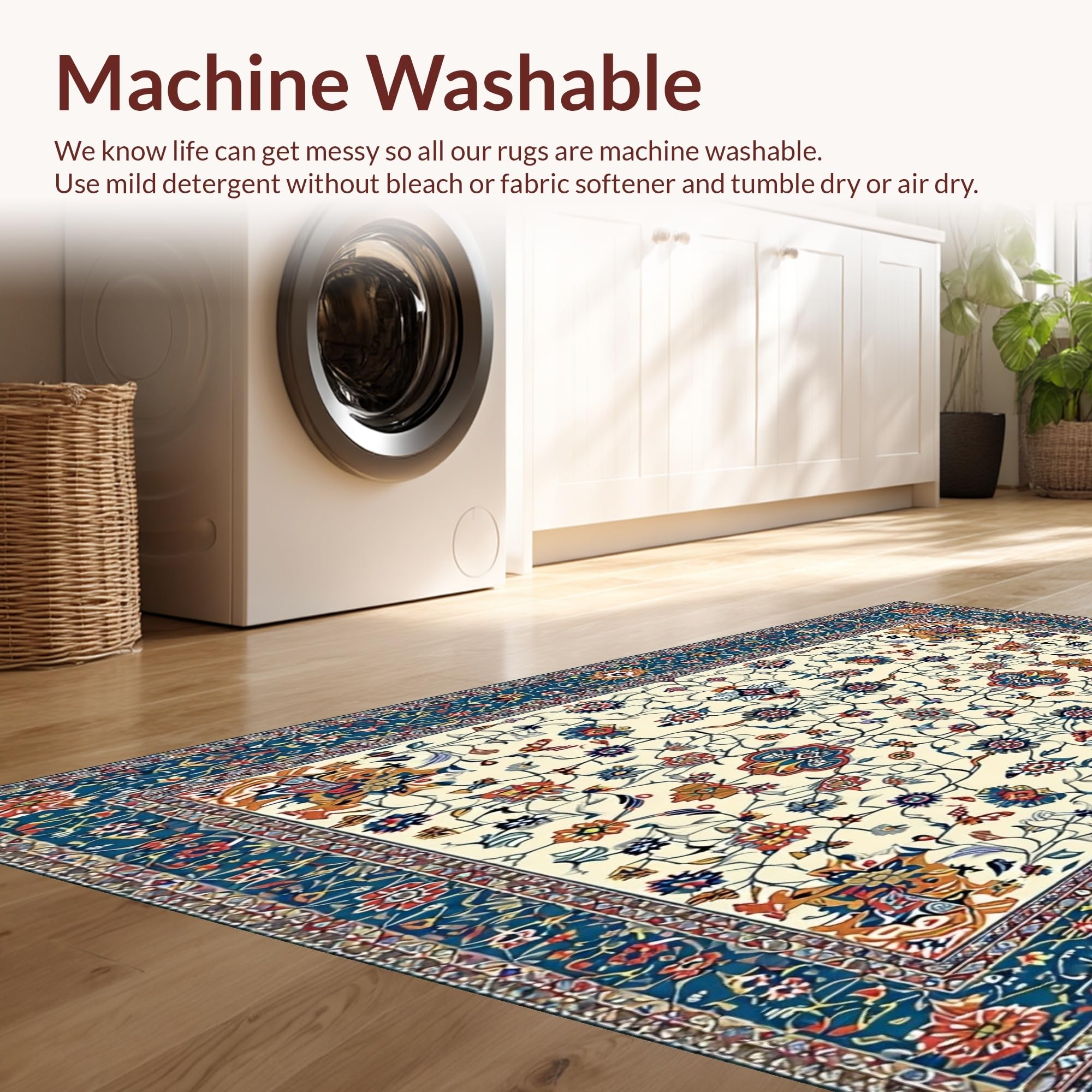 - Machine Washable: Our rugs can be easily thrown in the wash machine.
