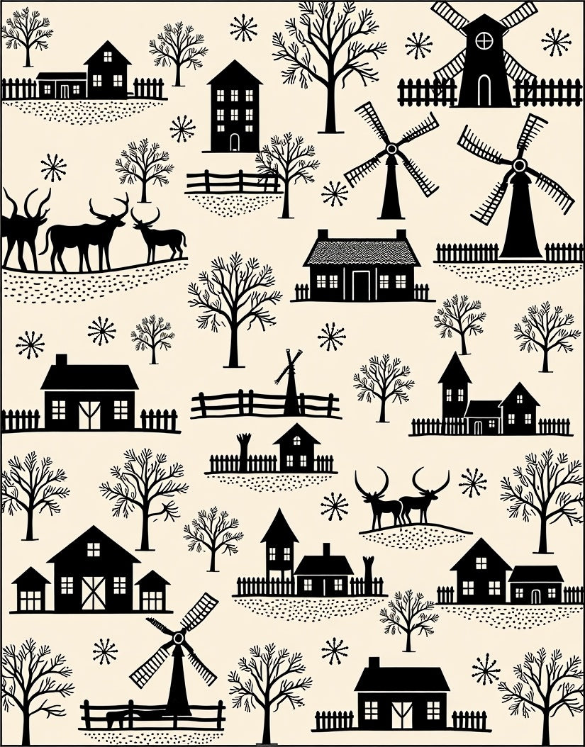 Rustic Path Vintage Countryside Illustration(Ivory)