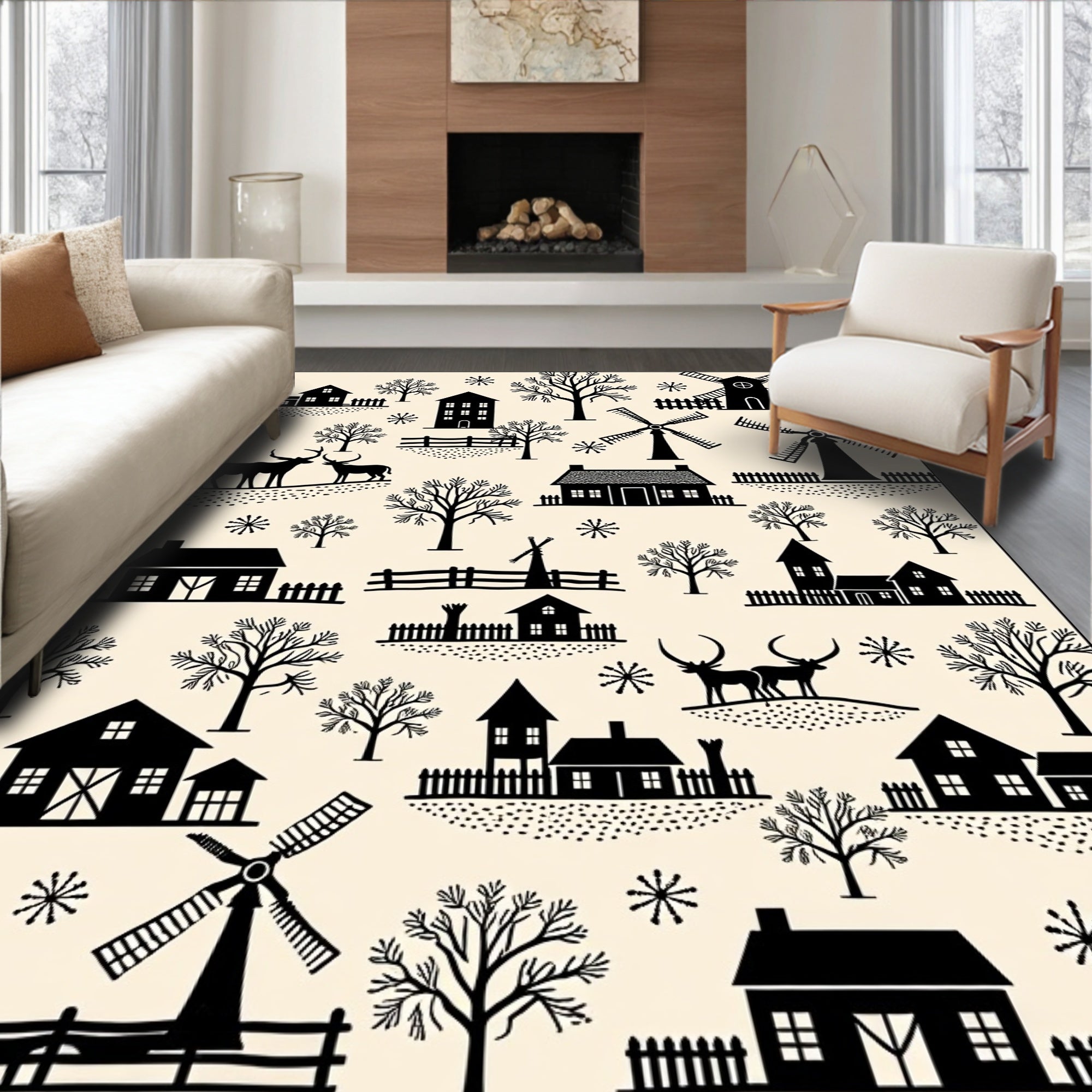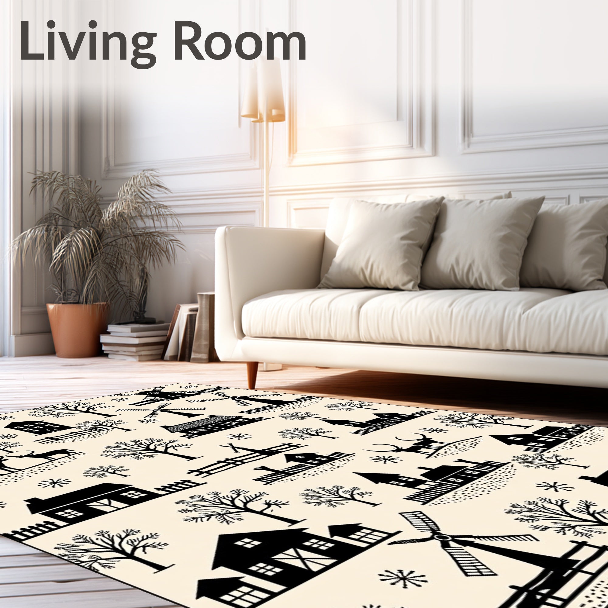 Ultra Soft Area Rug, Non Slip, Stain Resistant, Washable Area Rugs for Living Room, Bedroom, Rustic Path Vintage Countryside Illustration(Ivory) Overview: