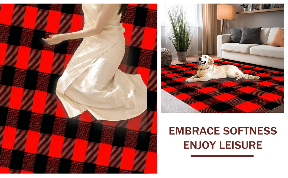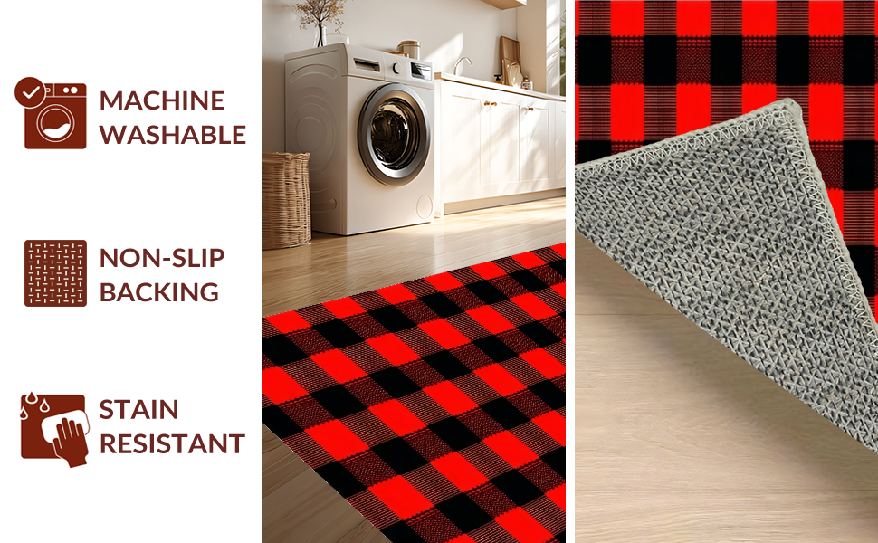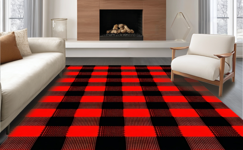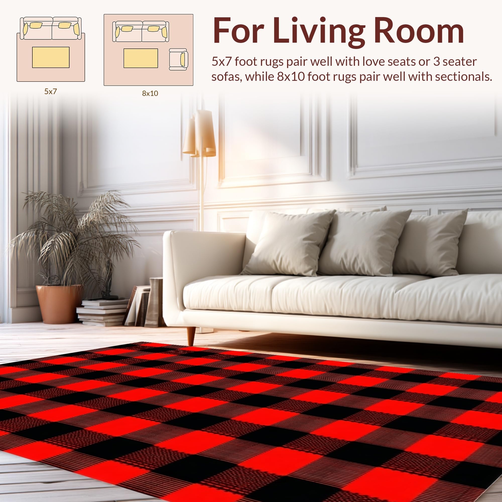 Ultra Soft Area Rug, Non Slip, Stain Resistant, Washable Area Rugs for Living Room, Bedroom, Rustic Red and Black Checkered Aesthetic(Red) Overview: