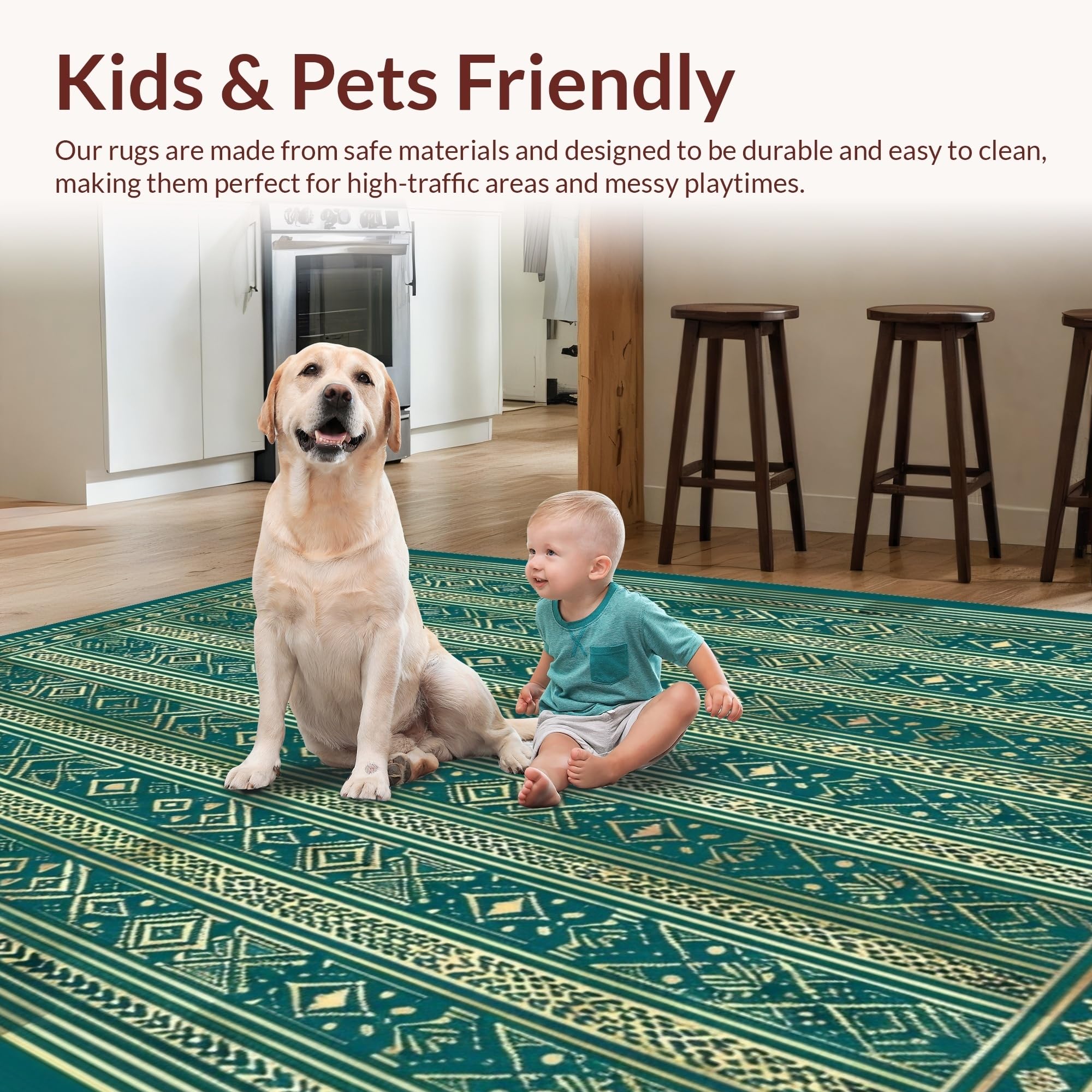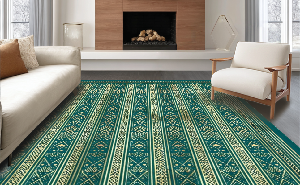 Ultra Soft Area Rug, Non Slip, Stain Resistant, Washable Area Rugs for Living Room, Bedroom, Rustic Reversible Color Fusion(Blue) Overview: