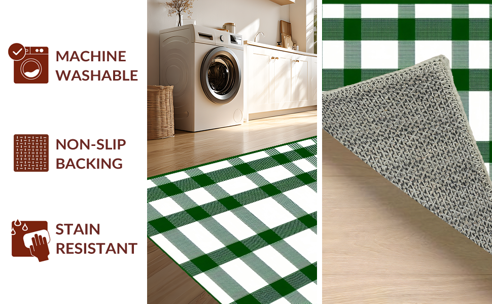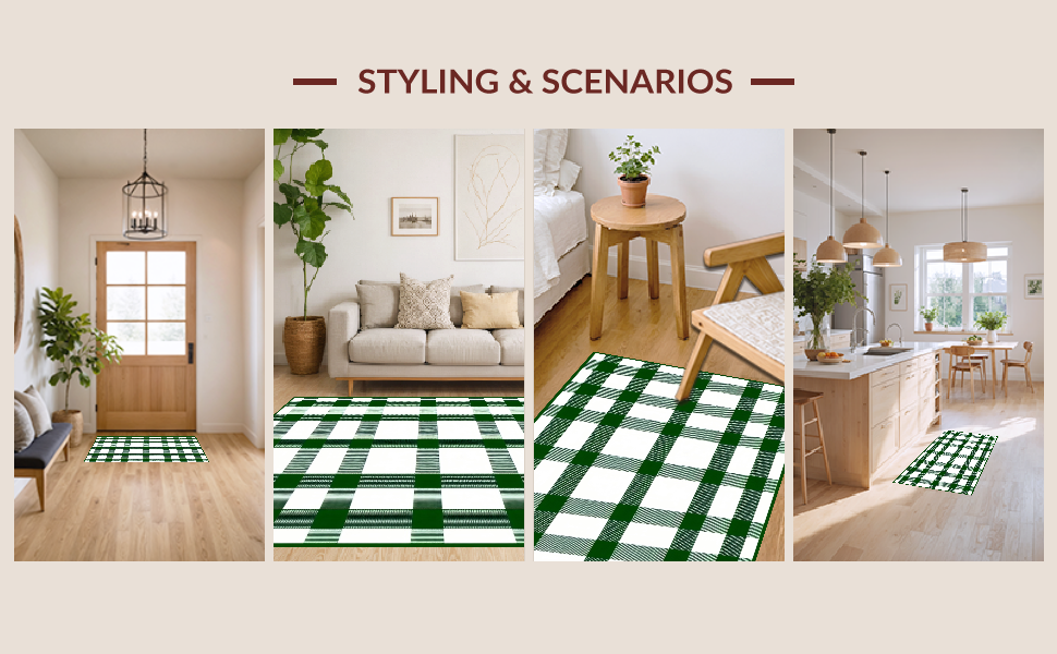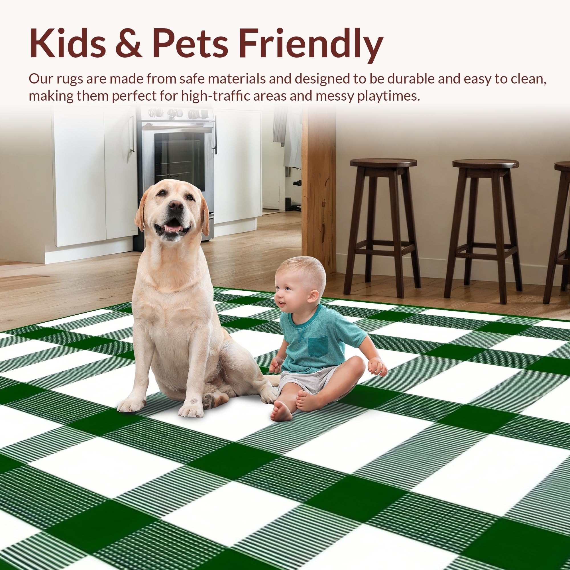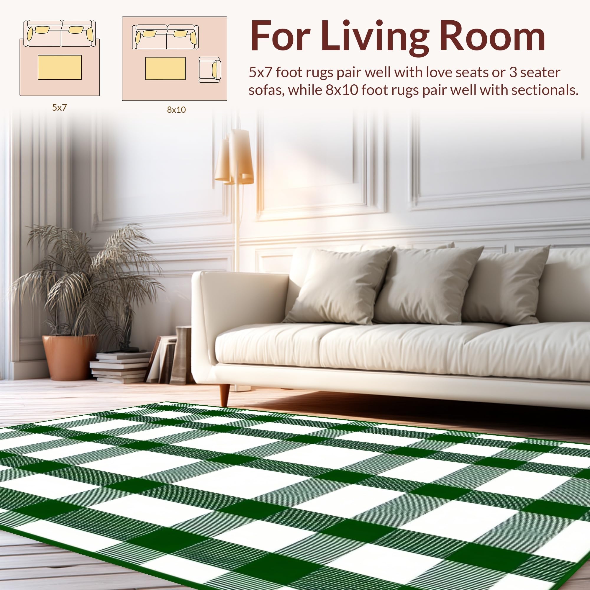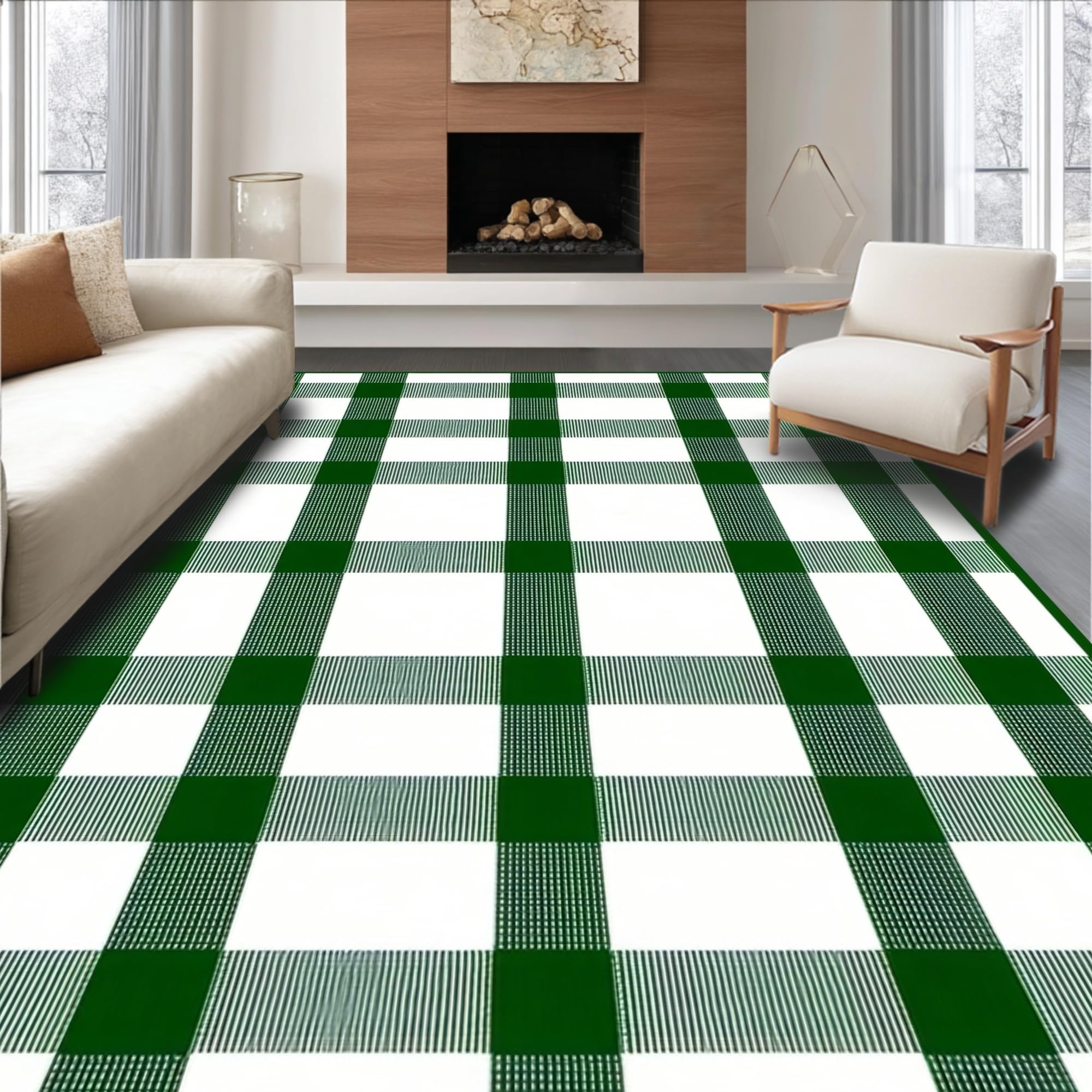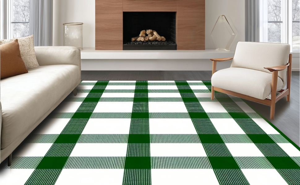 Ultra Soft Area Rug, Non Slip, Stain Resistant, Washable Area Rugs for Living Room, Bedroom, Rustic Sage Green Plaid Charm(Green) Overview: