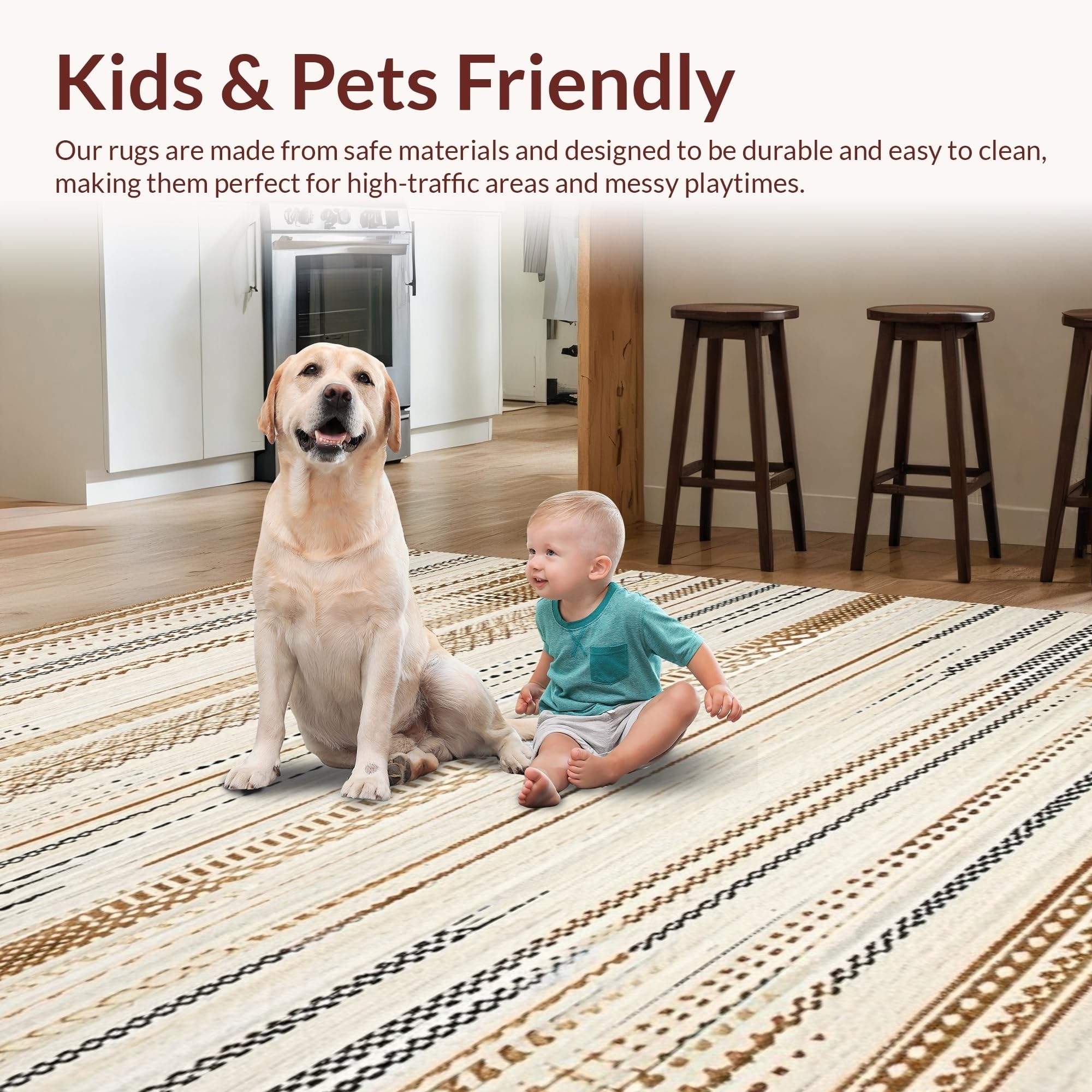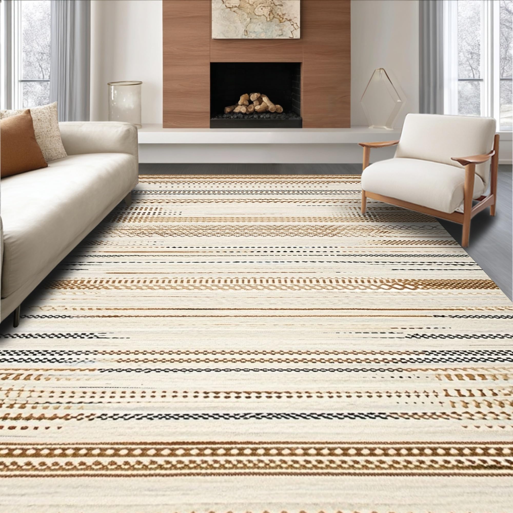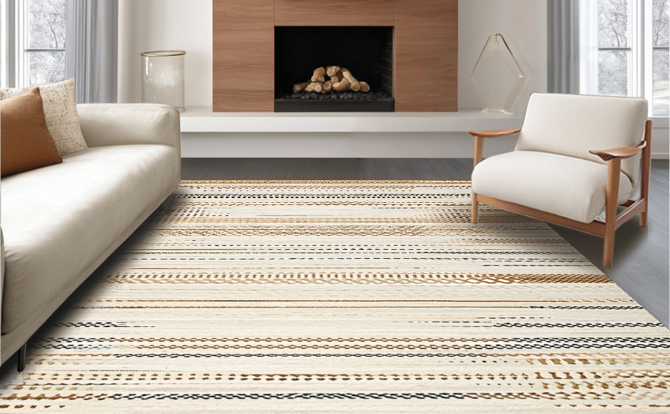 Ultra Soft Area Rug, Non Slip, Stain Resistant, Washable Area Rugs for Living Room, Bedroom, Rustic Scalloped Natural Fiber(Beige) Overview: