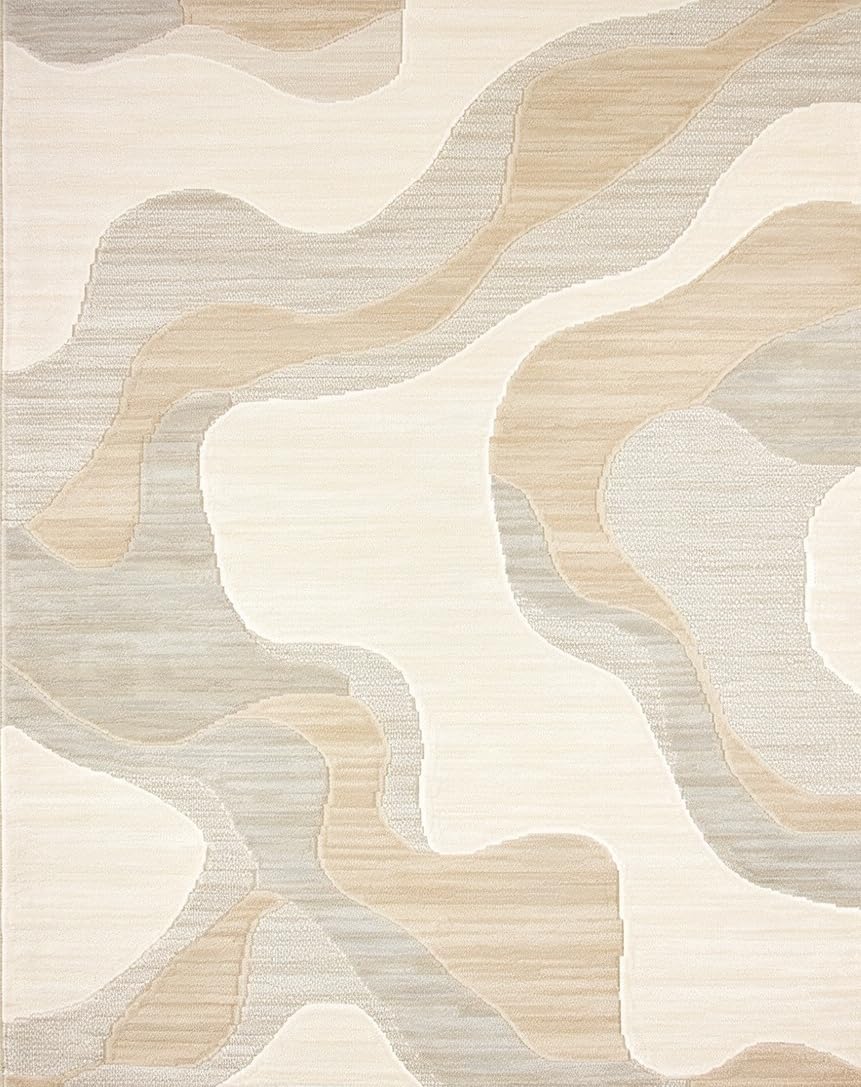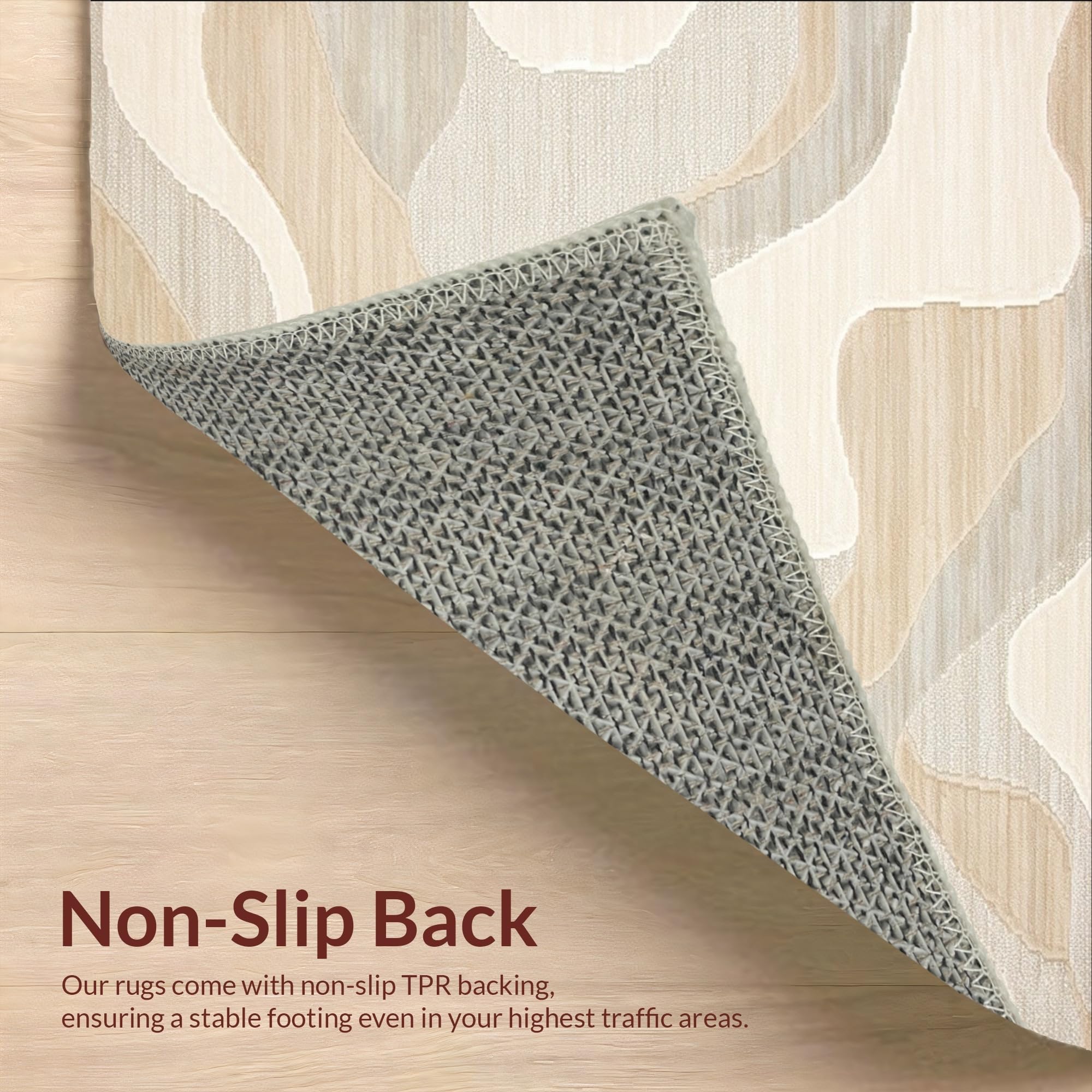 Ultra Soft Area Rug, Non Slip, Stain Resistant, Washable Area Rugs for Living Room, Bedroom, Rustic Shaped Area Unique Wavy Beige Cream Design Easy Clean Accent(Beige) Overview: