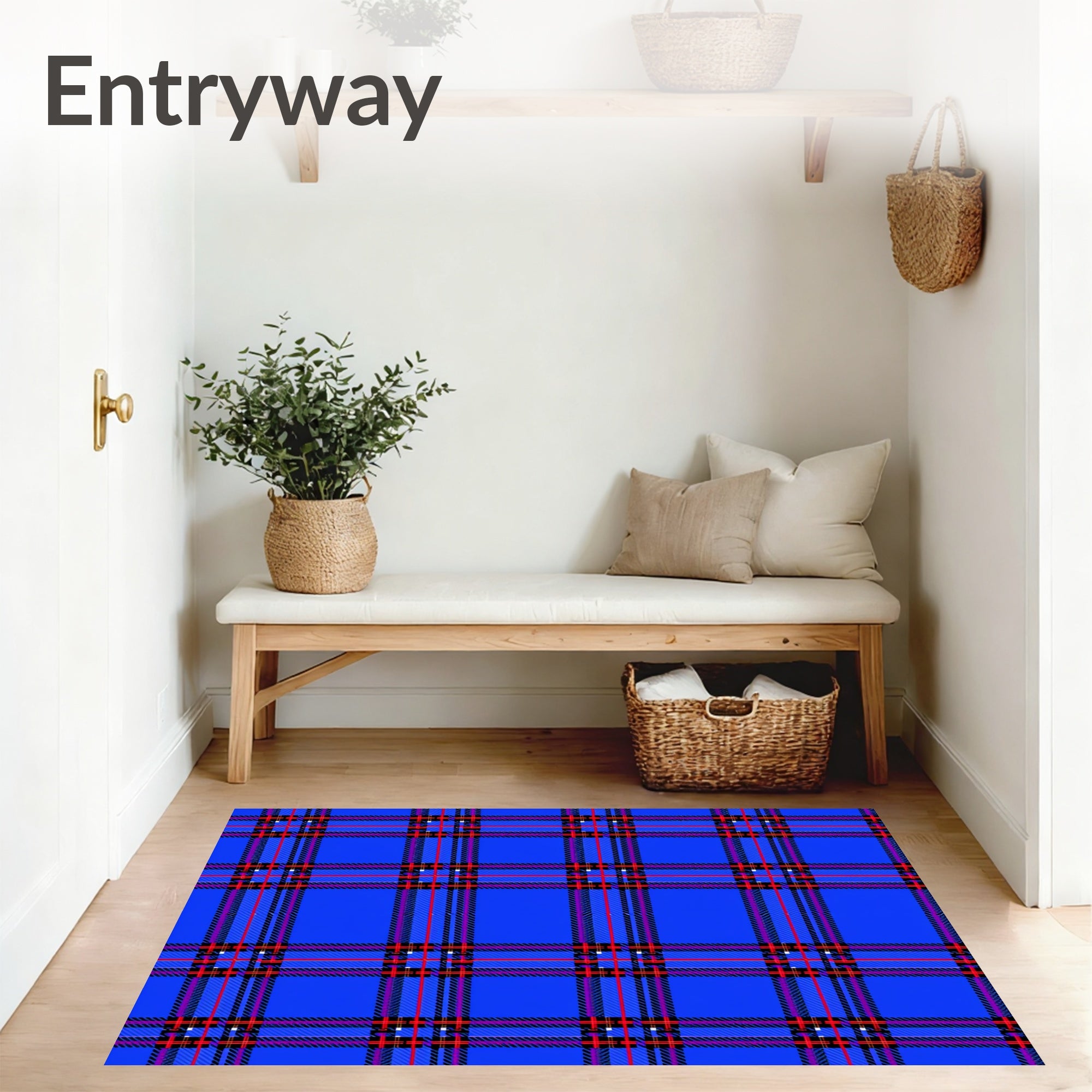Rustic Tartan Entry with Classic Highland Plaid Motif(Blue)