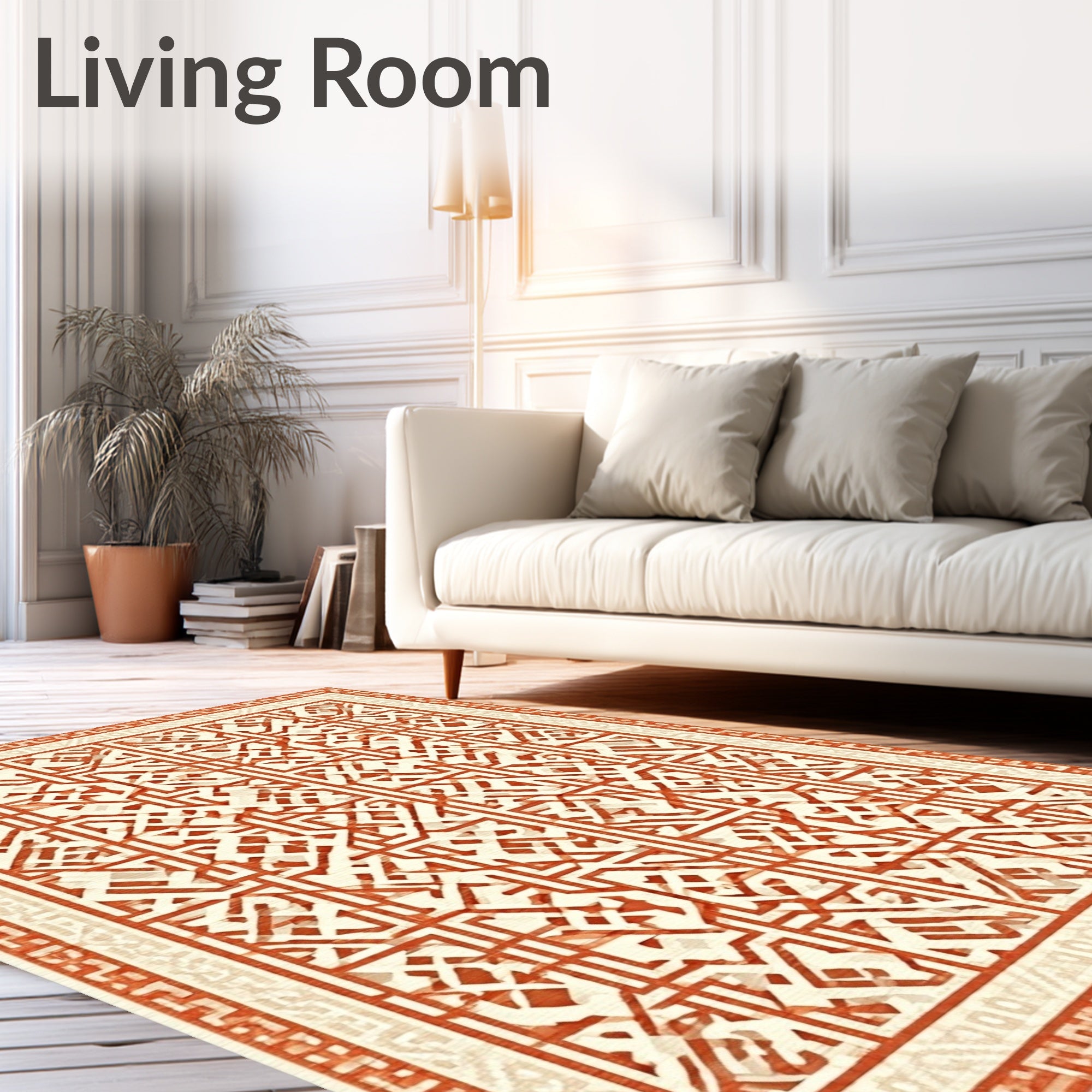 Ultra Soft Area Rug, Non Slip, Stain Resistant, Washable Area Rugs for Living Room, Bedroom, Rustic Terracotta Trellis Beige Accent(Orange) Overview: