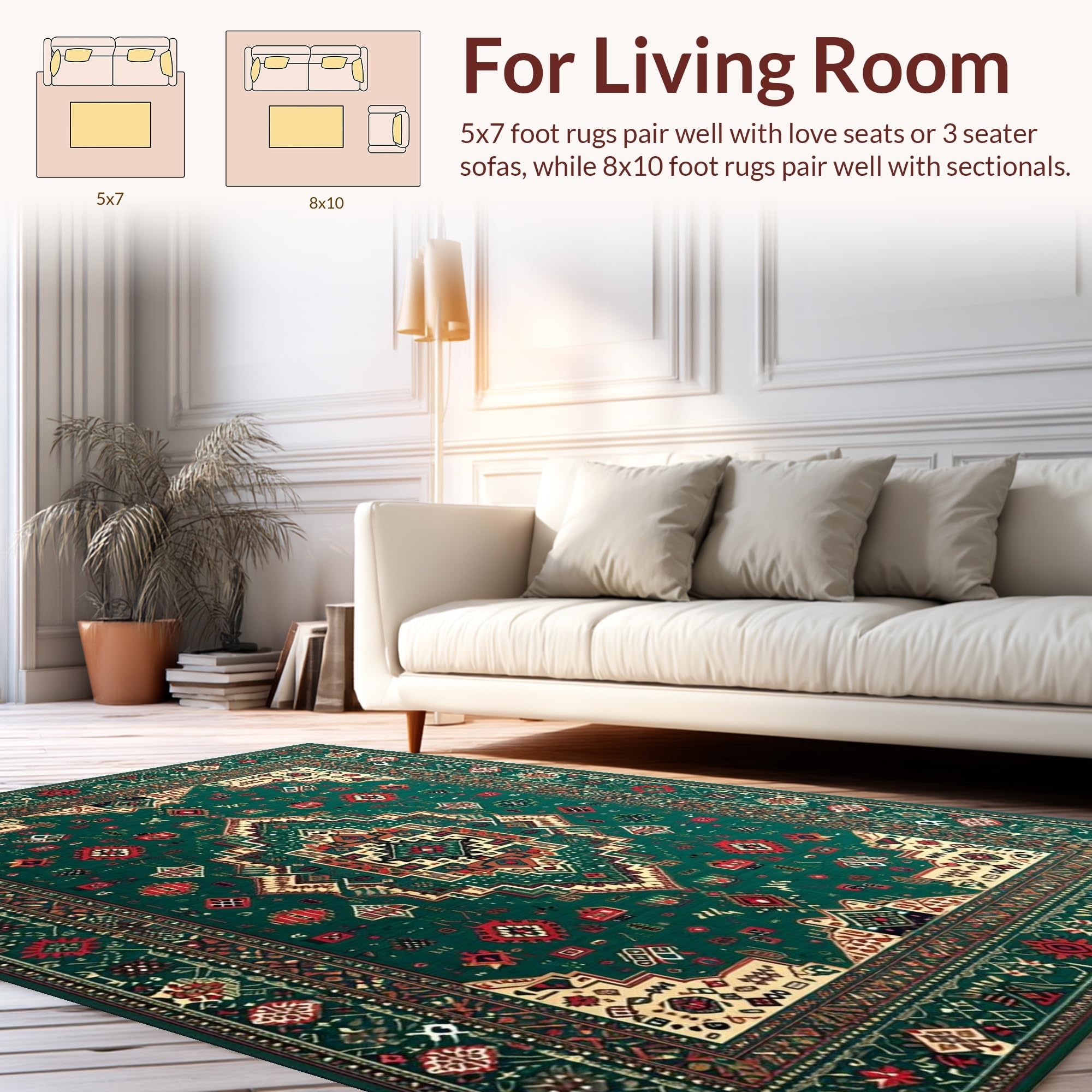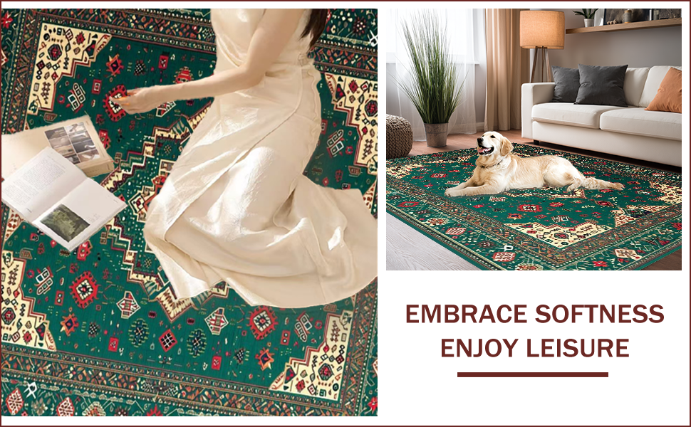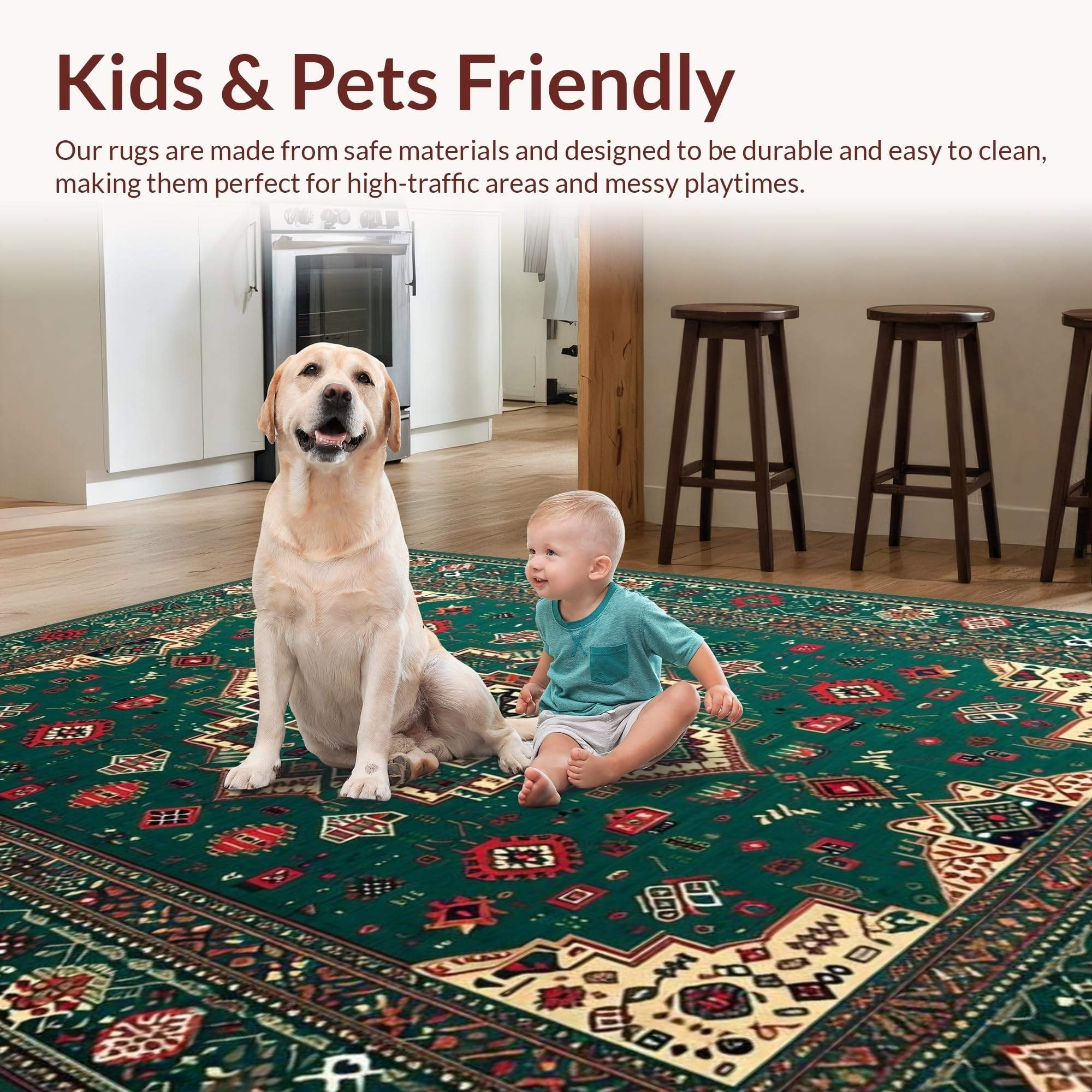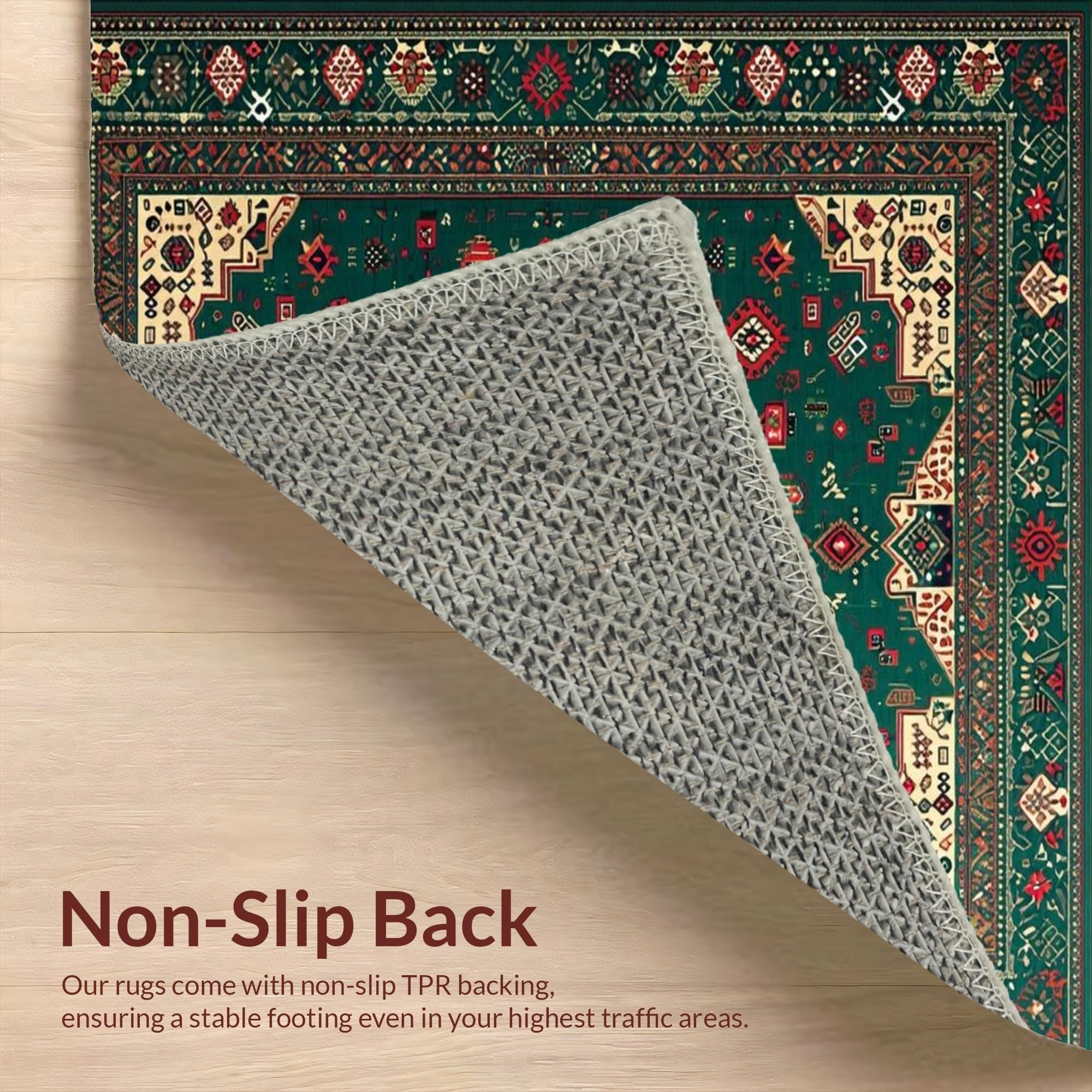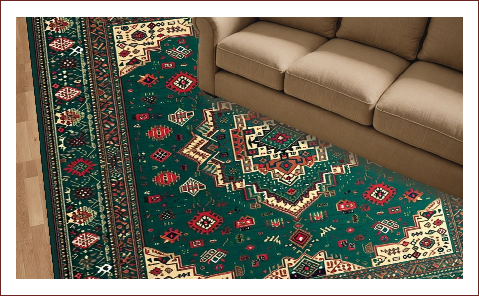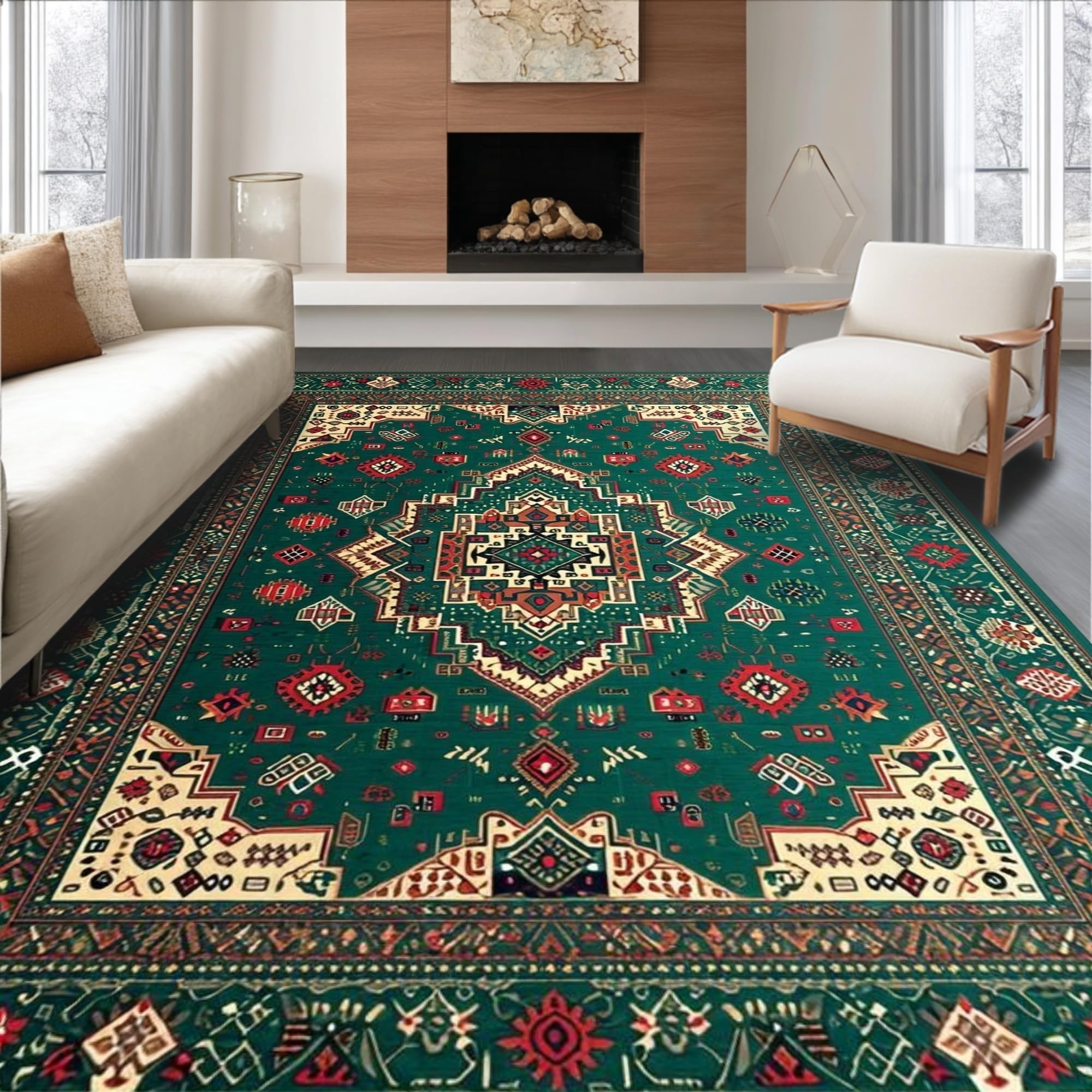 Ultra Soft Area Rug, Non Slip, Stain Resistant, Washable Area Rugs for Living Room, Bedroom, Rustic Tribal Warm Tones Design(Green) Overview: