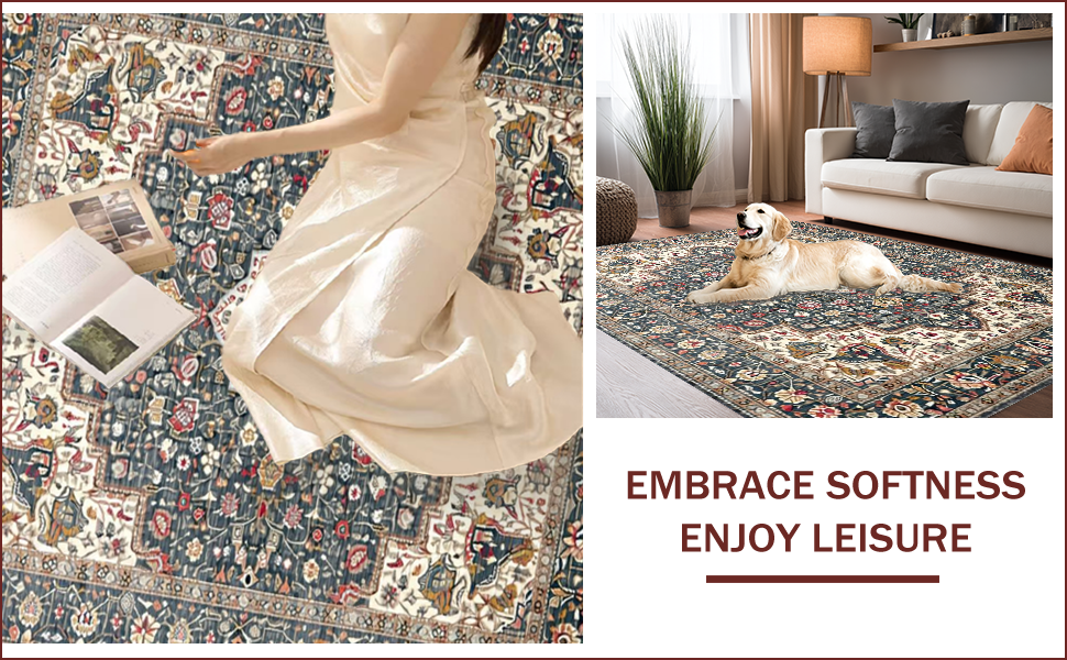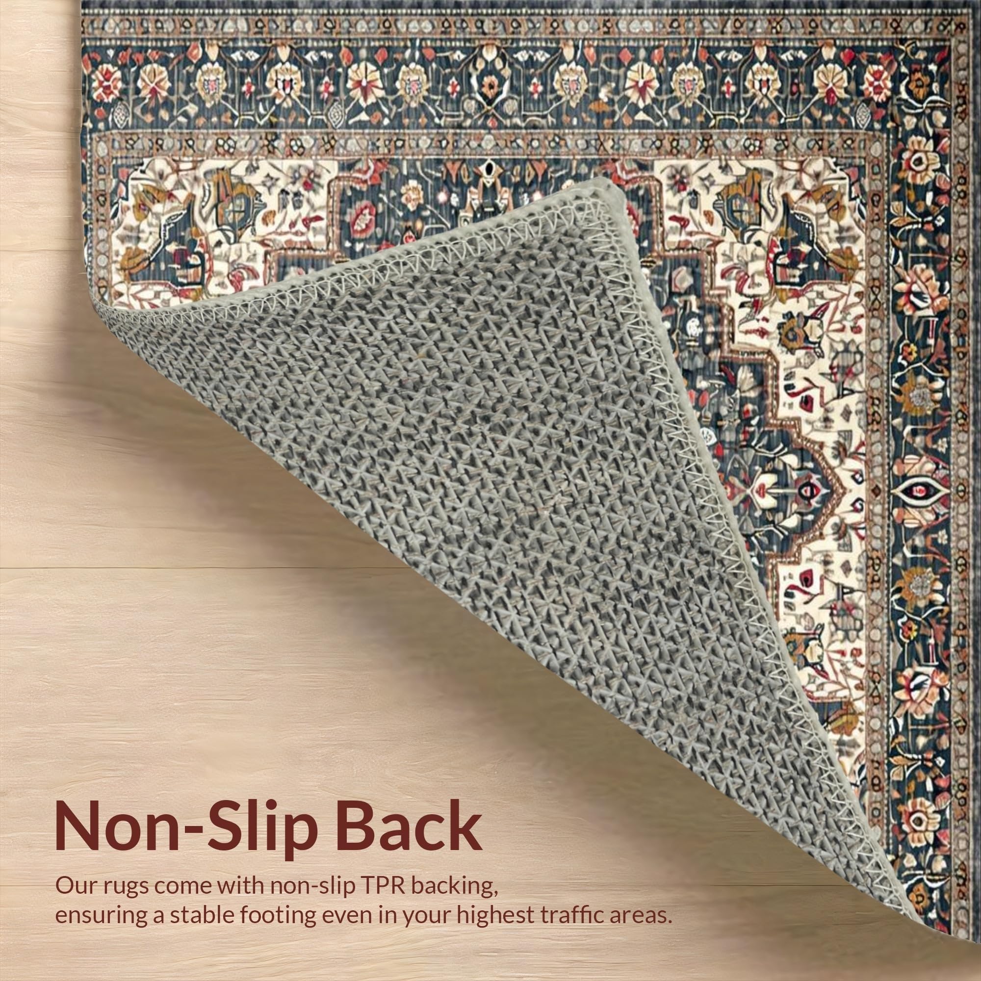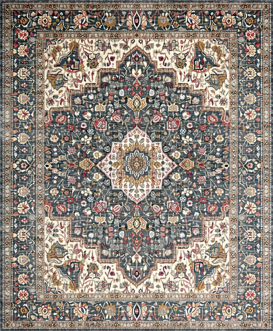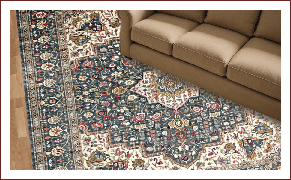Ultra Soft Area Rug, Non Slip, Stain Resistant, Washable Area Rugs for Living Room, Bedroom, Rustic Vintage Floral Elegance(Blue) Overview: