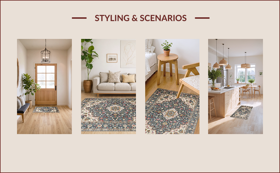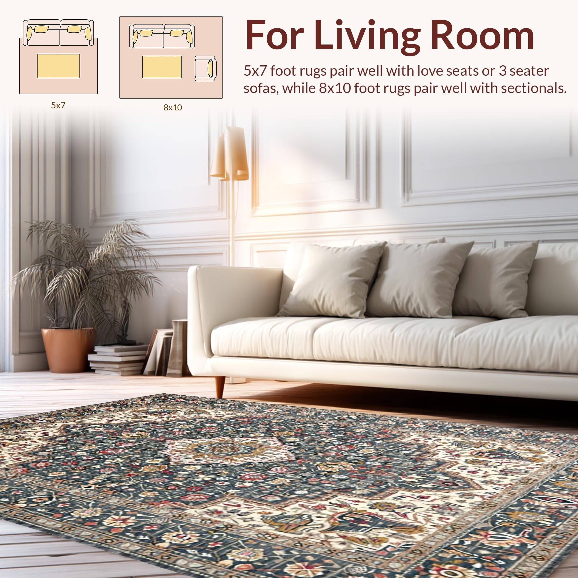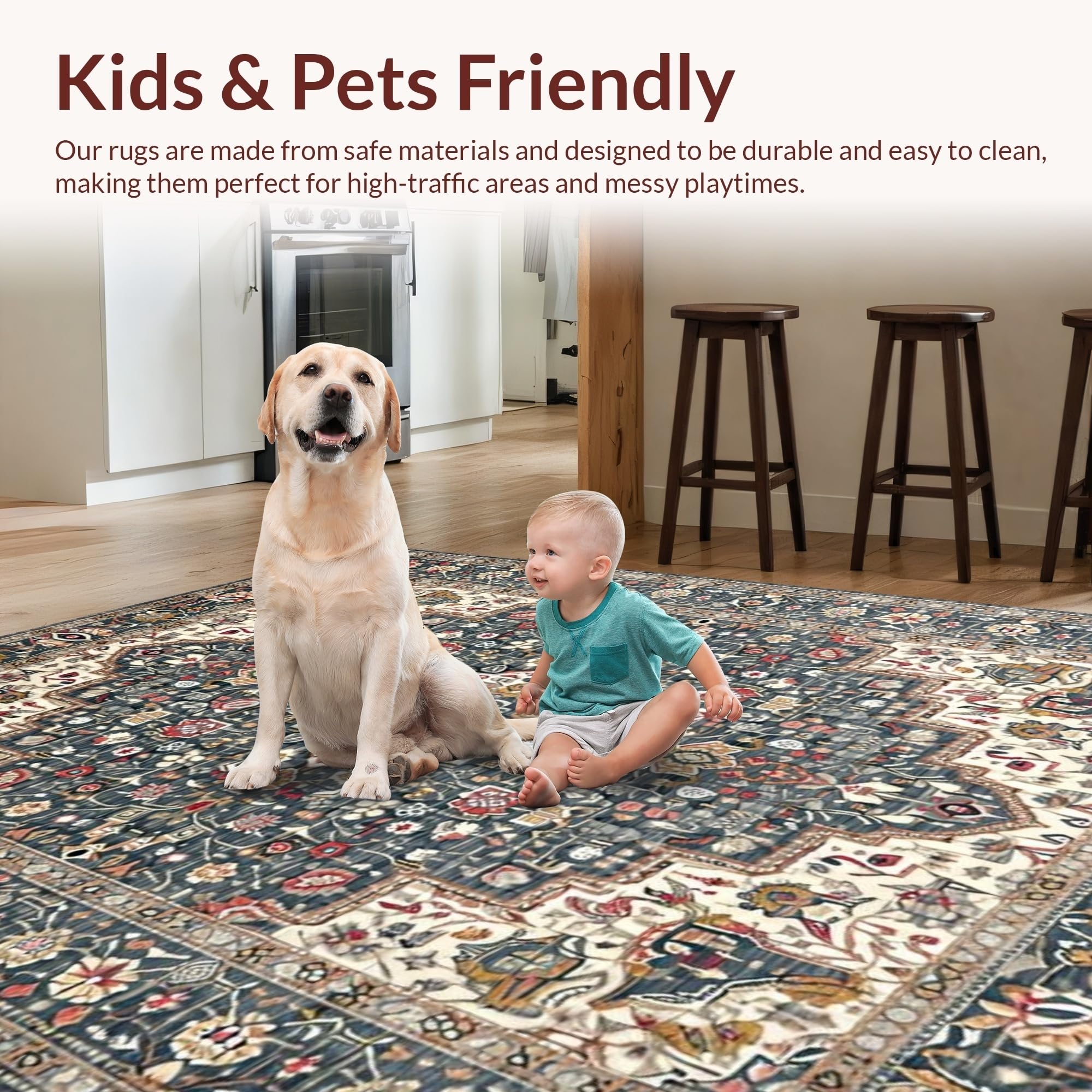 Ultra Soft Area Rug, Non Slip, Stain Resistant, Washable Area Rugs for Living Room, Bedroom, Rustic Vintage Floral Elegance(Blue) Overview: