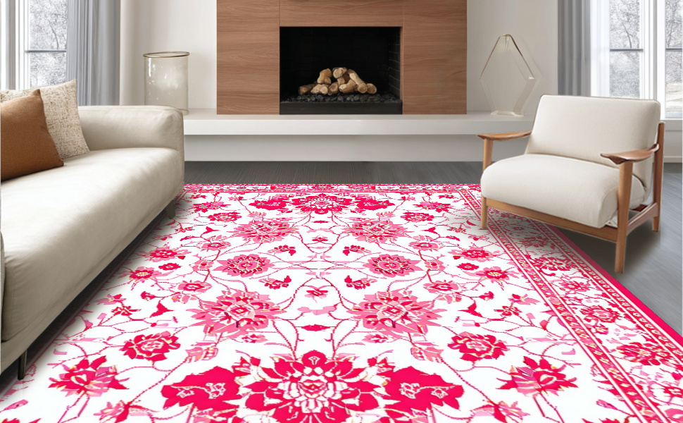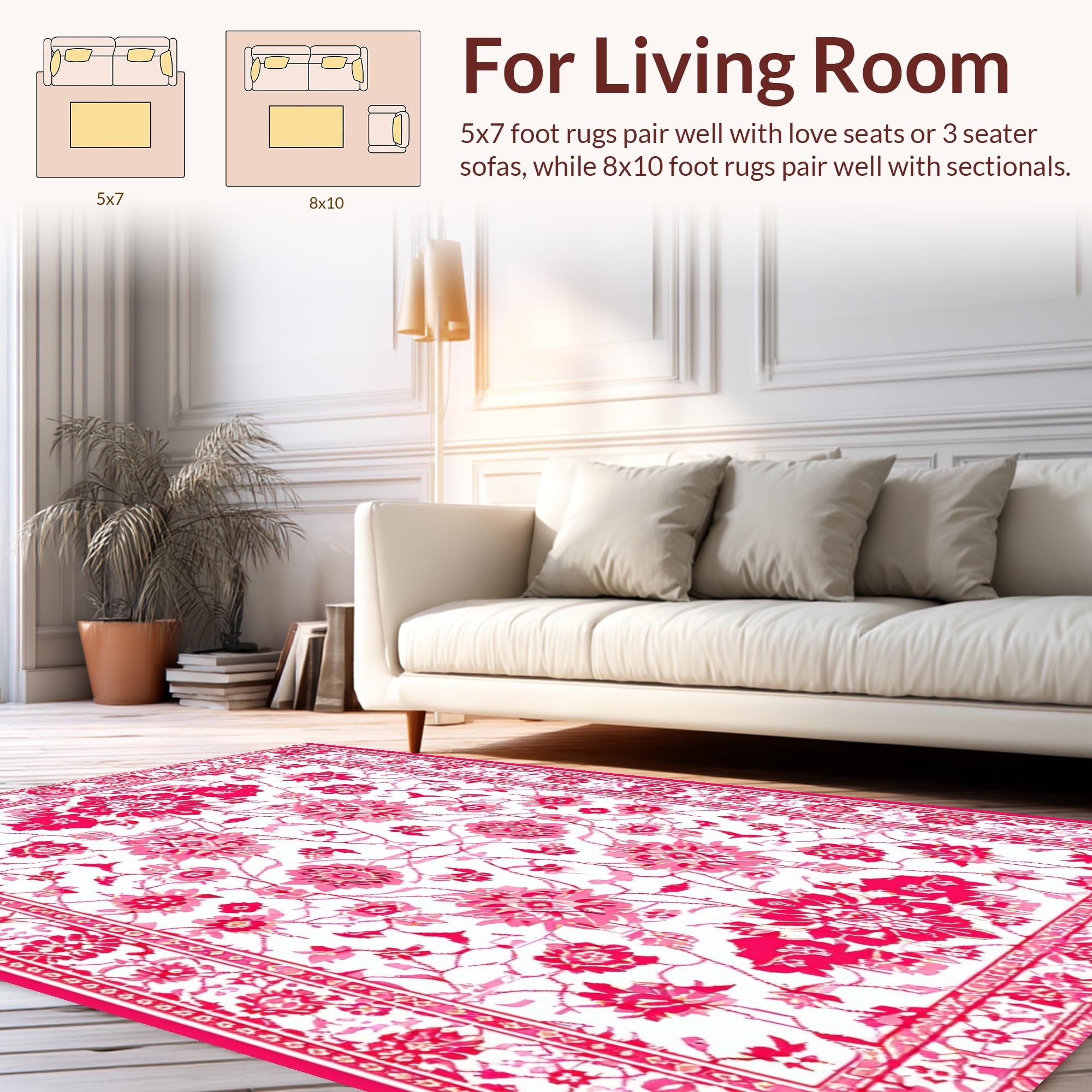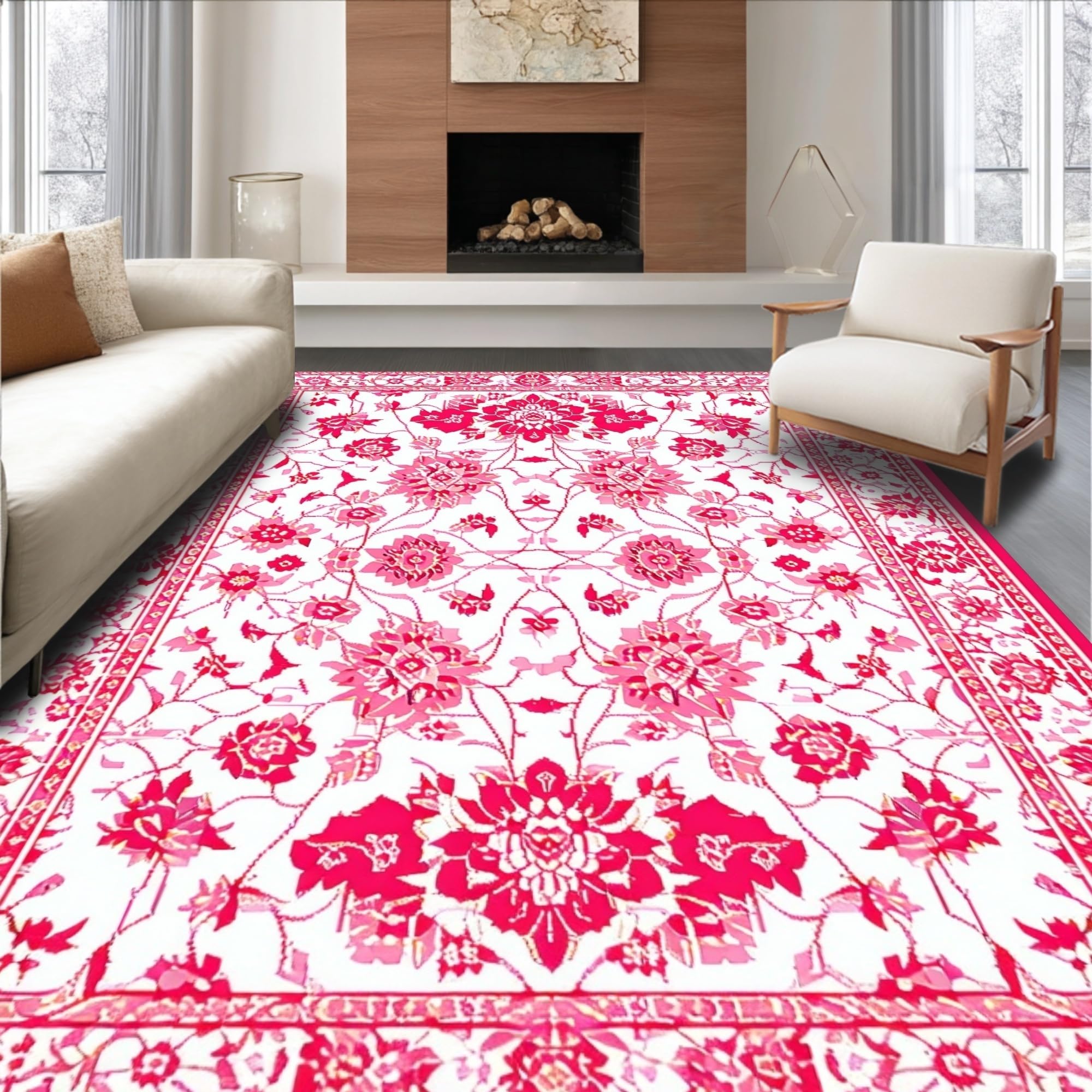 Ultra Soft Area Rug, Non Slip, Stain Resistant, Washable Area Rugs for Living Room, Bedroom, Rustic Warm Earthy Floral Theme(White) Overview: