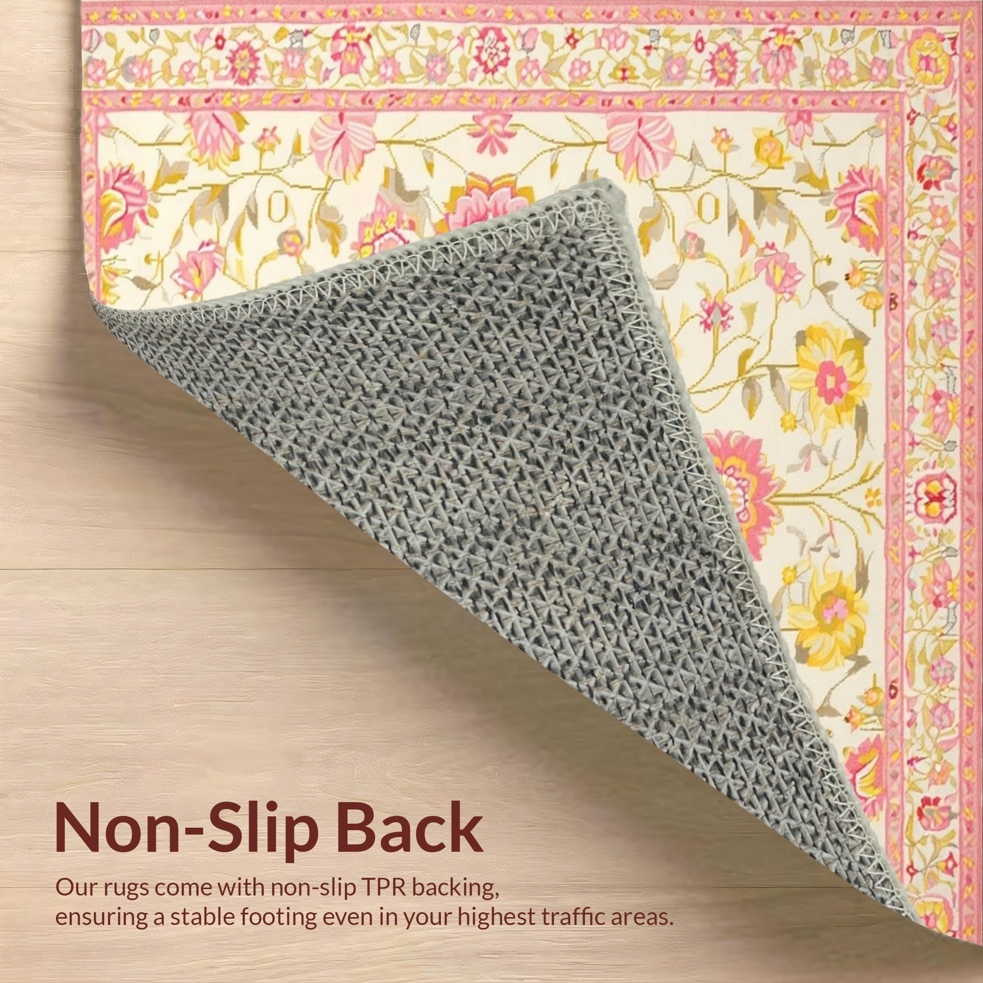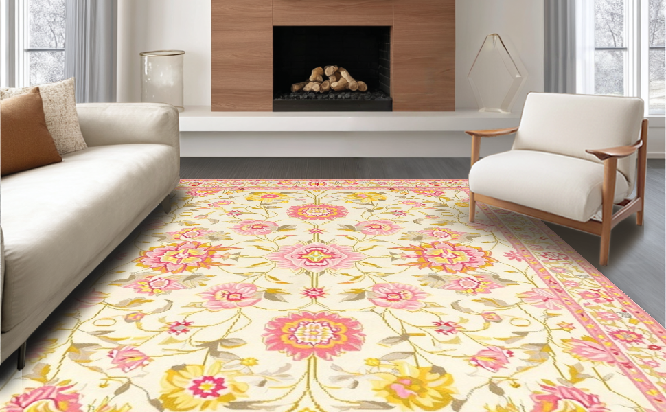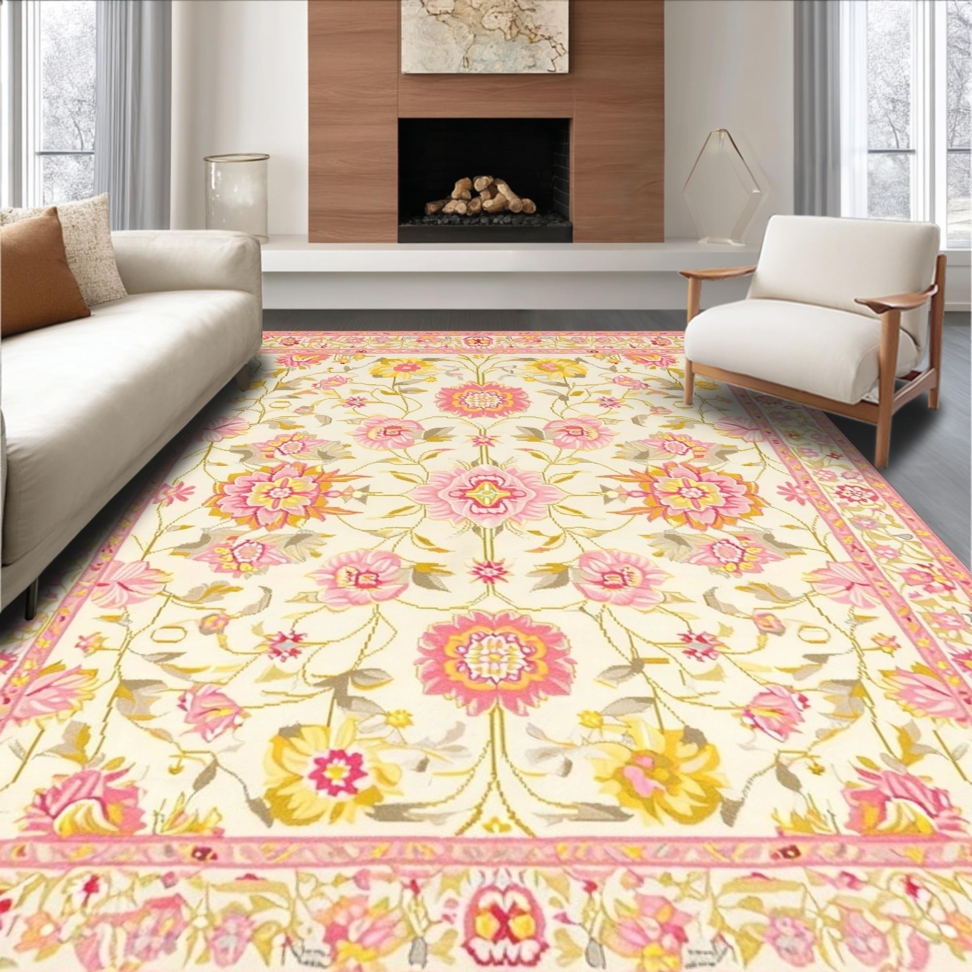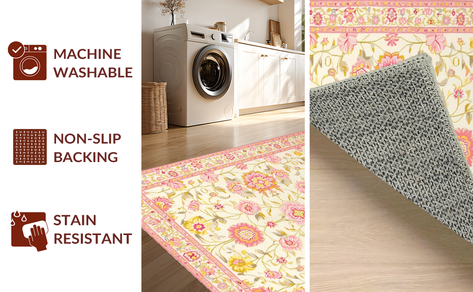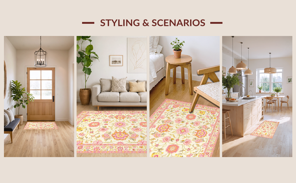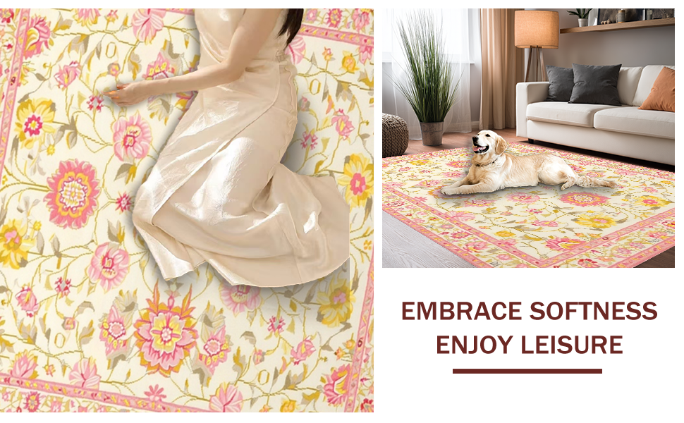 Ultra Soft Area Rug, Non Slip, Stain Resistant, Washable Area Rugs for Living Room, Bedroom, Rustic Warm Floral Aesthetic(Ivory) Overview:
