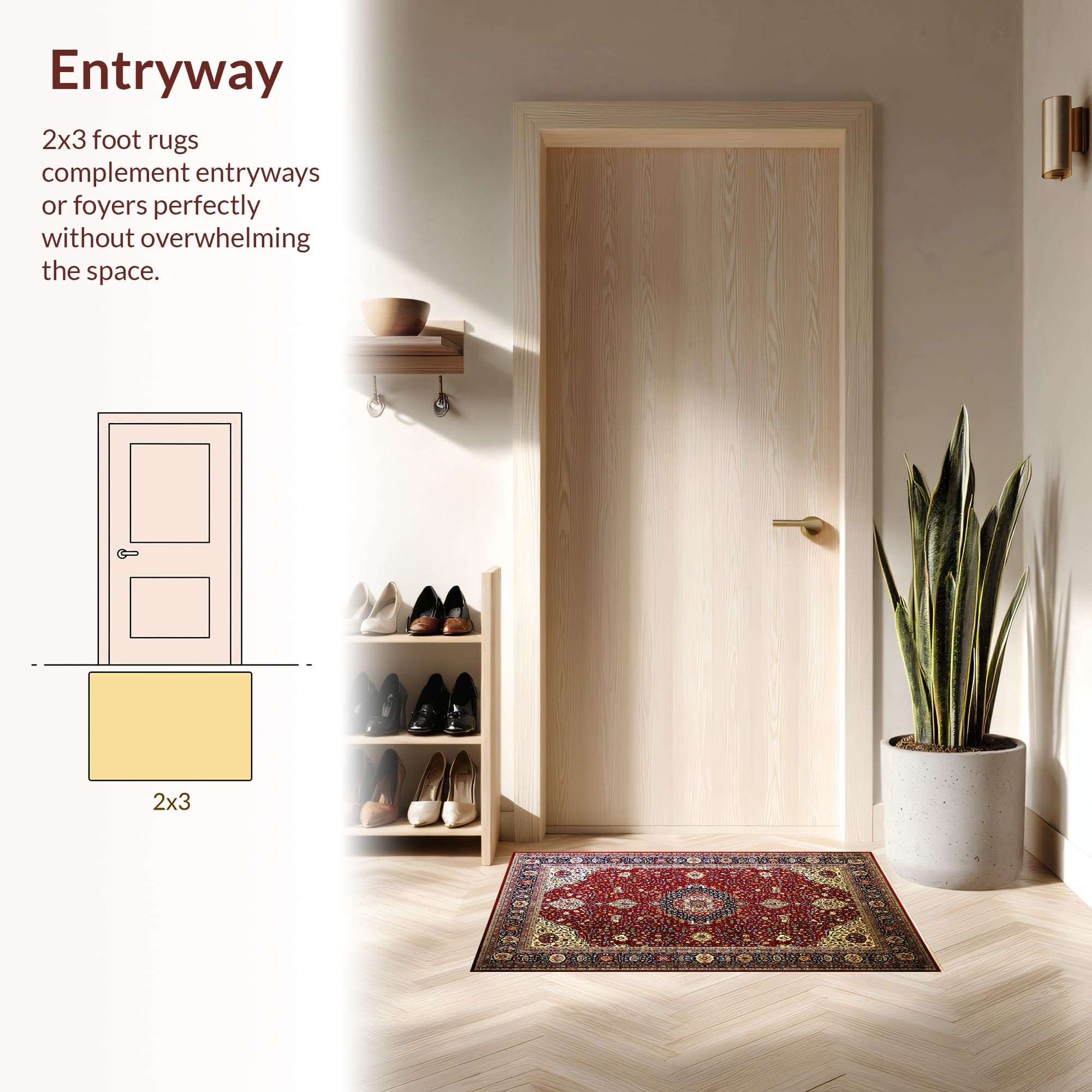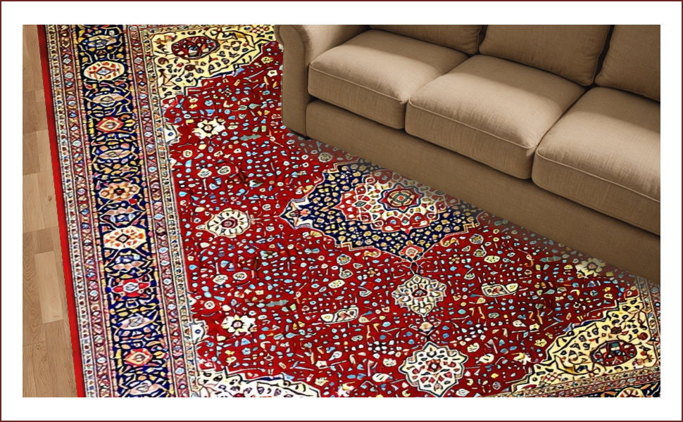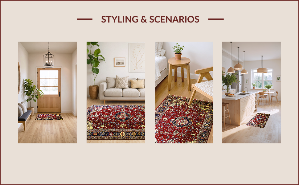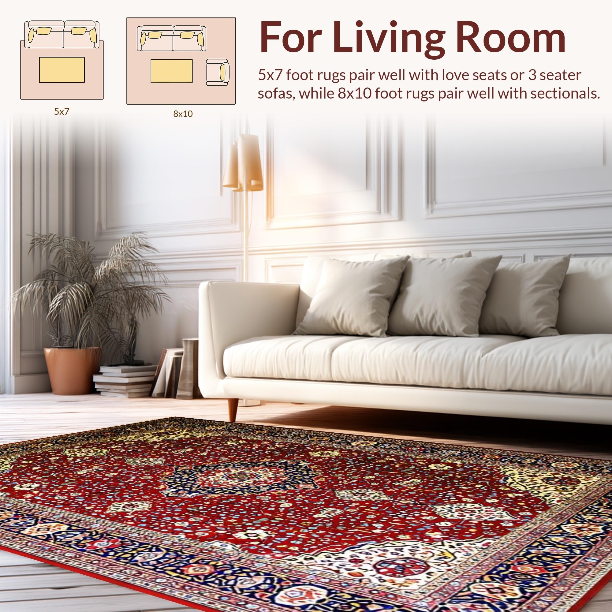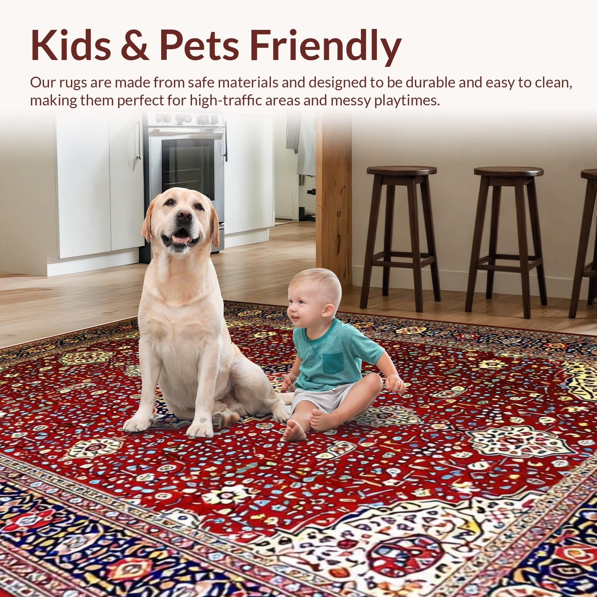 Ultra Soft Area Rug, Non Slip, Stain Resistant, Washable Area Rugs for Living Room, Bedroom, Rustic Warm Toned Floral Design(Red) Overview: