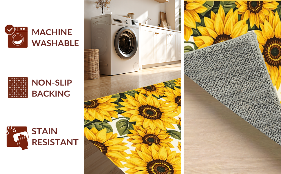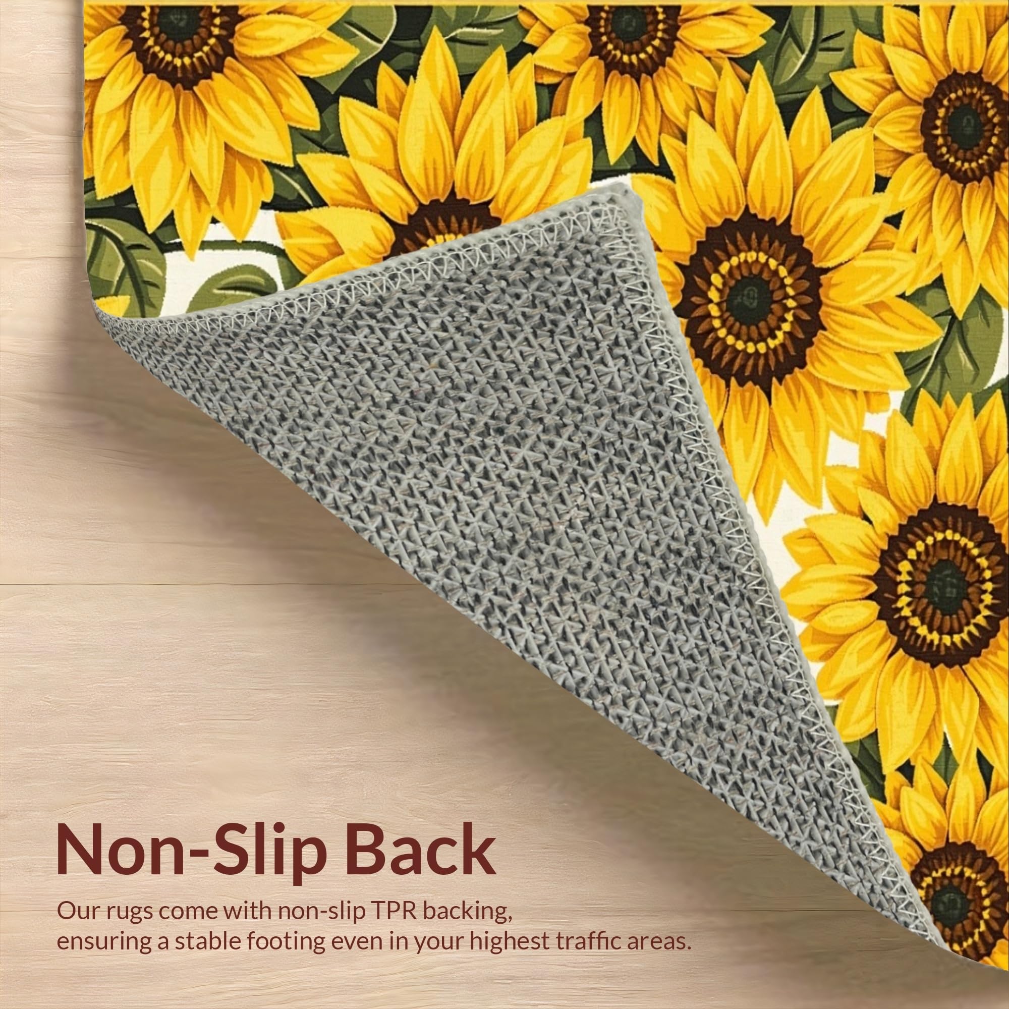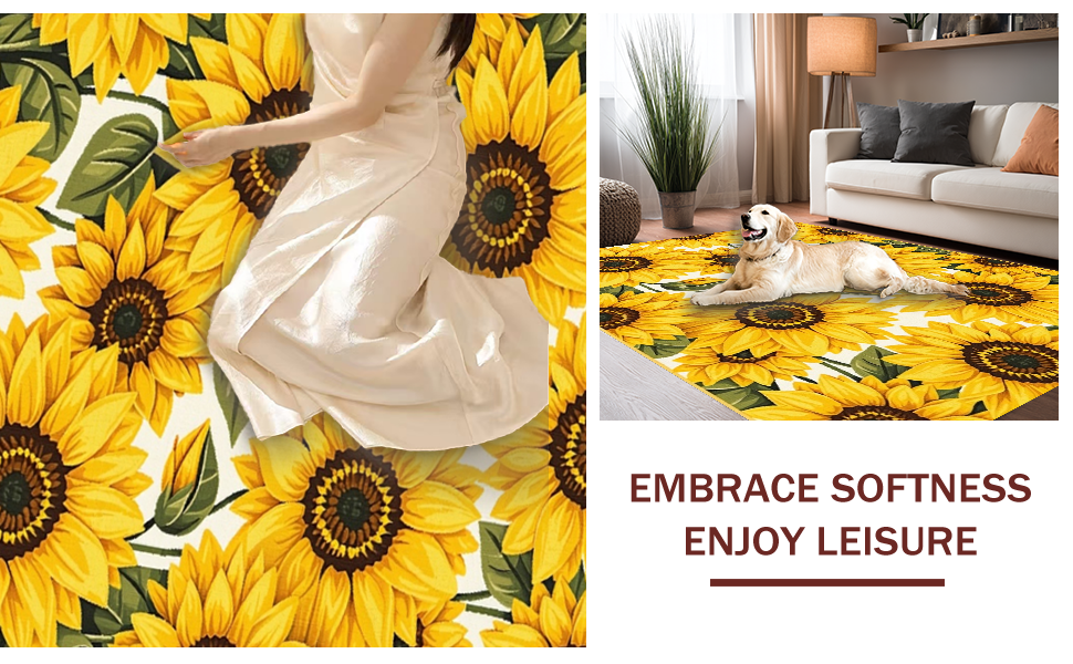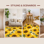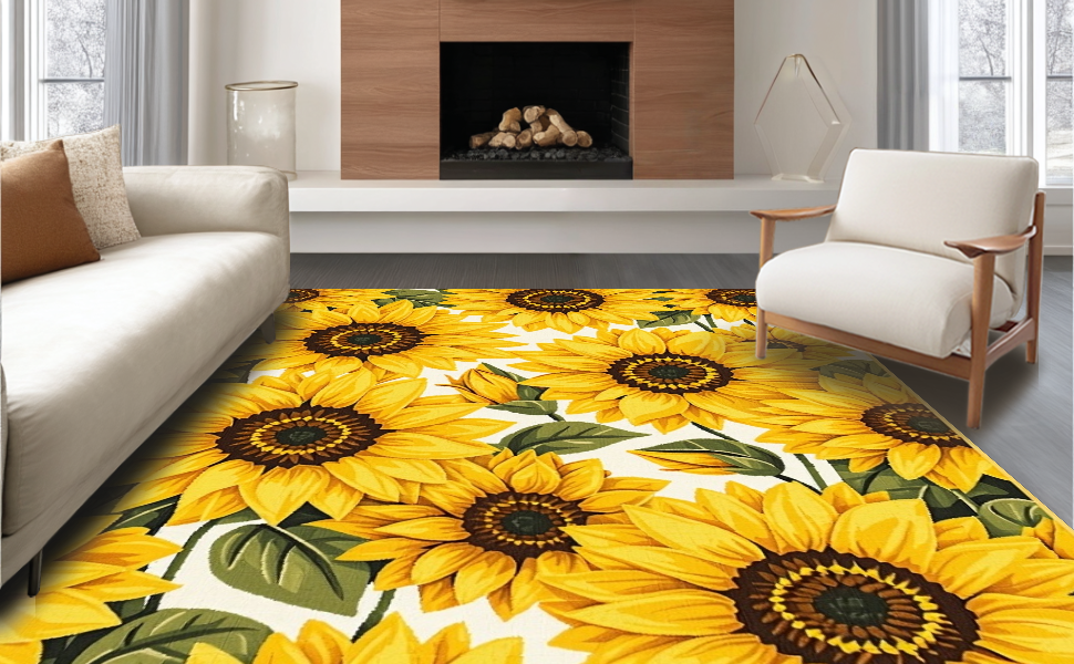 Ultra Soft Area Rug, Non Slip, Stain Resistant, Washable Area Rugs for Living Room, Bedroom, Rustic Whimsical Sunflower Motif(Yellow) Overview: