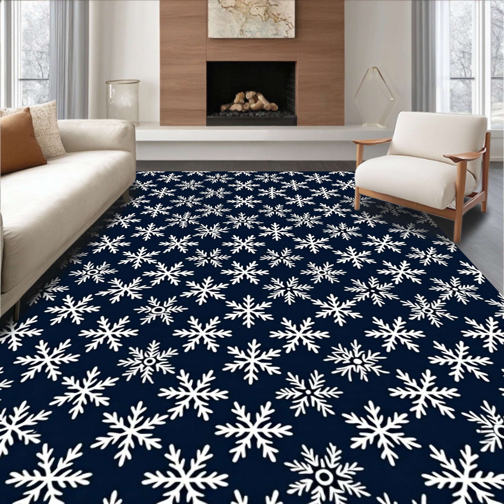 Ultra Soft Area Rug, Non Slip, Stain Resistant, Washable Area Rugs for Living Room, Bedroom, Rustic Winter Wonderland Entrance Frosty Flakes Farmhouse(Blue) Overview: