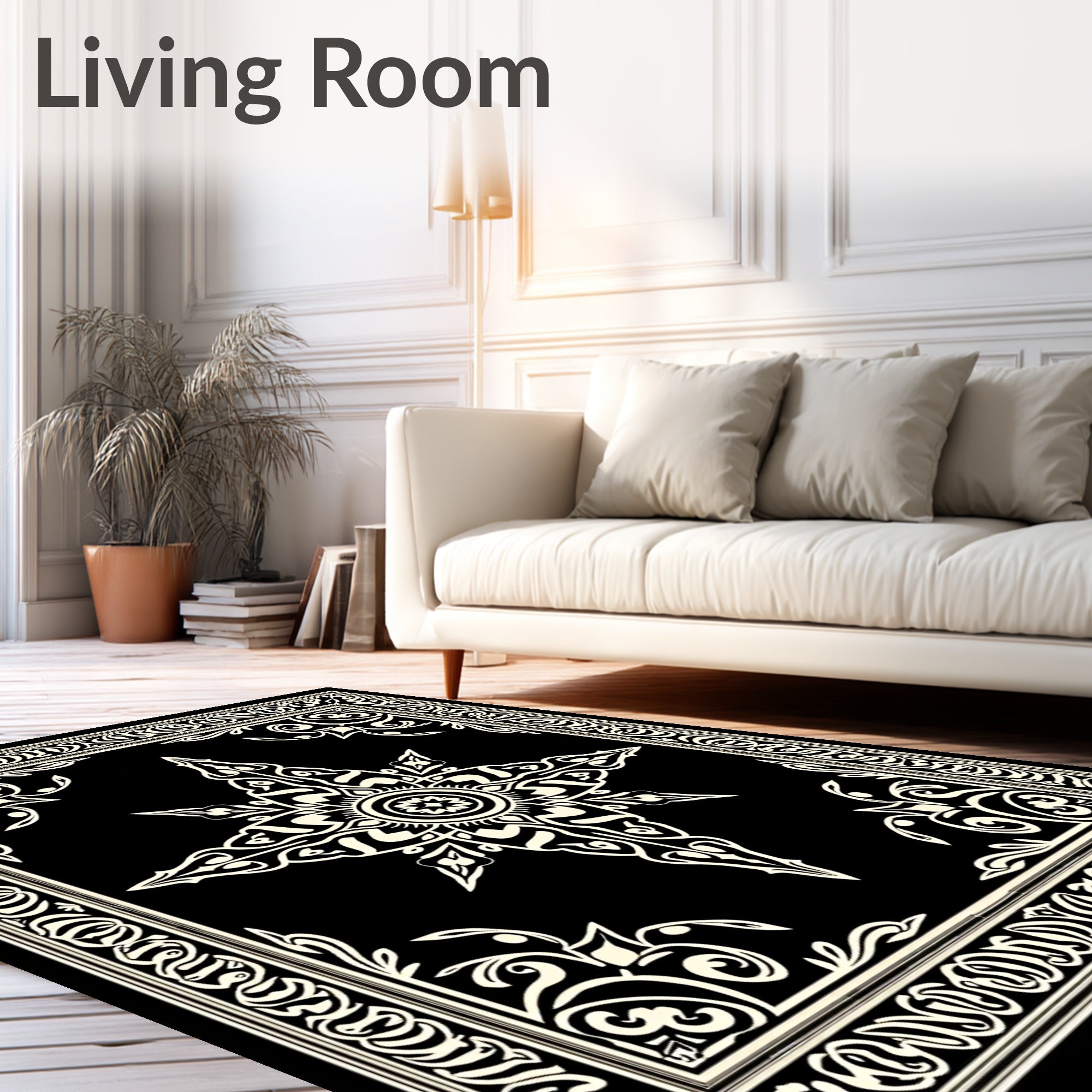 Ultra Soft Area Rug, Non Slip, Stain Resistant, Washable Area Rugs for Living Room, Bedroom, Sacred Meditation Foldable Compact Storage Spiritual Journey(Black) Overview: