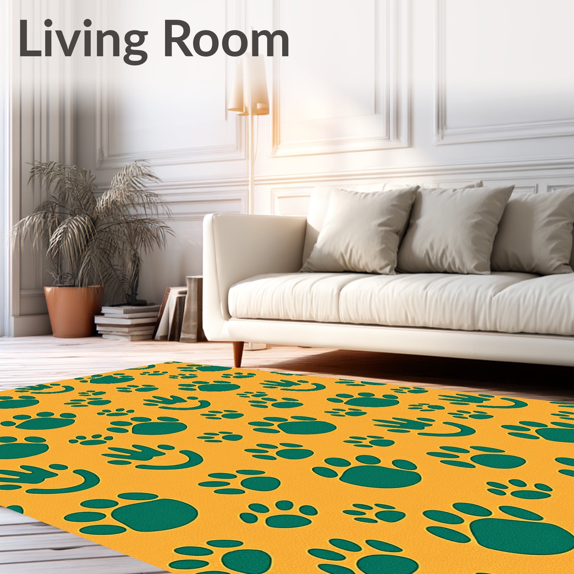 Ultra Soft Area Rug, Non Slip, Stain Resistant, Washable Area Rugs for Living Room, Bedroom, Safari Adventure Animal Footprint Trail Design(Orange) Overview: