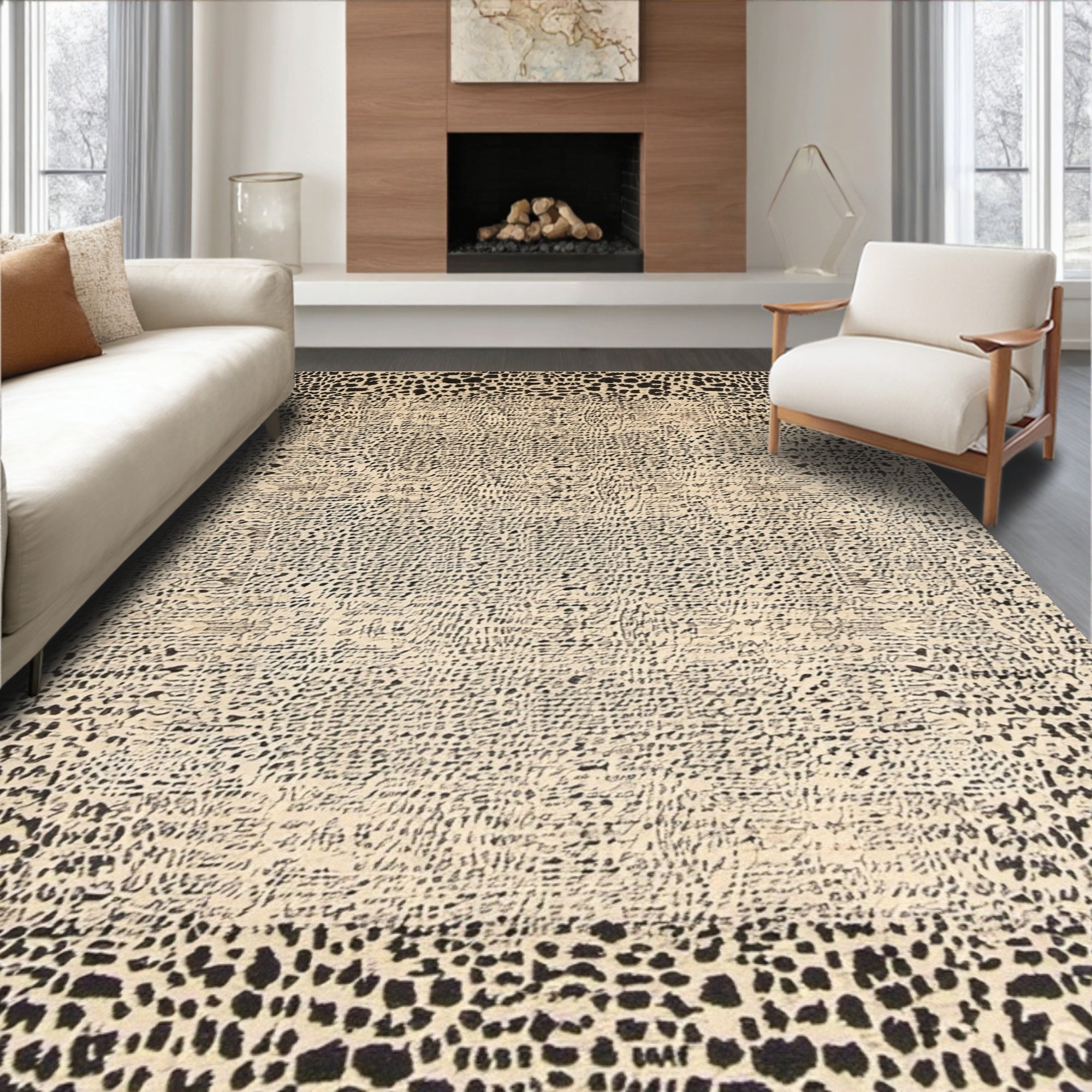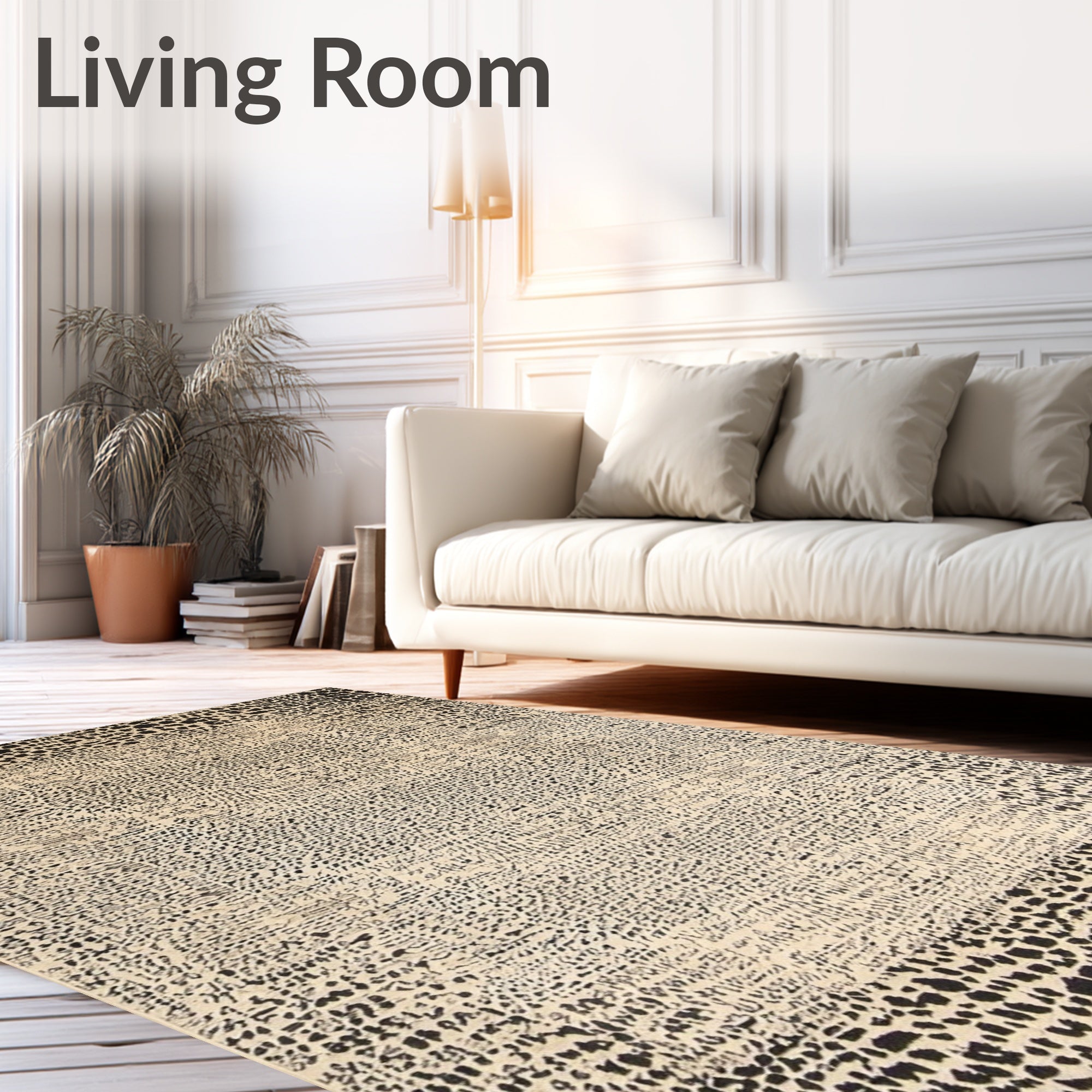 Ultra Soft Area Rug, Non Slip, Stain Resistant, Washable Area Rugs for Living Room, Bedroom, Safari Inspired Area Rug with Wild Spotted Design(Beige) Overview: