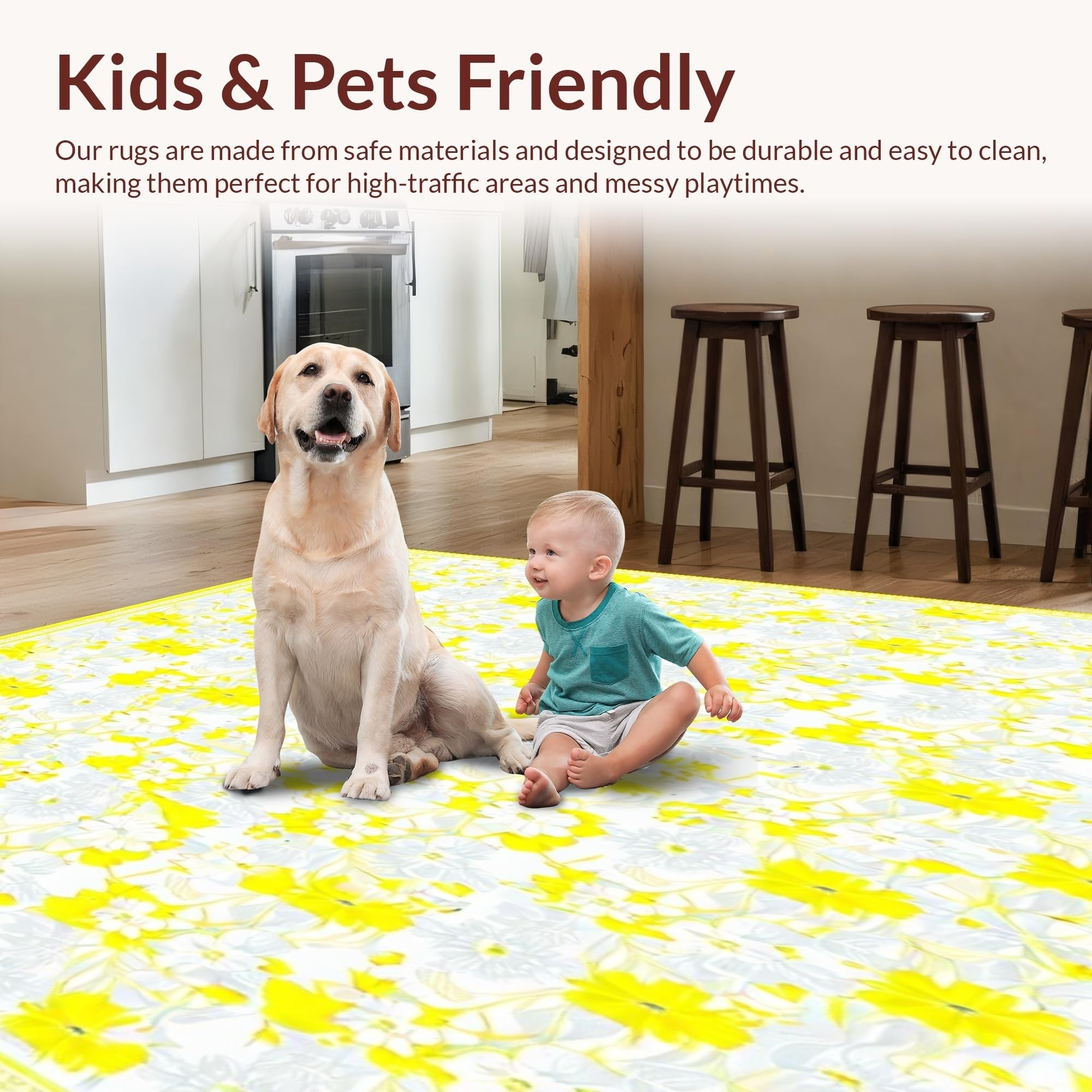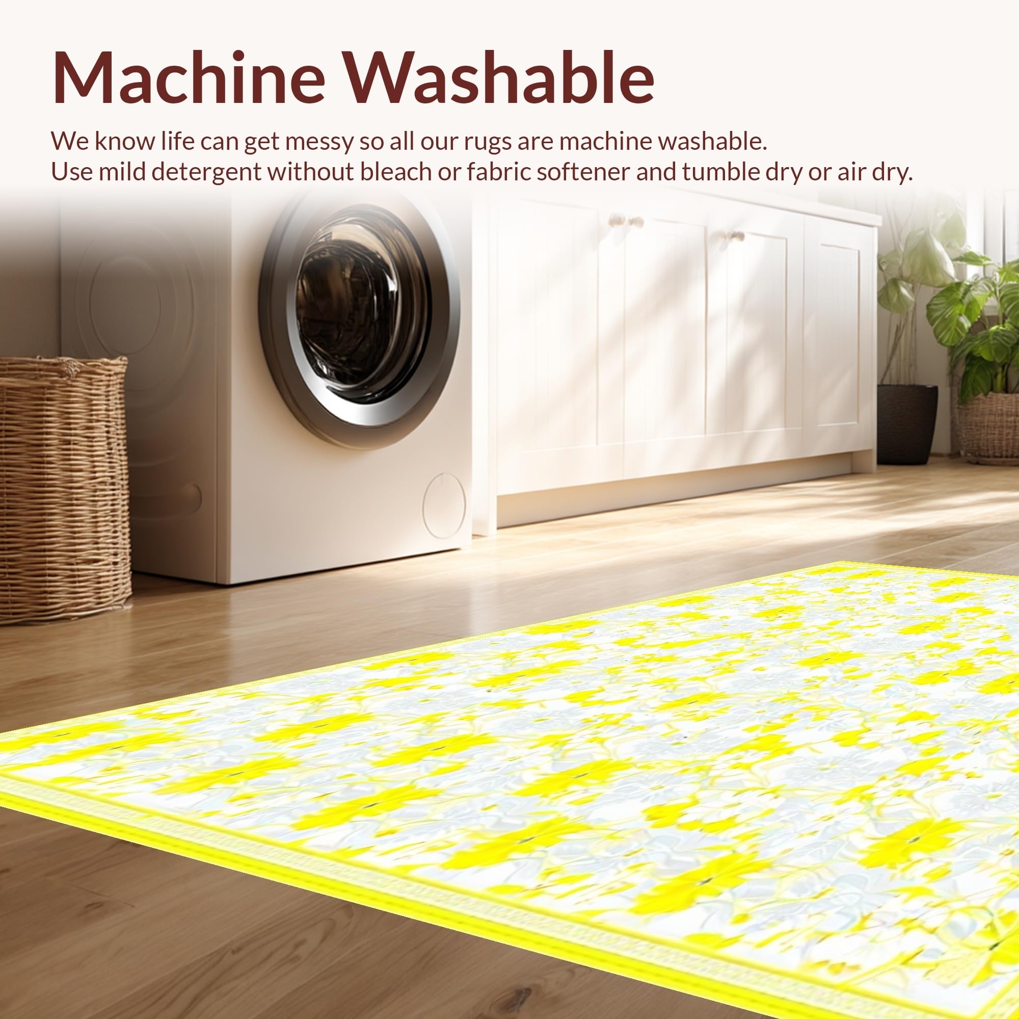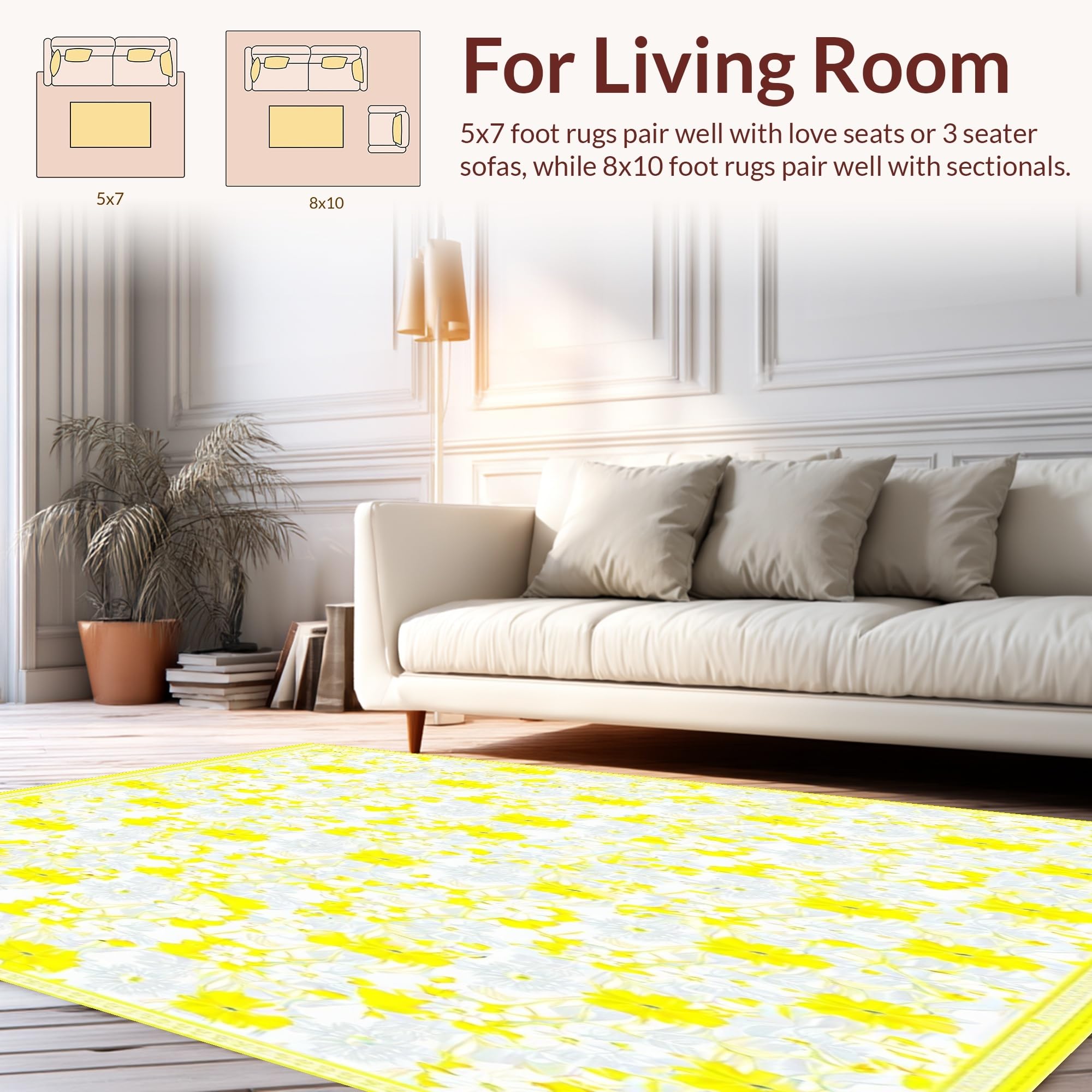 Ultra Soft Area Rug, Non Slip, Stain Resistant, Washable Area Rugs for Living Room, Bedroom, Sanctuary with Delicate Floral Accents(Yellow) Overview: