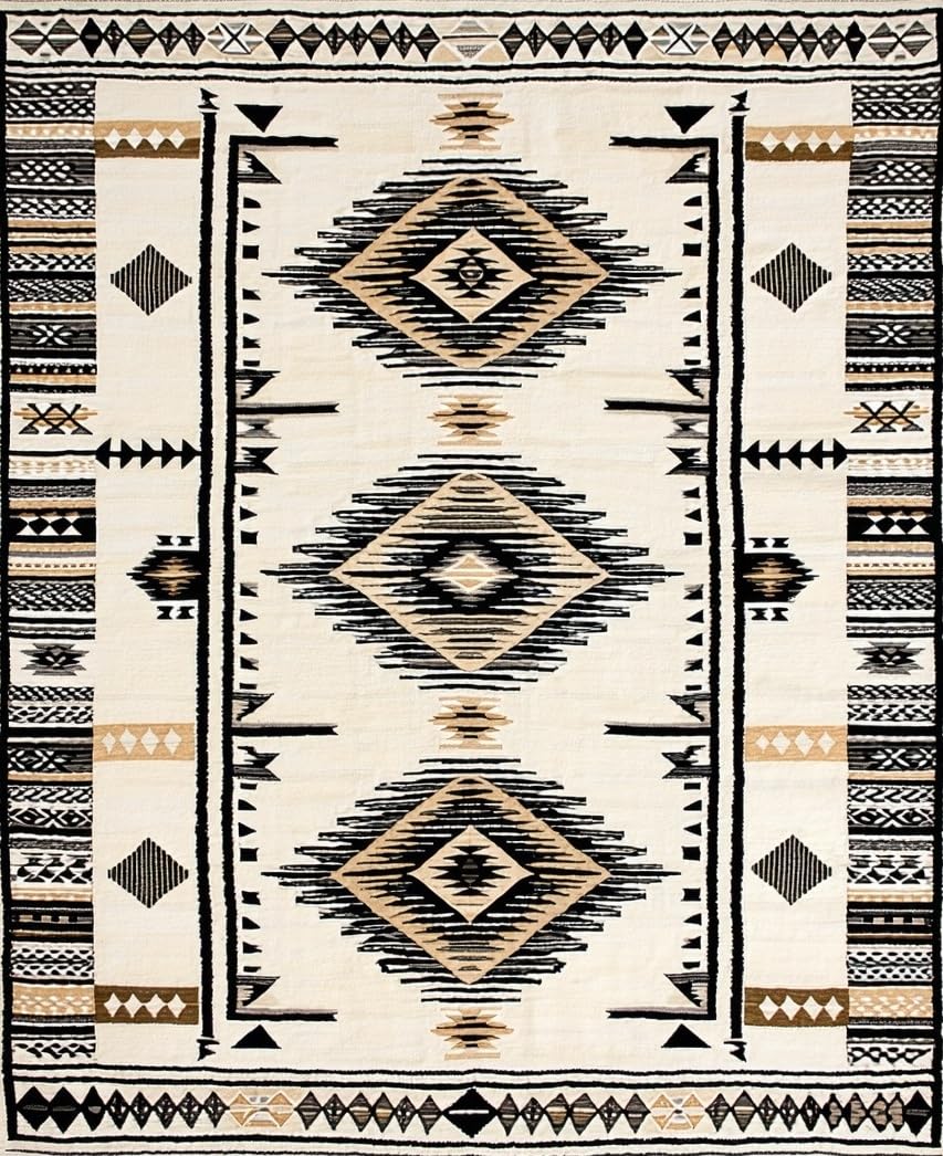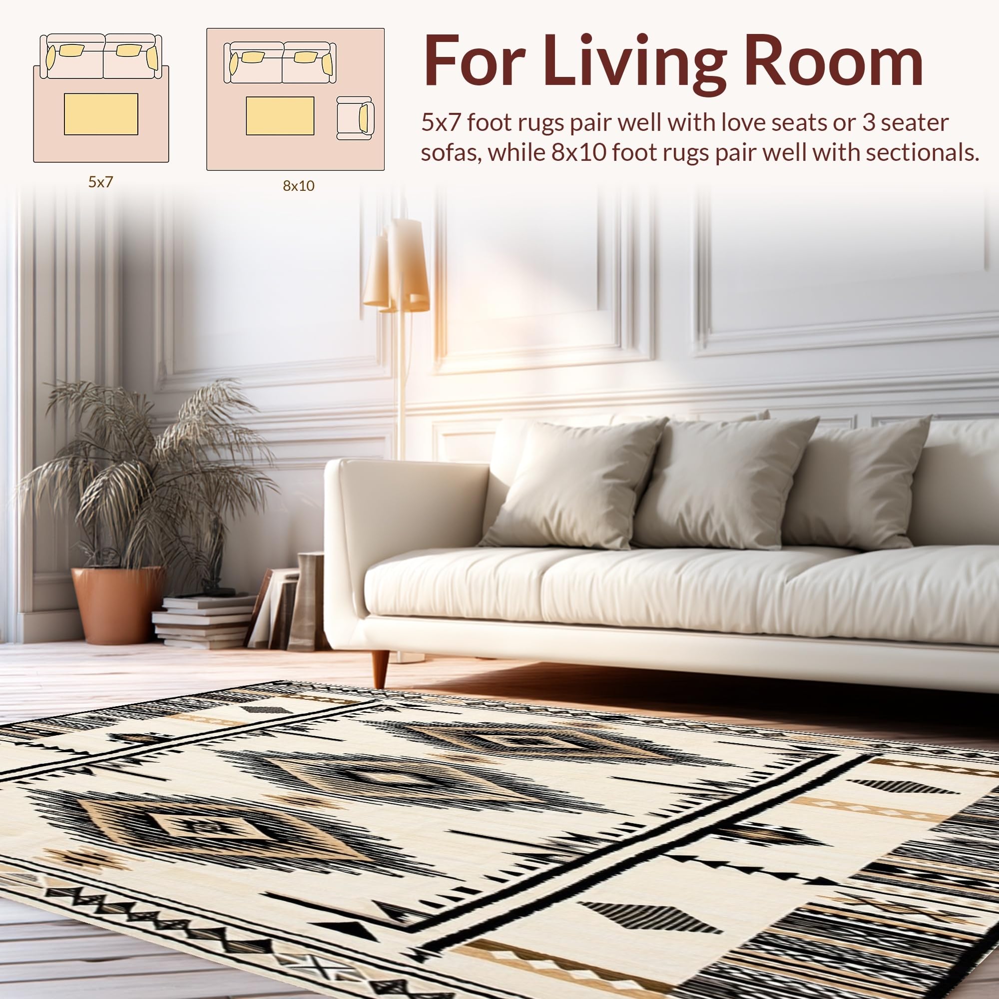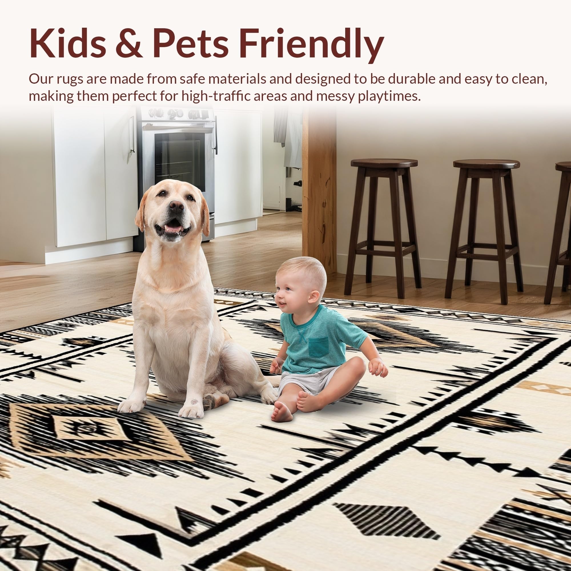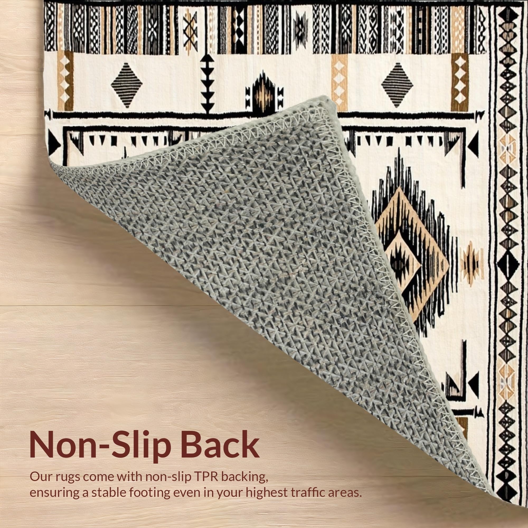 Ultra Soft Area Rug, Non Slip, Stain Resistant, Washable Area Rugs for Living Room, Bedroom, Savanna Spirit Runner with Ethnic Medallion and Geometric Stripe Area Motif(Beige) Overview: