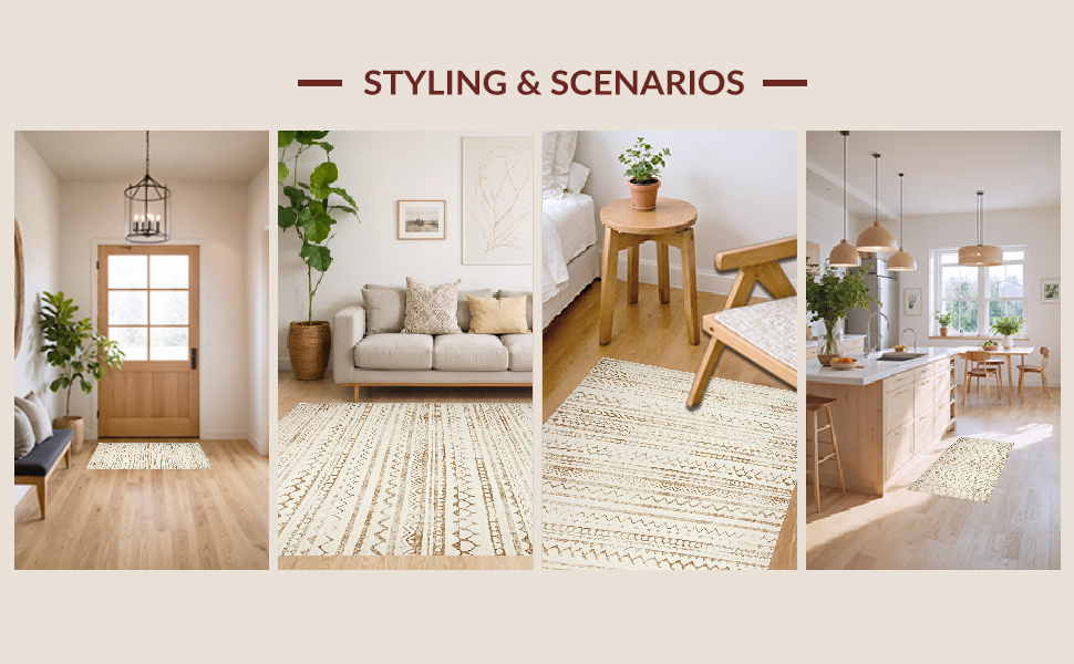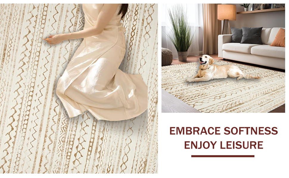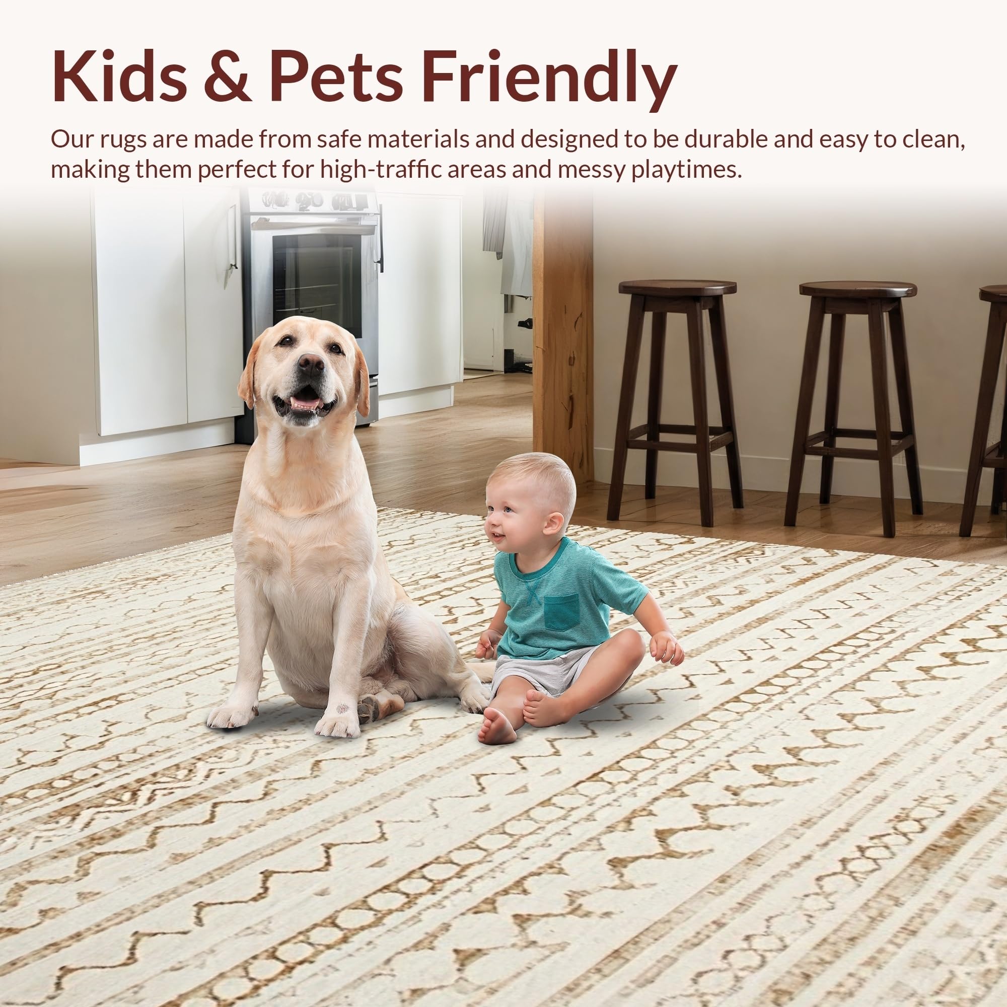 Ultra Soft Area Rug, Non Slip, Stain Resistant, Washable Area Rugs for Living Room, Bedroom, Scalloped Earthy Tones Elegance(Beige) Overview: