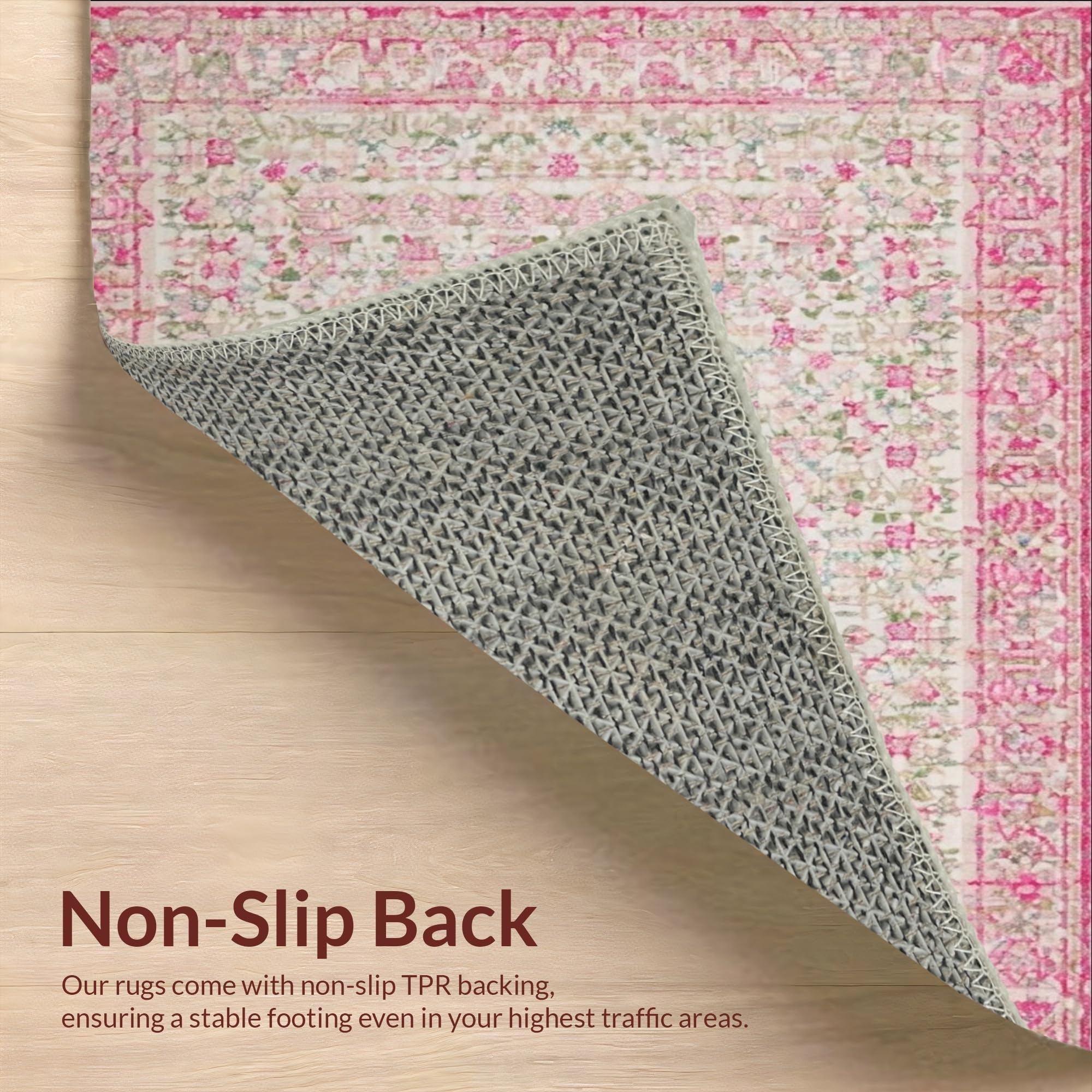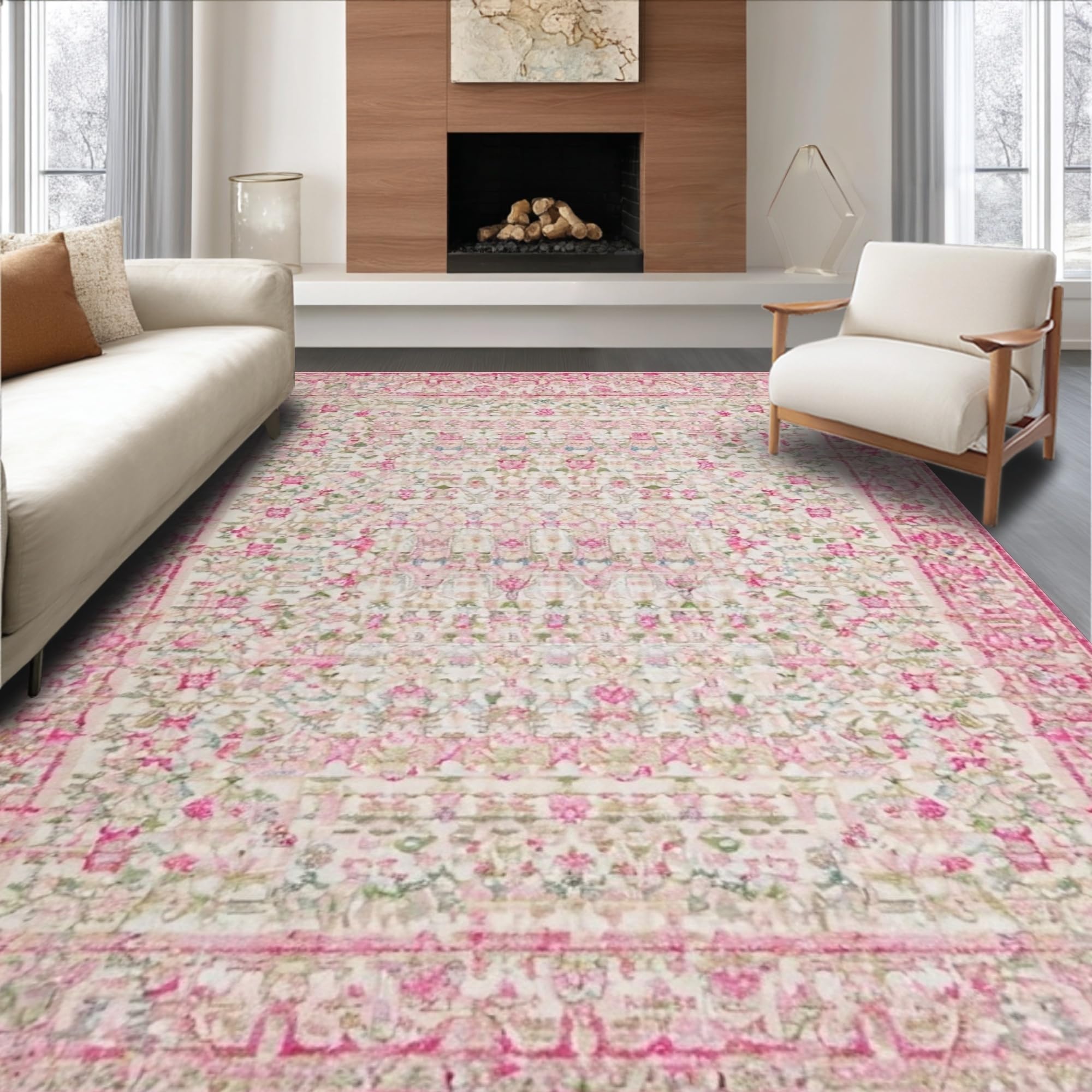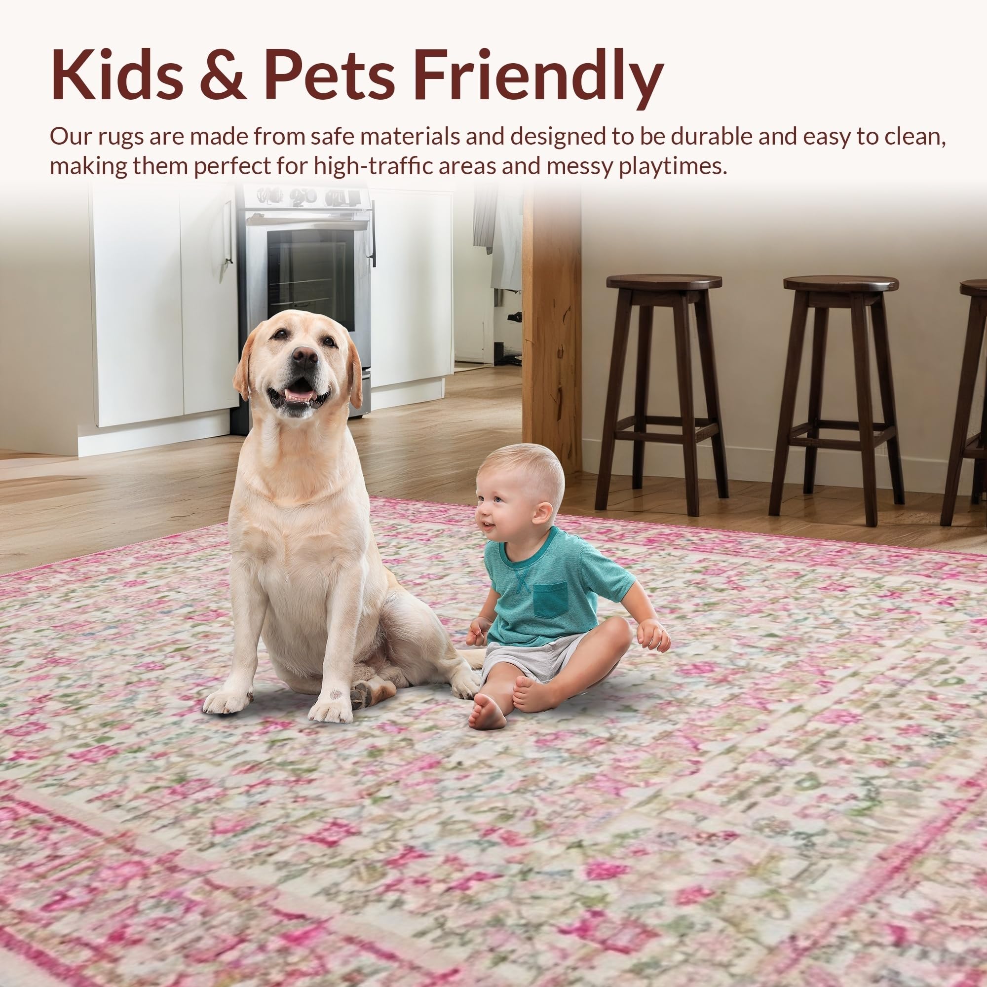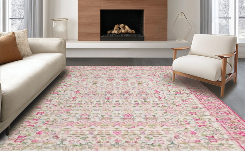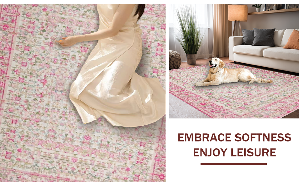 Ultra Soft Area Rug, Non Slip, Stain Resistant, Washable Area Rugs for Living Room, Bedroom, Scalloped Edge Bow Room Carpet Charming Pink(Pink) Overview:
