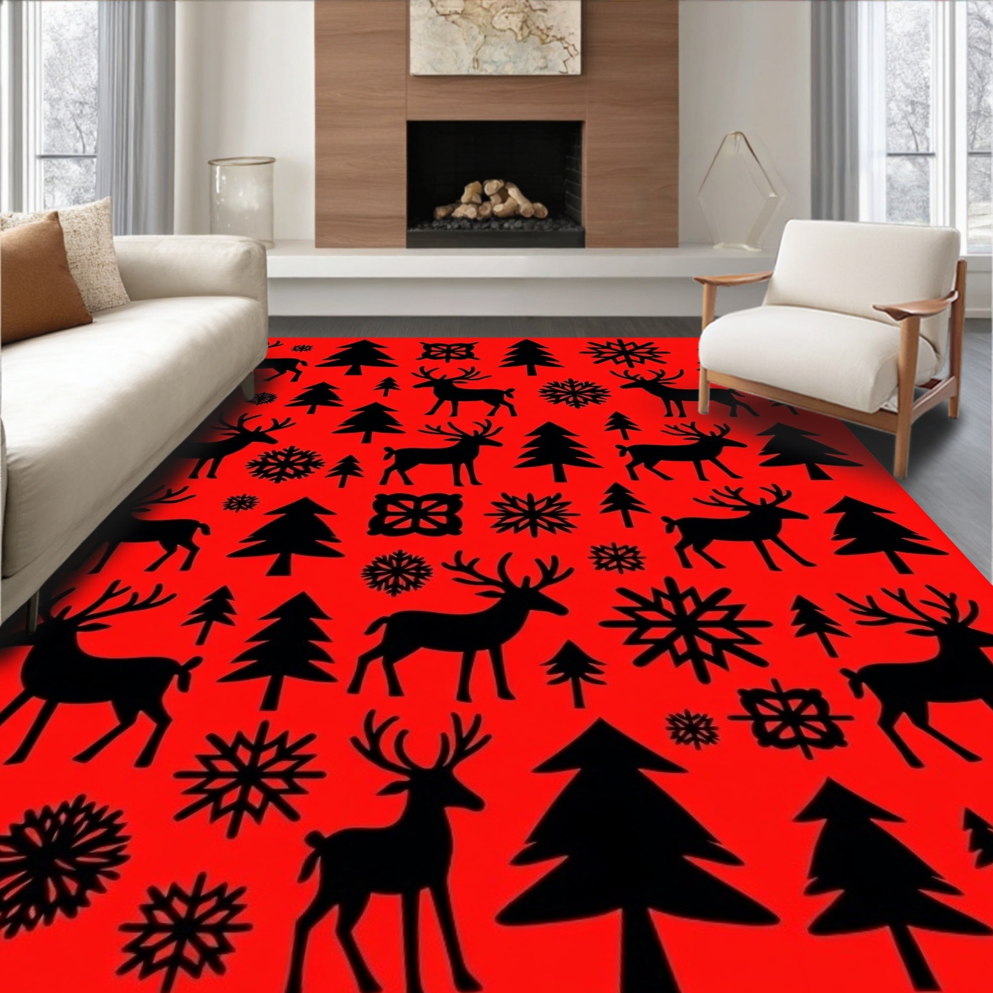 Ultra Soft Area Rug, Non Slip, Stain Resistant, Washable Area Rugs for Living Room, Bedroom, Scandinavian Folk Interlocking Reindeer(Red) Overview: