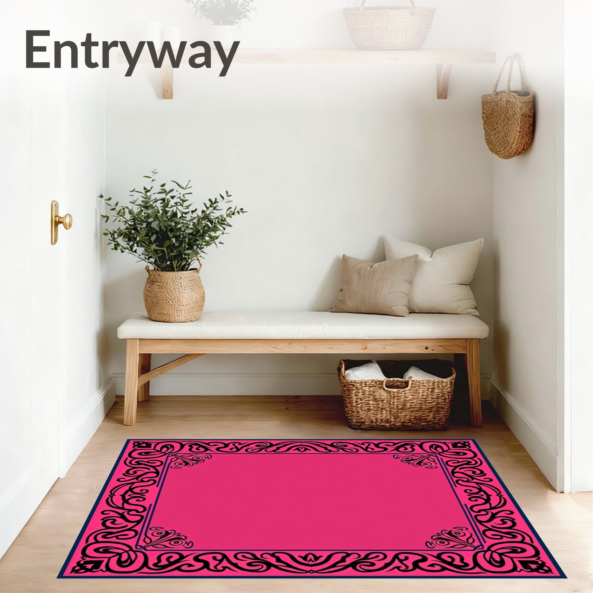 Ultra Soft Area Rug, Non Slip, Stain Resistant, Washable Area Rugs for Living Room, Bedroom, Scroll Arabesque Heirloom Treasure(Pink) Overview:
