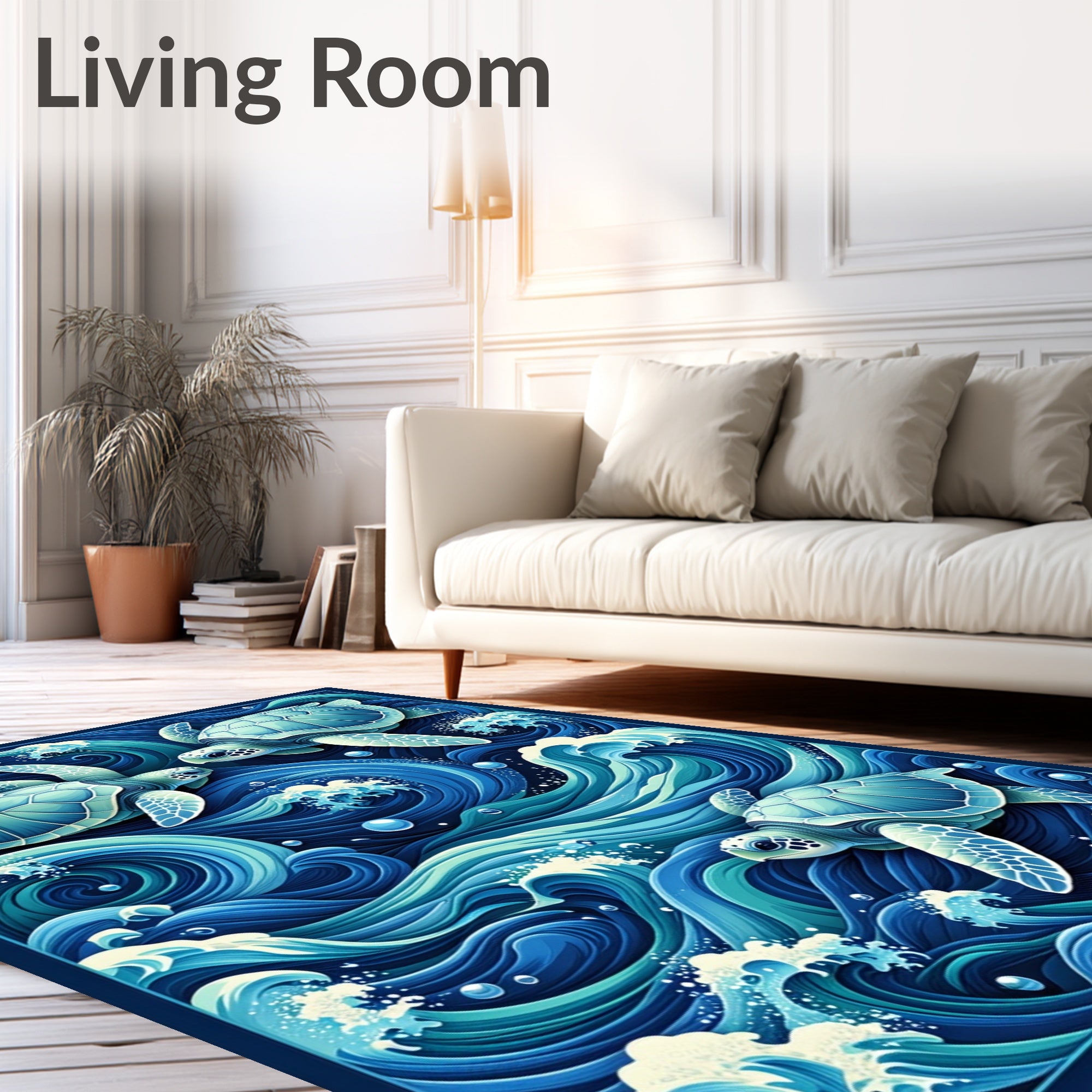 Ultra Soft Area Rug, Non Slip, Stain Resistant, Washable Area Rugs for Living Room, Bedroom, Sea Turtle Swirls Navy Runner Rug(Blue) Overview: