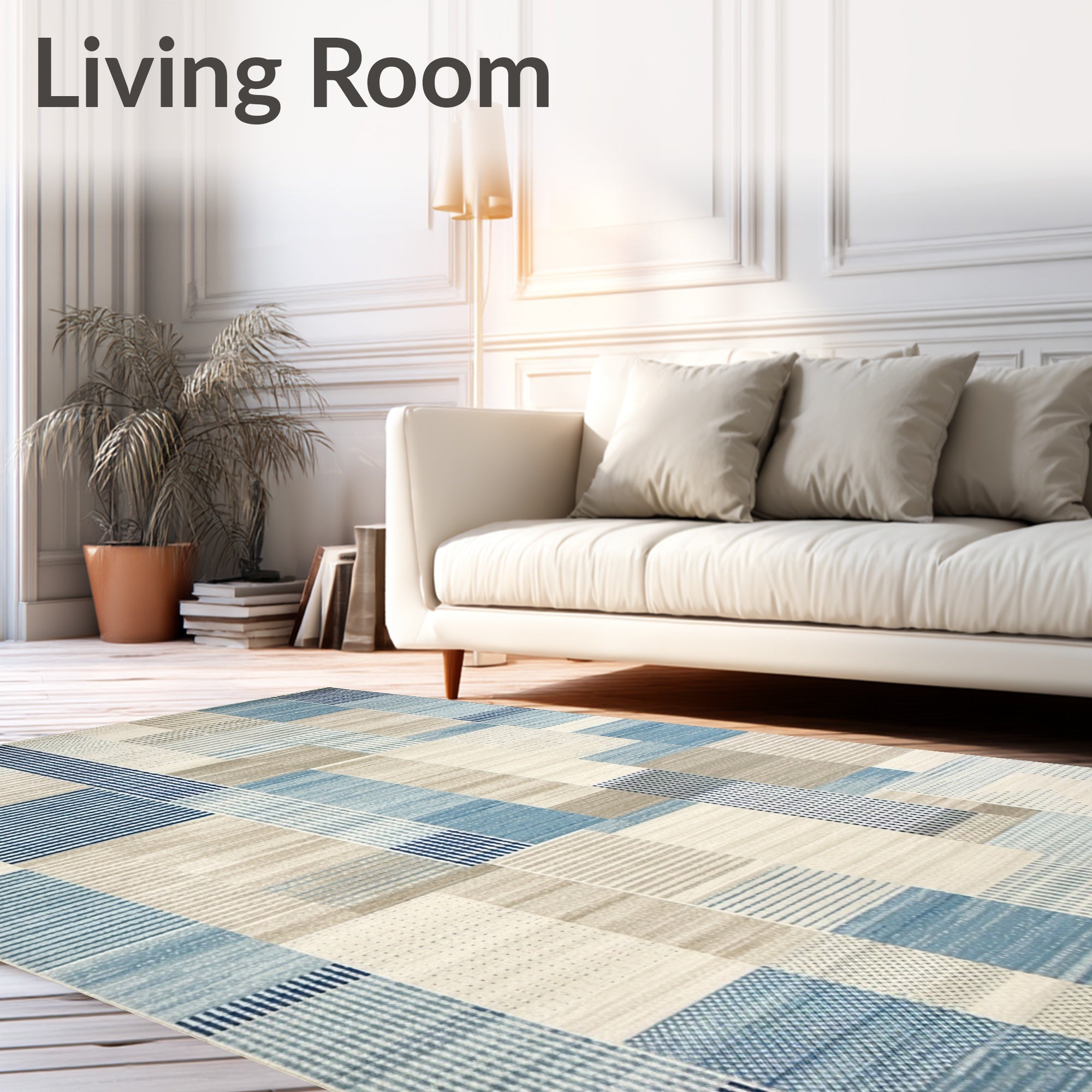 Ultra Soft Area Rug, Non Slip, Stain Resistant, Washable Area Rugs for Living Room, Bedroom, Seaside Serenity Beige Blue Stripe Area Resilient & Modern(Beige) Overview: