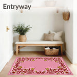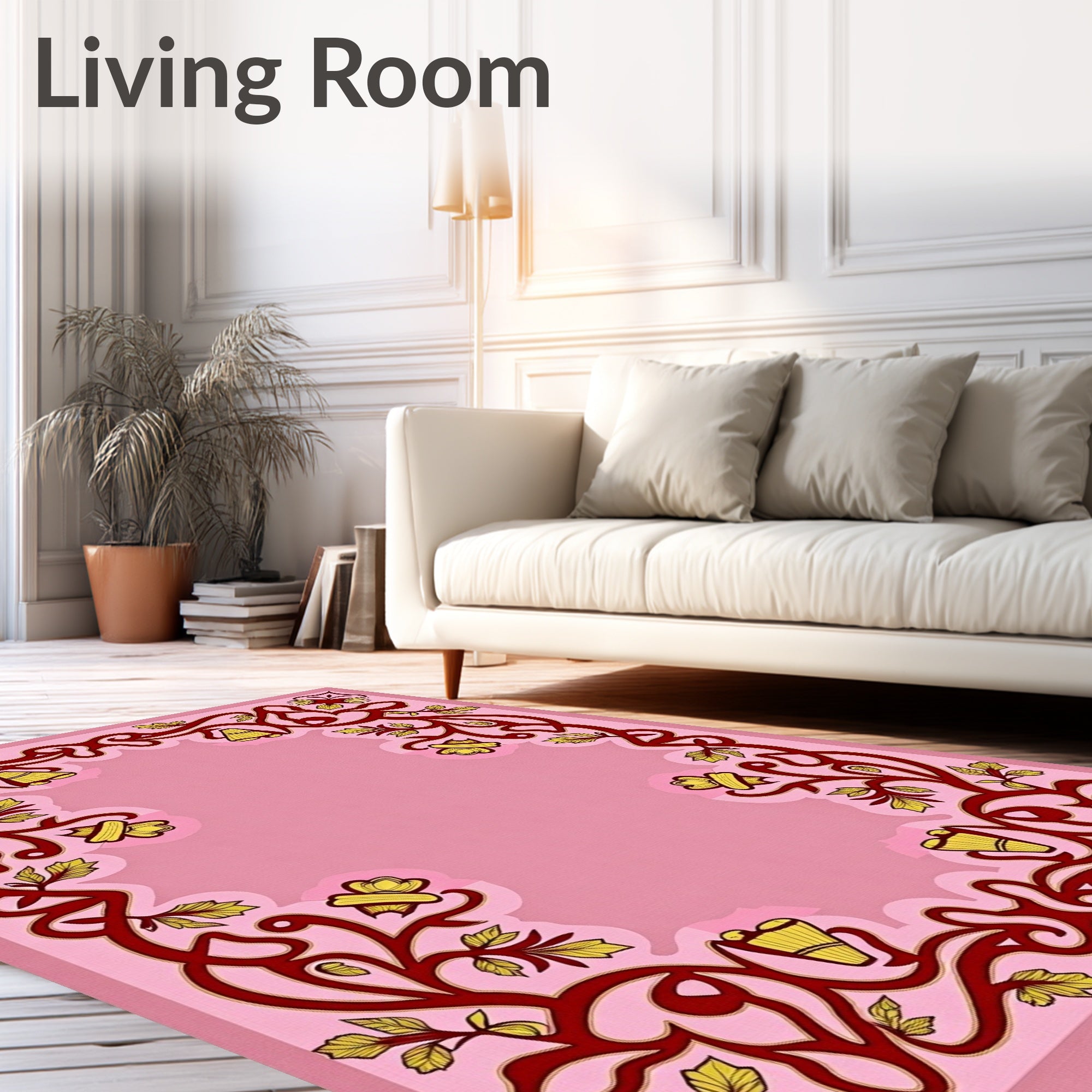 Ultra Soft Area Rug, Non Slip, Stain Resistant, Washable Area Rugs for Living Room, Bedroom, Seasonal Bell Design Semi Circle with Vintage Festive Charm(Pink) Overview: