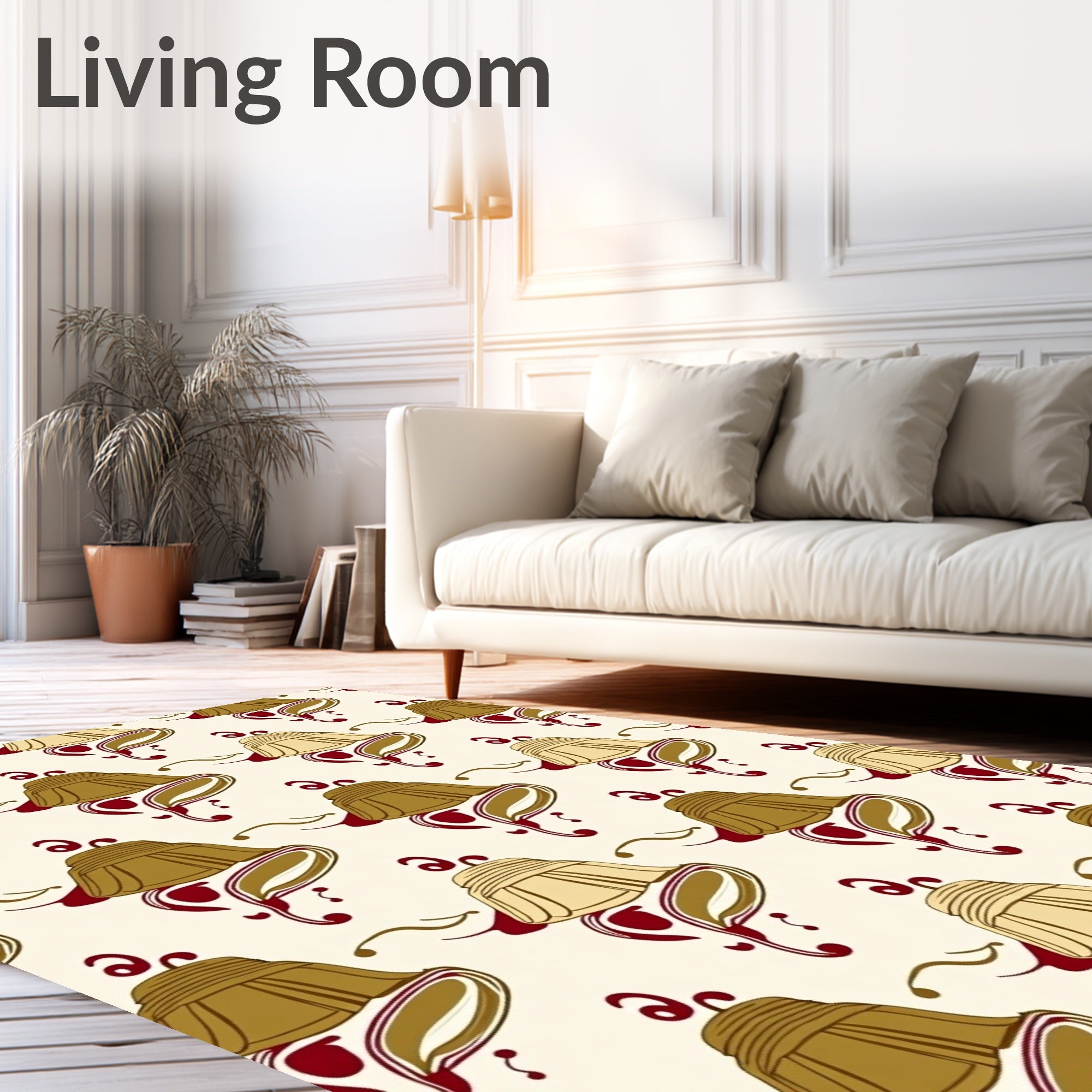 Flatwoven High Traffic Area Rug, Seasonal Carillon Half Arc Musical Theme, Non Slip, Stain Resistant, Washable Area Rugs for Living Room, Bedroom (Beige) Overview: