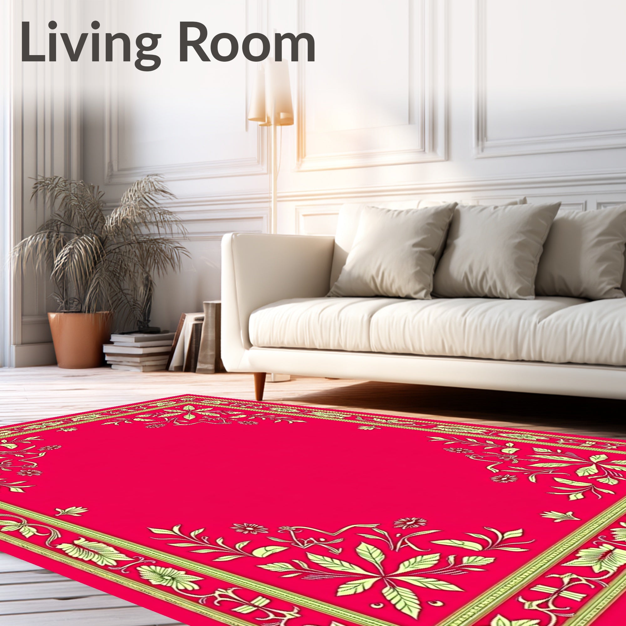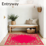 Ultra Soft Area Rug, Non Slip, Stain Resistant, Washable Area Rugs for Living Room, Bedroom, Seasonal Entry with Ornate Yuletide Botanical Designs(Red) Overview: