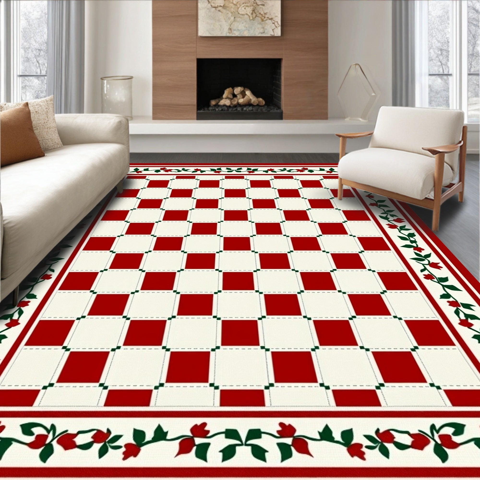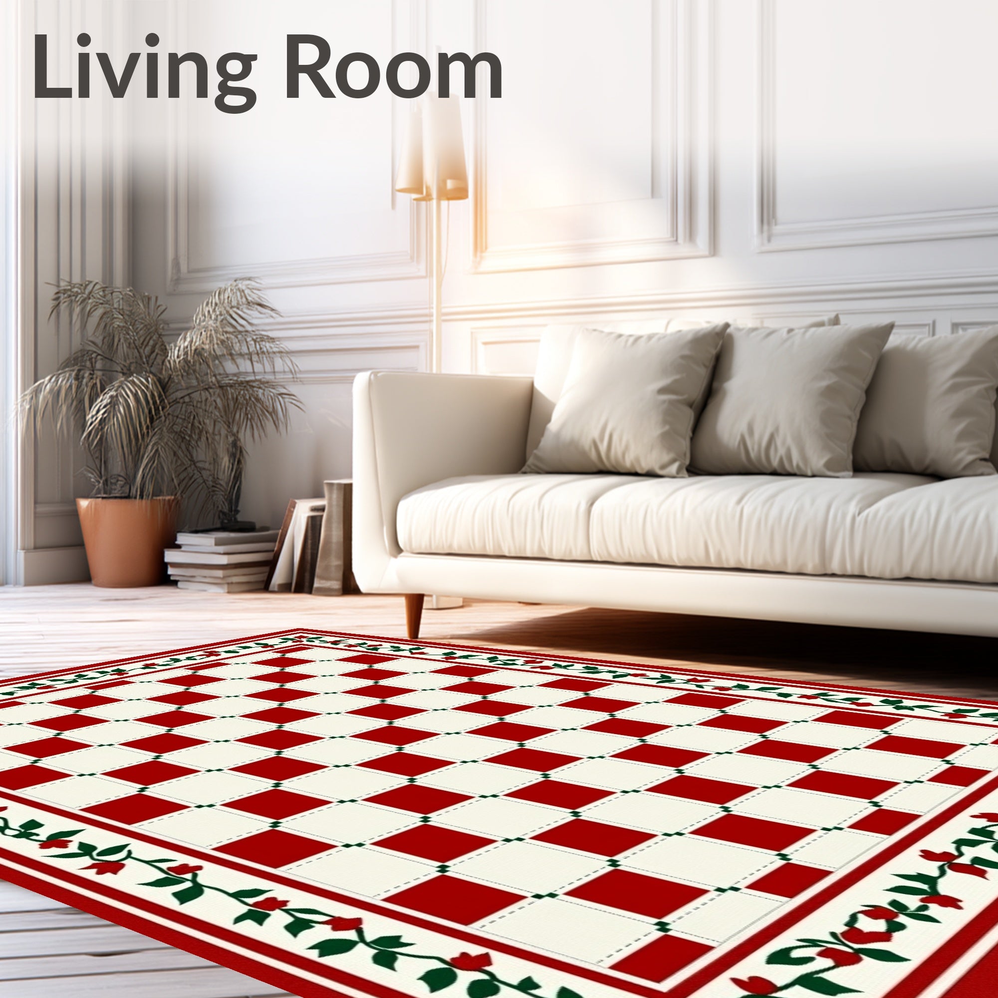 Ultra Soft Area Rug, Non Slip, Stain Resistant, Washable Area Rugs for Living Room, Bedroom, Seasonal Gingham Xmas Decorative Machine(Red) Overview: