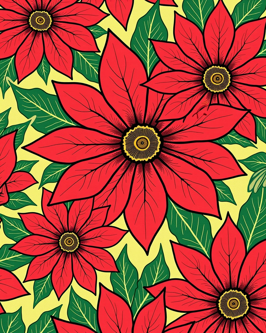 Seasonal Poinsettia Bloom Floor Covering with Festive Petal Design(Red)