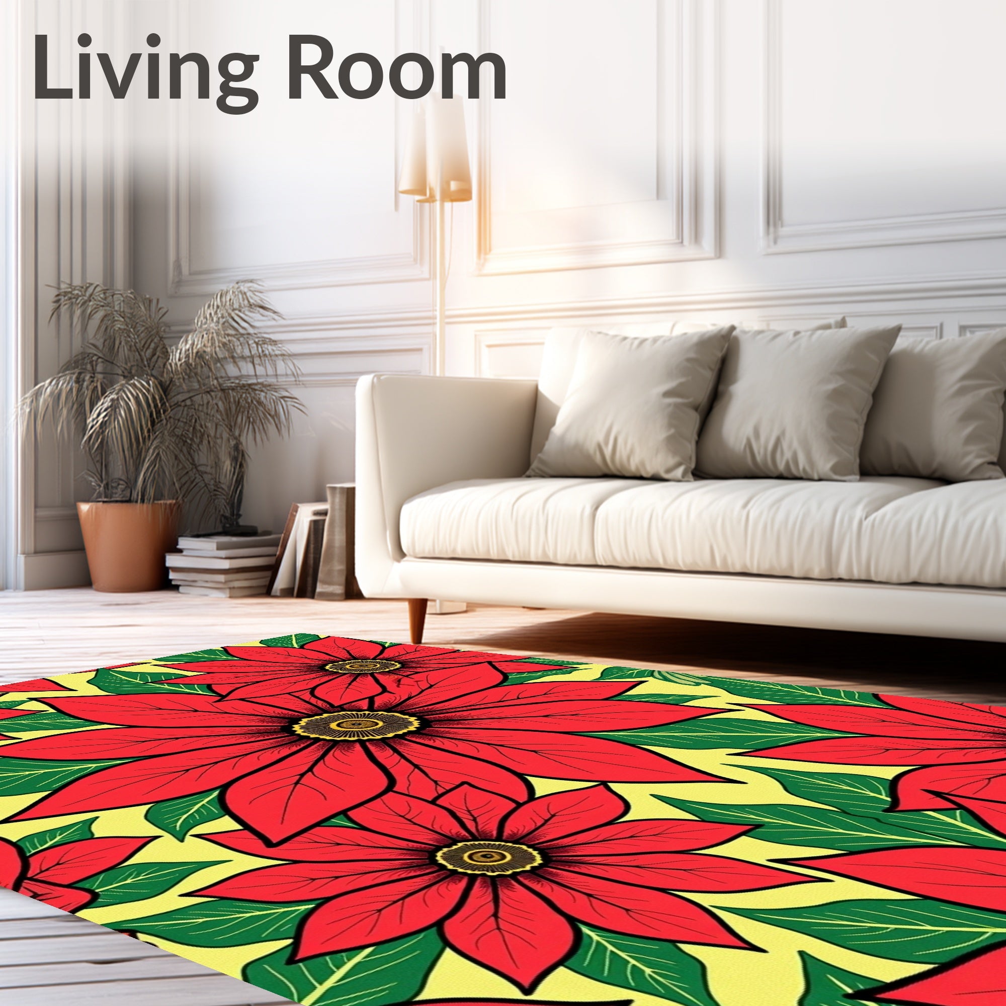 Ultra Soft Area Rug, Non Slip, Stain Resistant, Washable Area Rugs for Living Room, Bedroom, Seasonal Poinsettia Bloom Floor Covering with Festive Petal Design(Red) Overview: