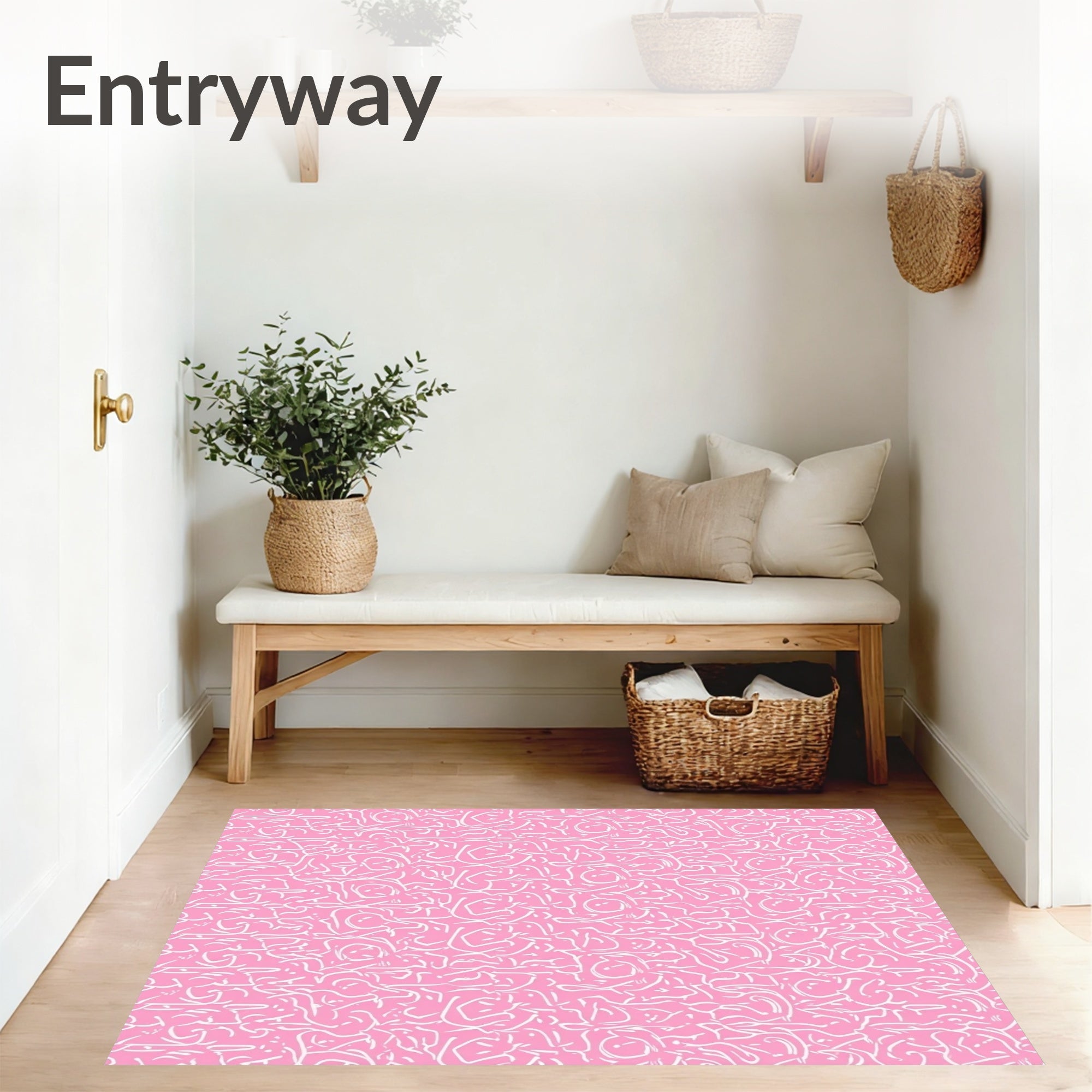 Flatwoven High Traffic Area Rug, Serene Airwave Petal Inspired Motif Impressionist Arrangement, Non Slip, Stain Resistant, Washable Area Rugs for Living Room, Bedroom (Pink) Overview: