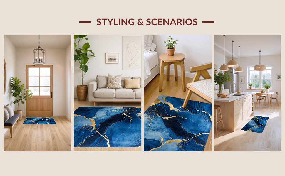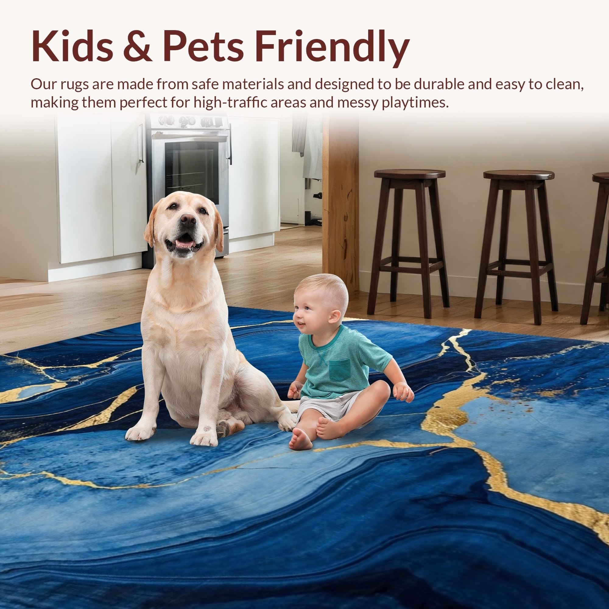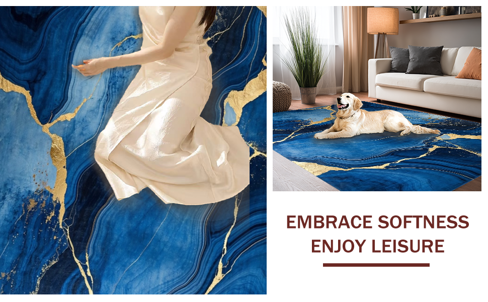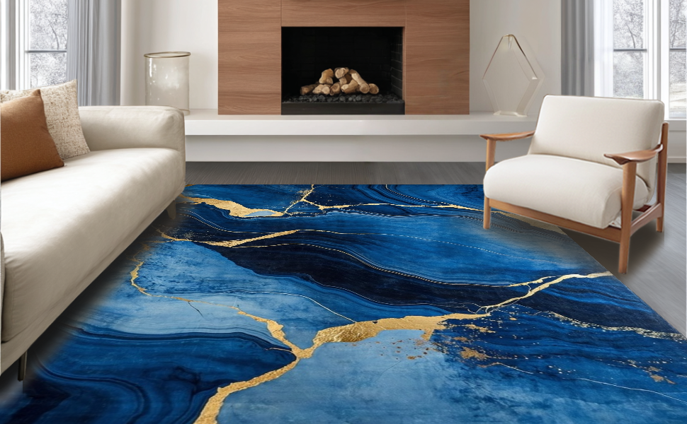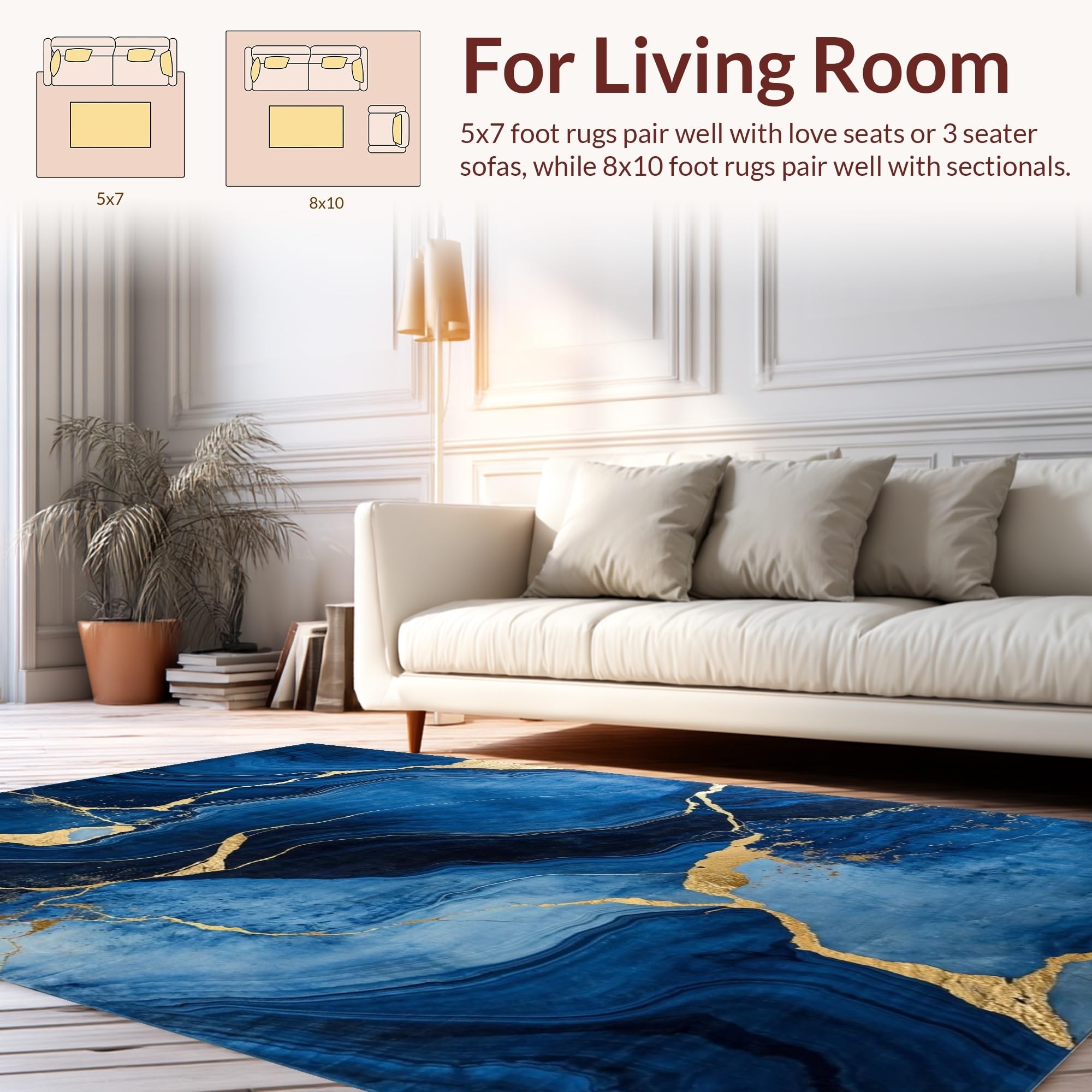 Ultra Soft Area Rug, Non Slip, Stain Resistant, Washable Area Rugs for Living Room, Bedroom, Serene Blue Tones with Texture(Blue) Overview: