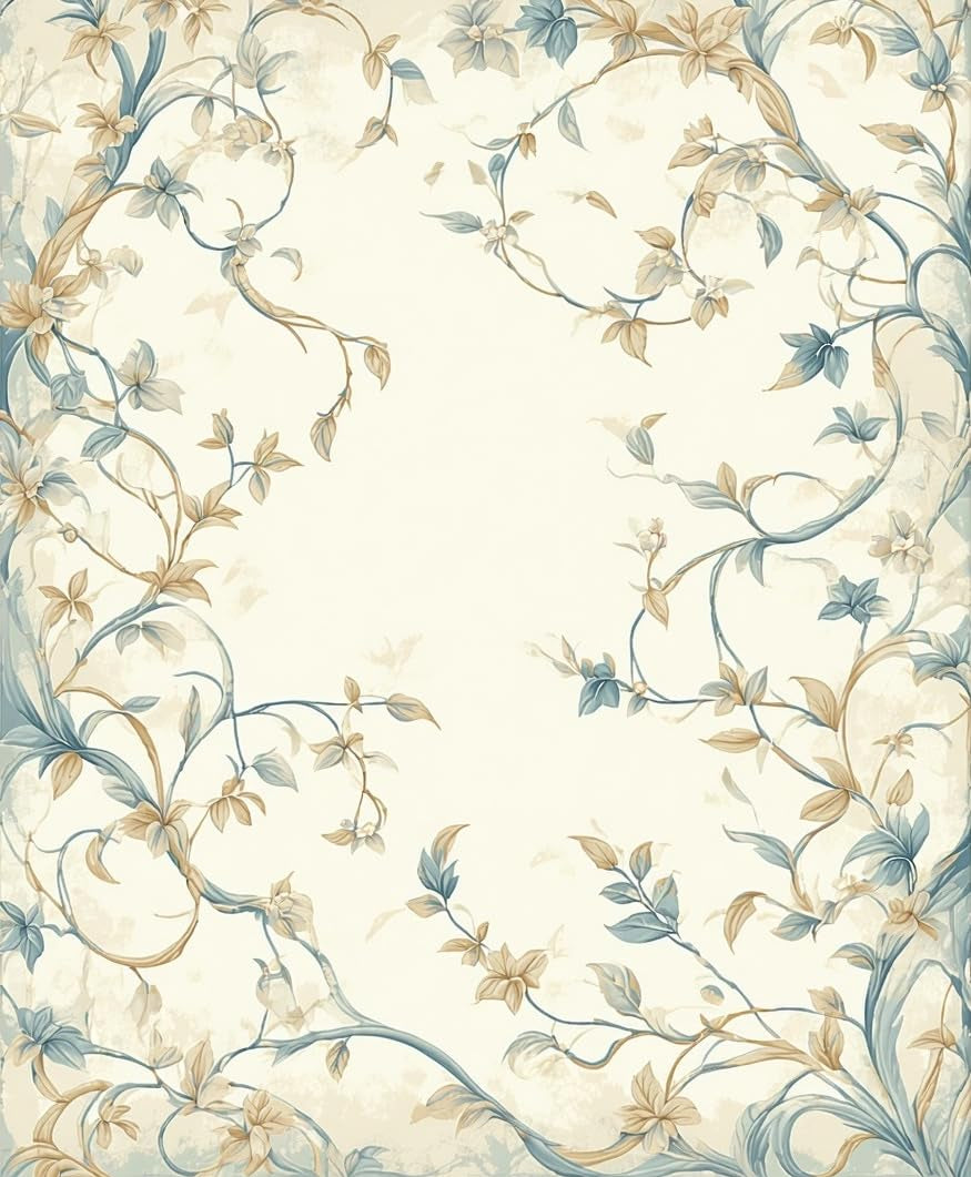 Serene Botanical Wave Area Featuring Light Blue and Beige Floral Swirls(Beige)