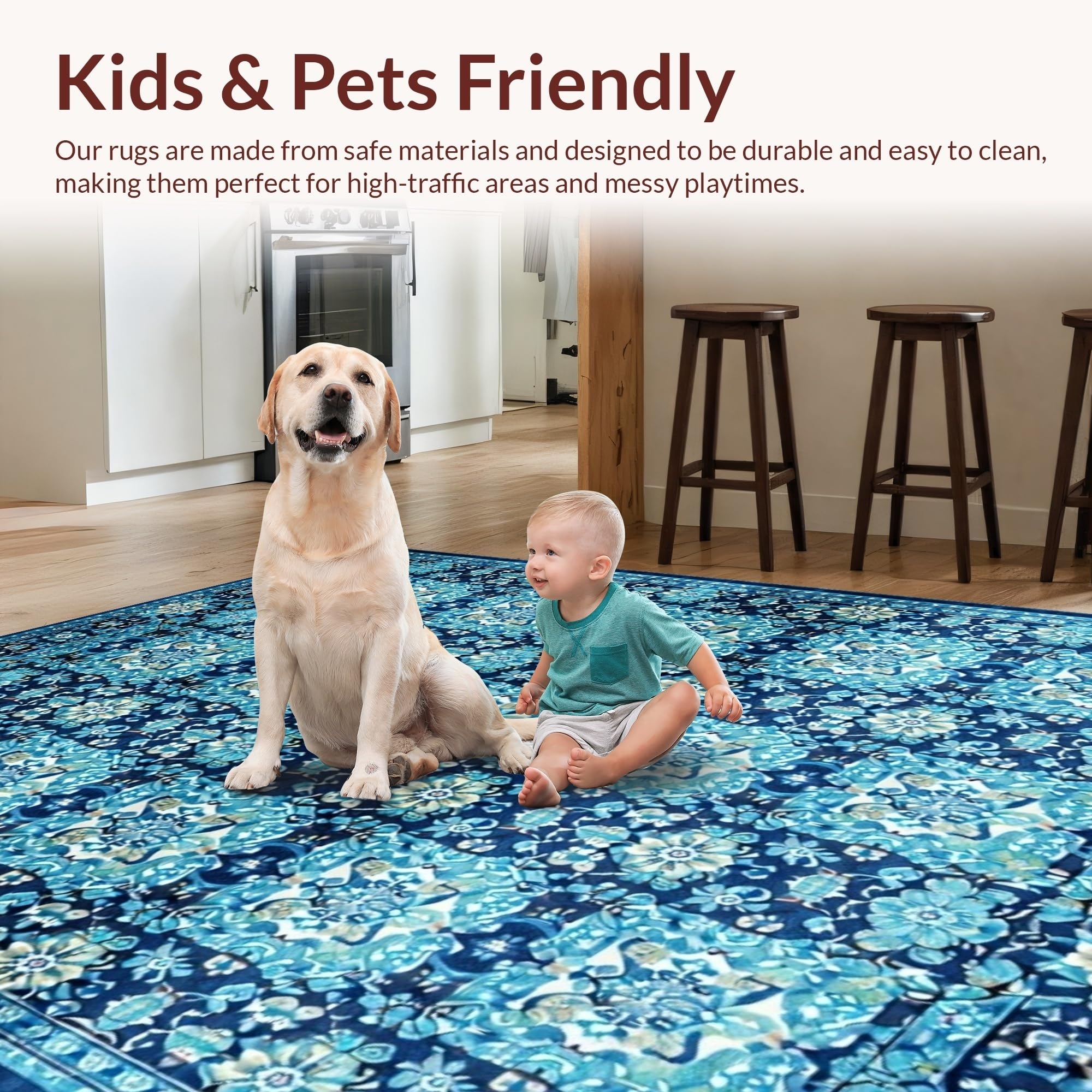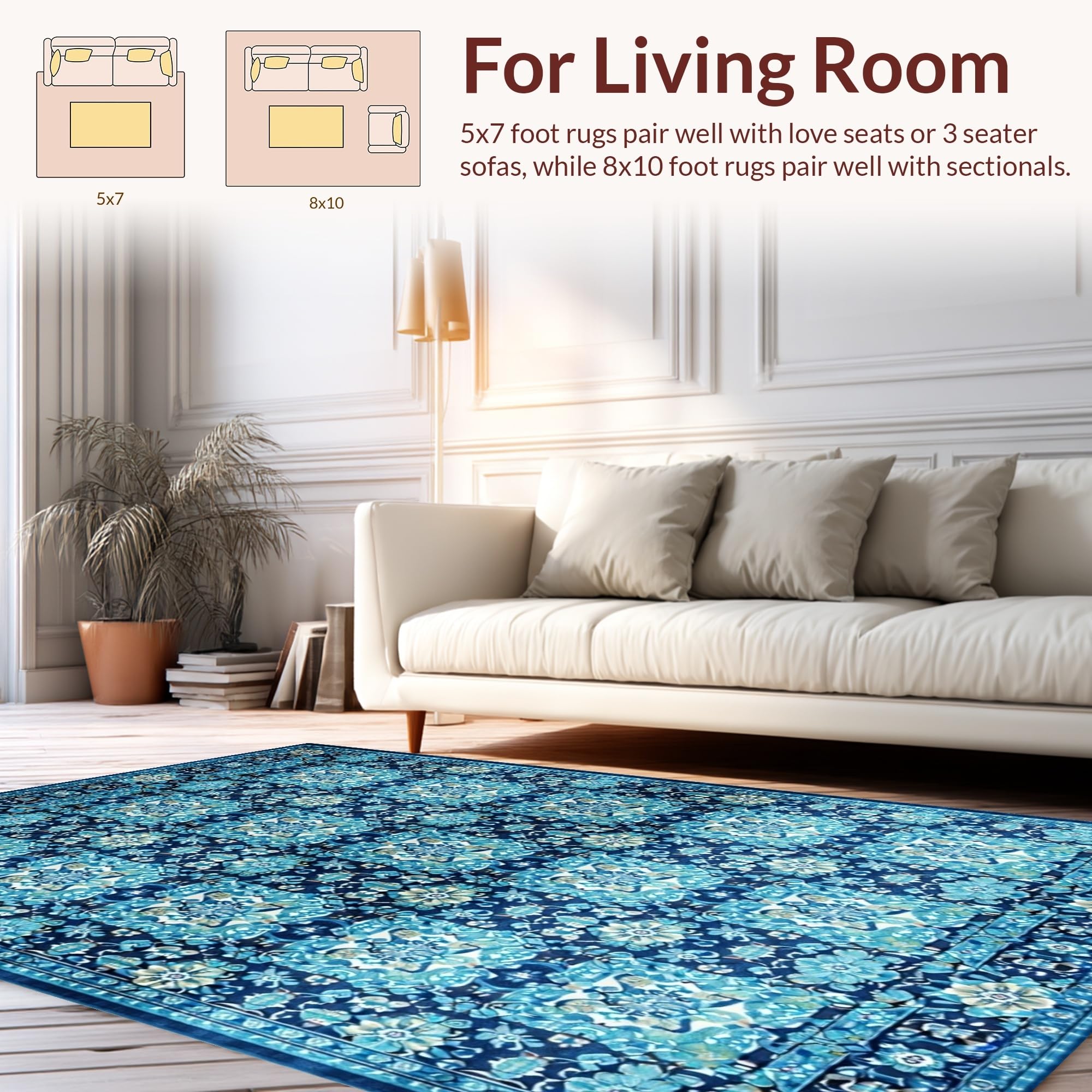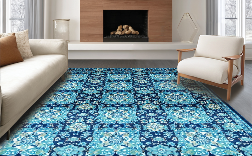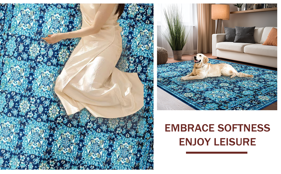 Ultra Soft Area Rug, Non Slip, Stain Resistant, Washable Area Rugs for Living Room, Bedroom, Serene Minimalist Color Palette(Blue) Overview: